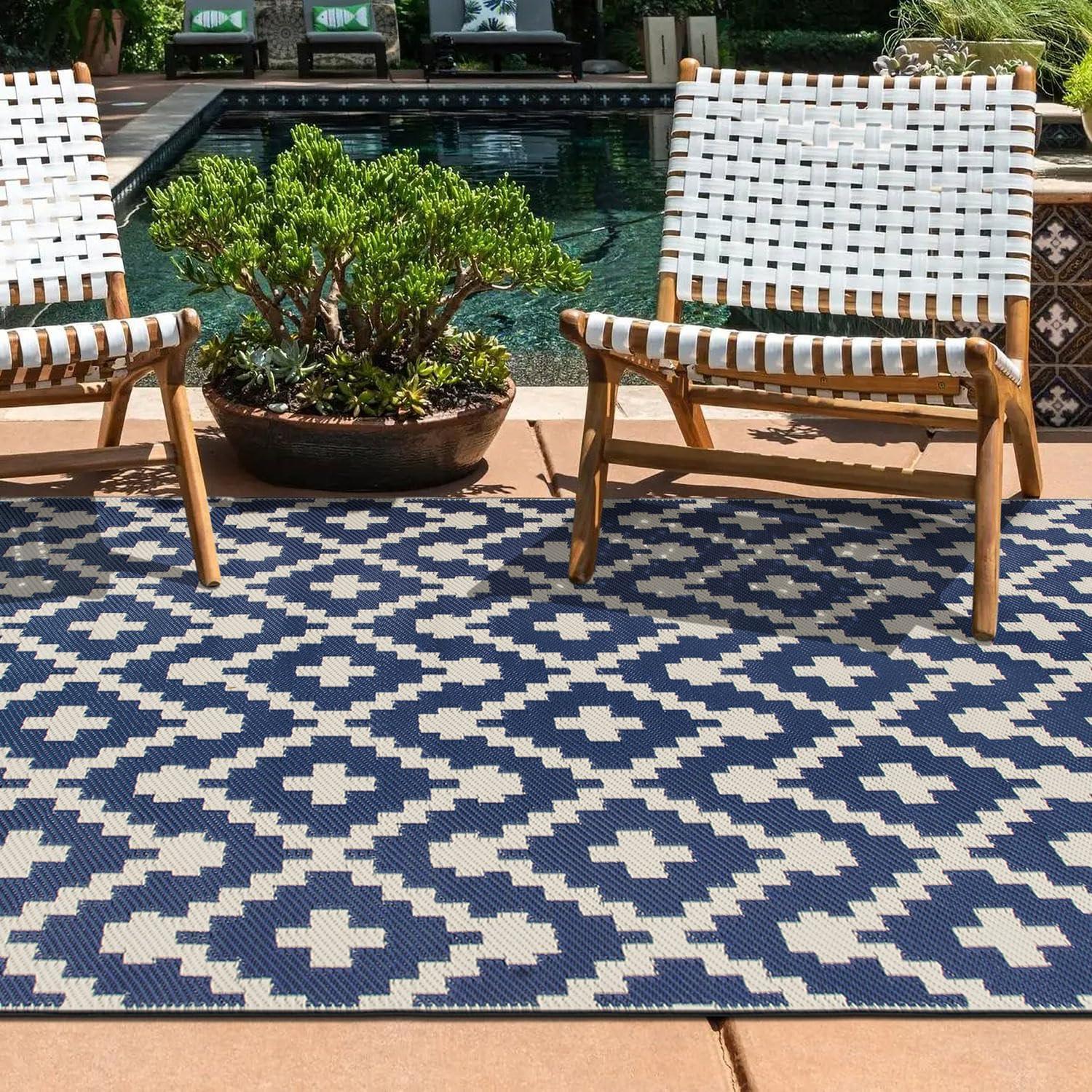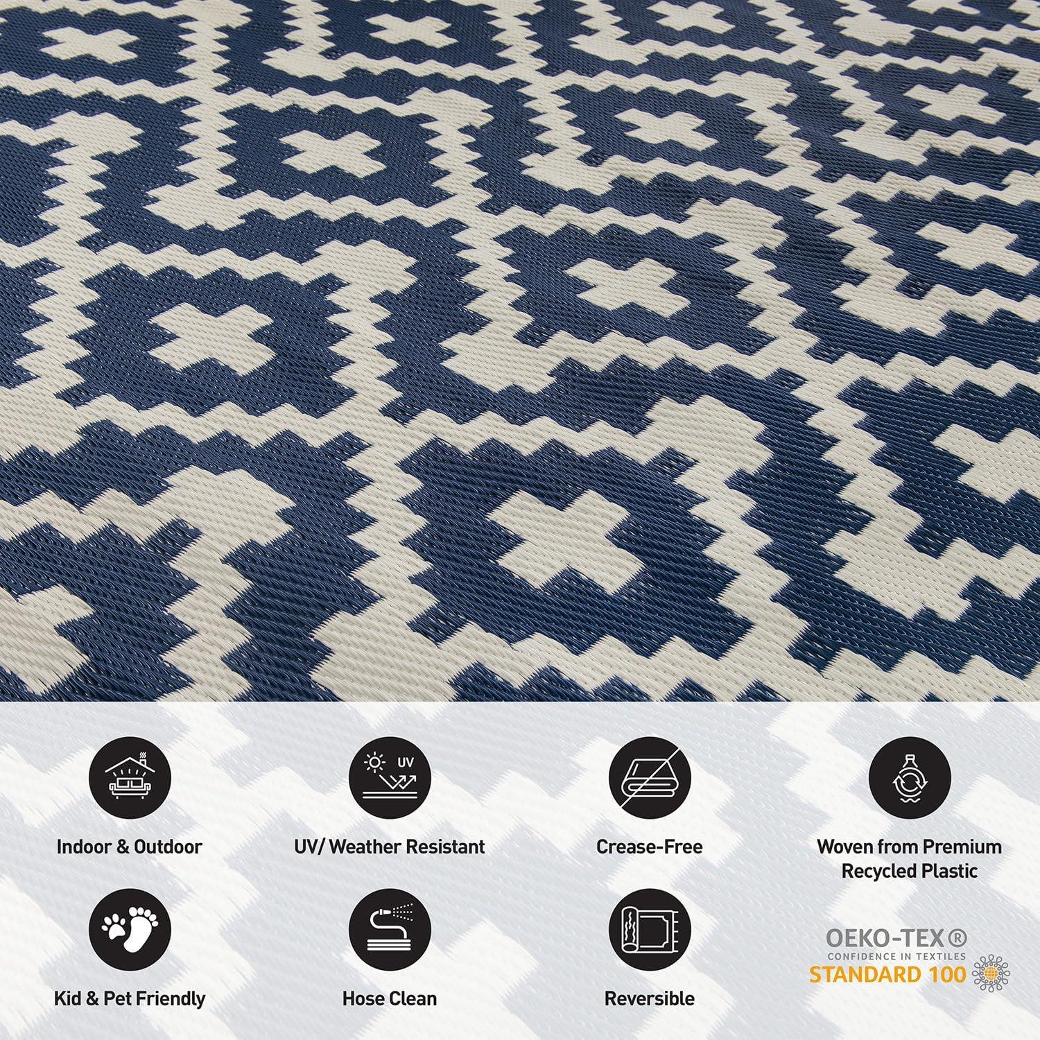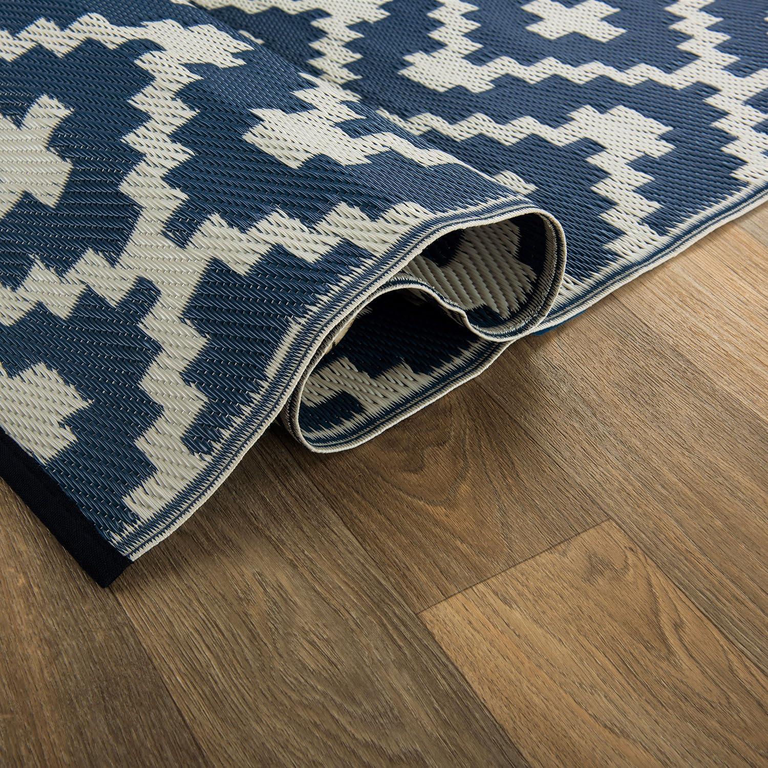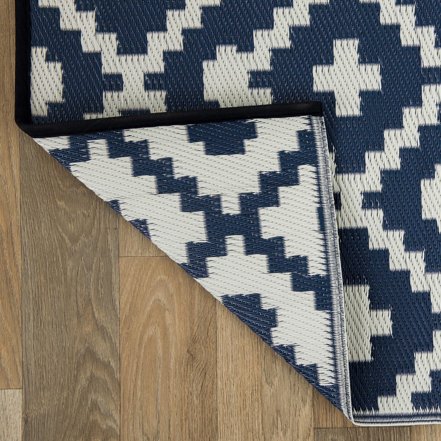 Rugshop Maui Contemporary Geometric Reversible Crease-Free Waterproof Premium Recycled Plastic Outdoor Rugs for Patio,Backyard,RV,Deck,Picnic,Trailer,Beach,Camping Navy 5′ x 7′(Navy)