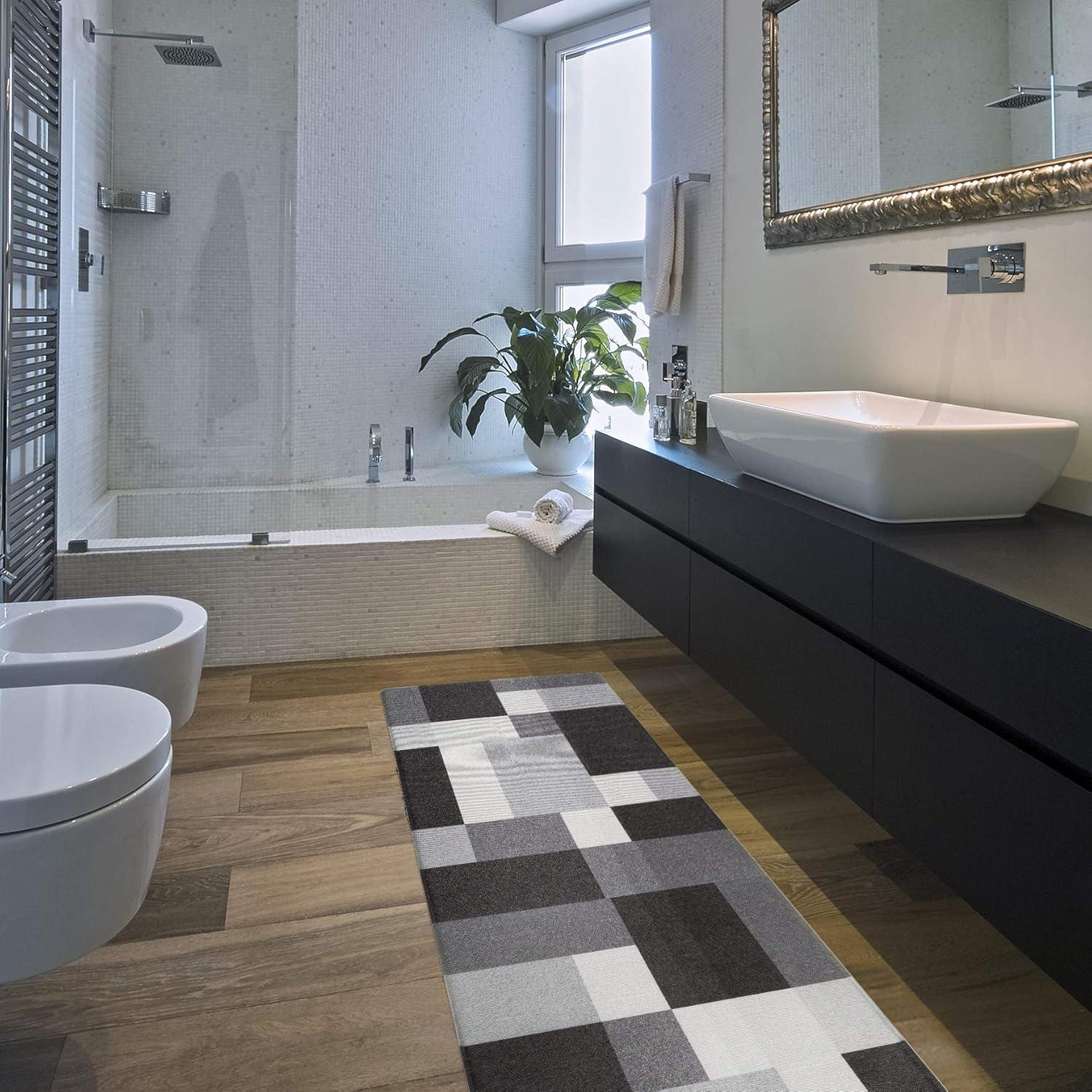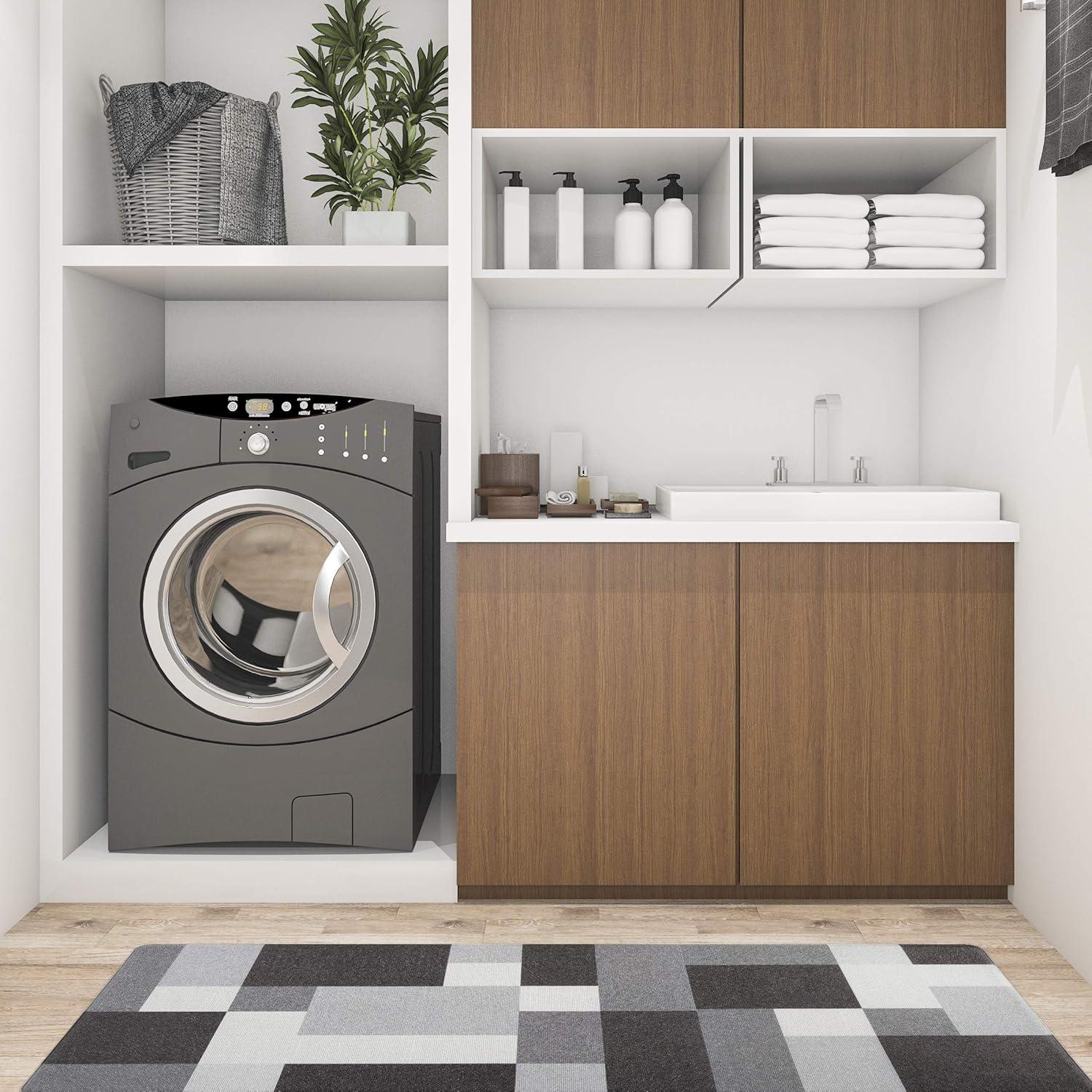 Rugshop Modern Boxes Design Anti Fatigue Standing Mat 18″ x 47″ Gray(Grey)