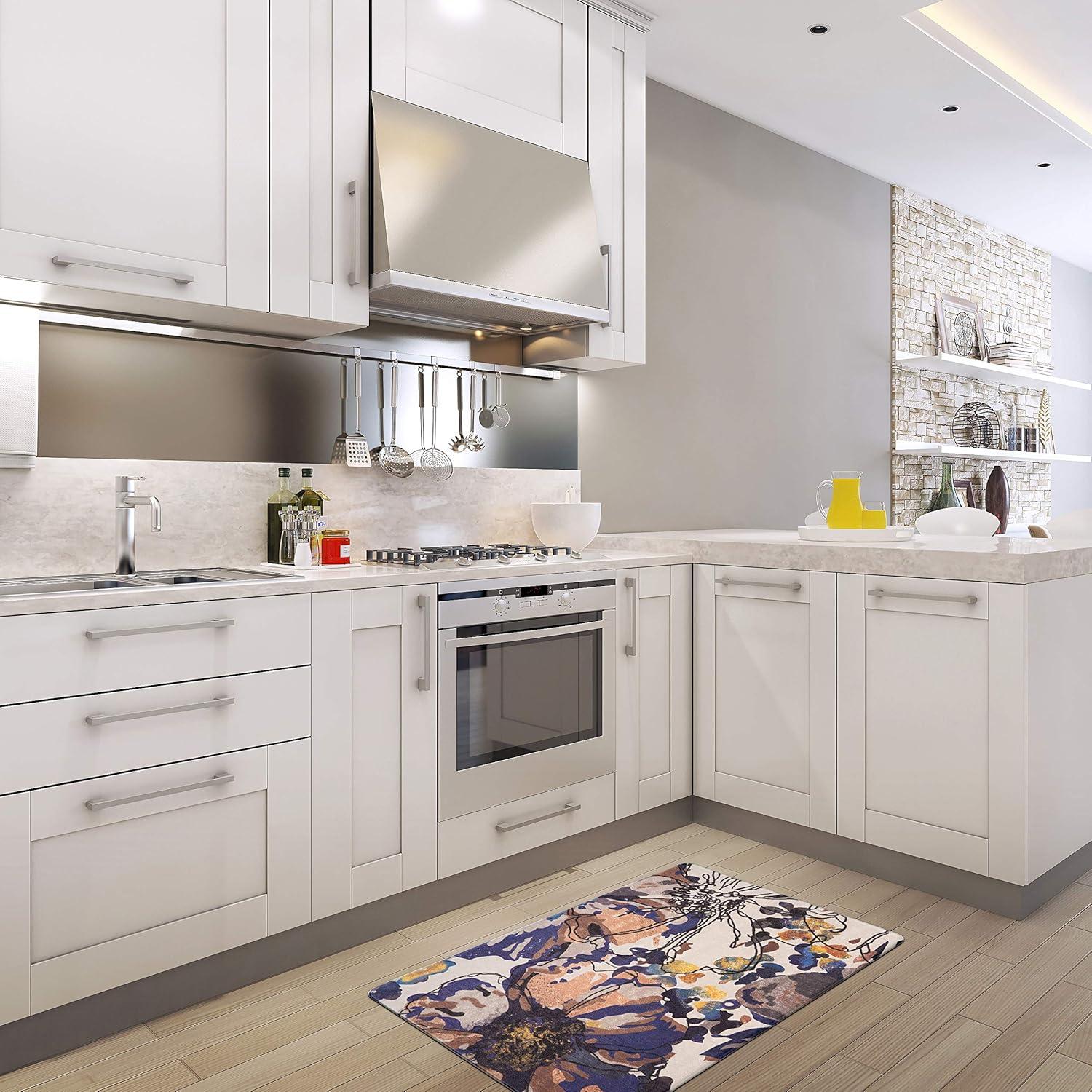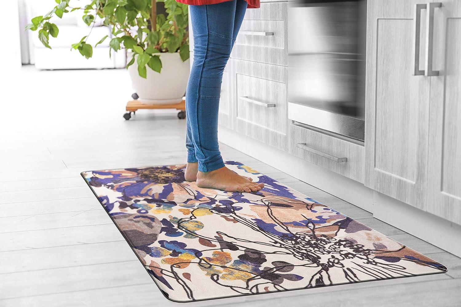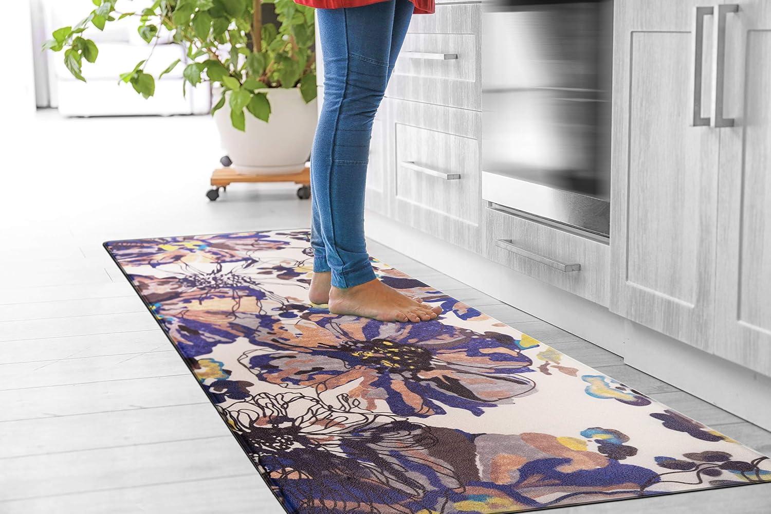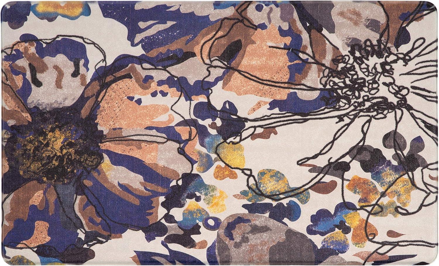 Rugshop Modern Bright Flowers Anti Fatigue Standing Mat 18″ x 47″ Multi(Cream)