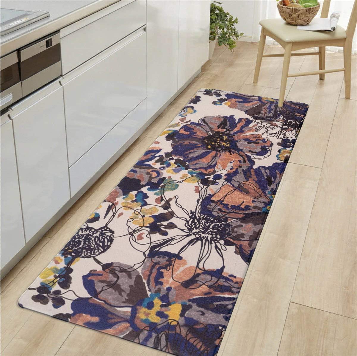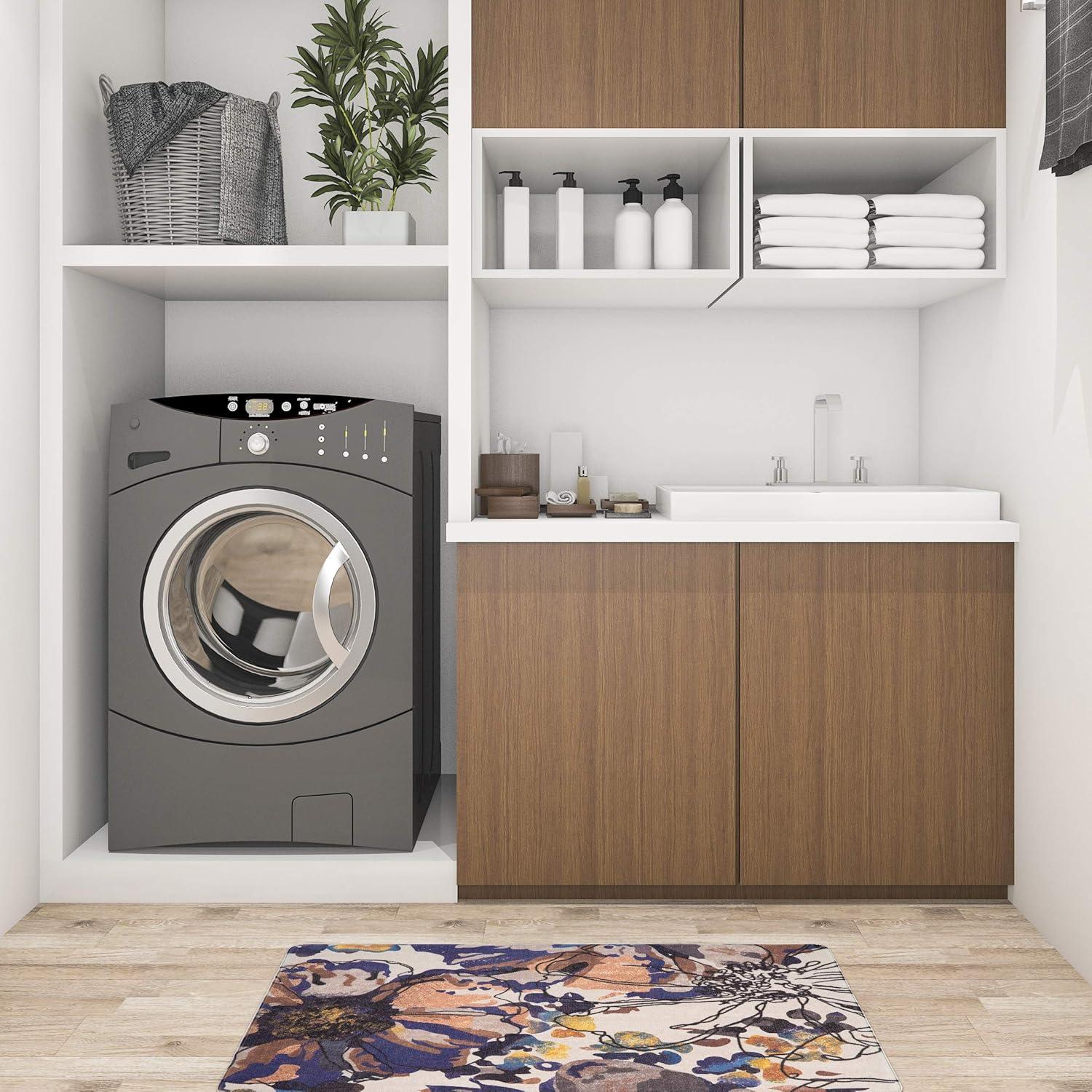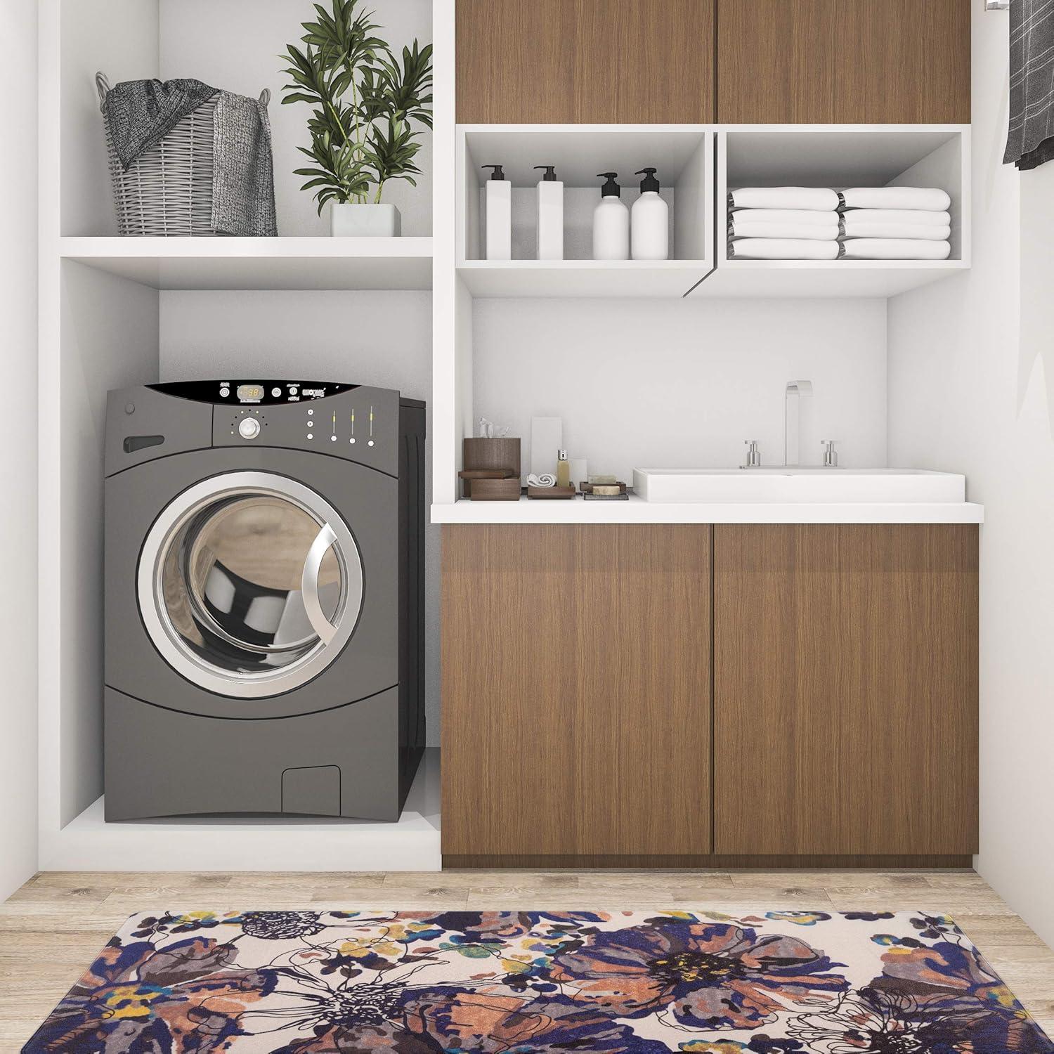 Rugshop Modern Bright Flowers Anti Fatigue Standing Mat 18″ x 47″ Multi(Cream)