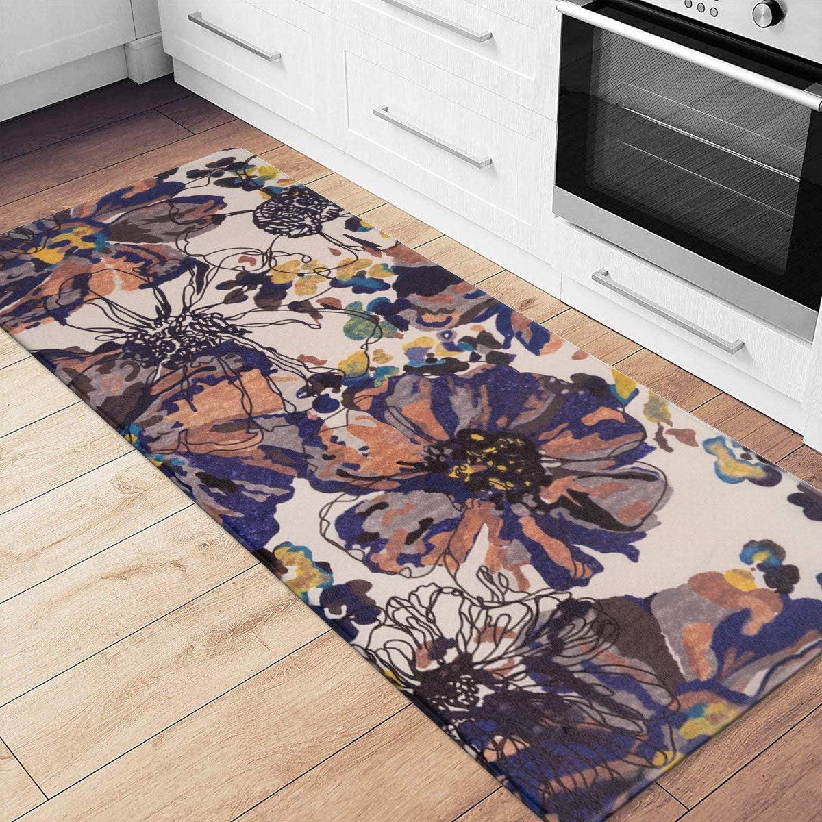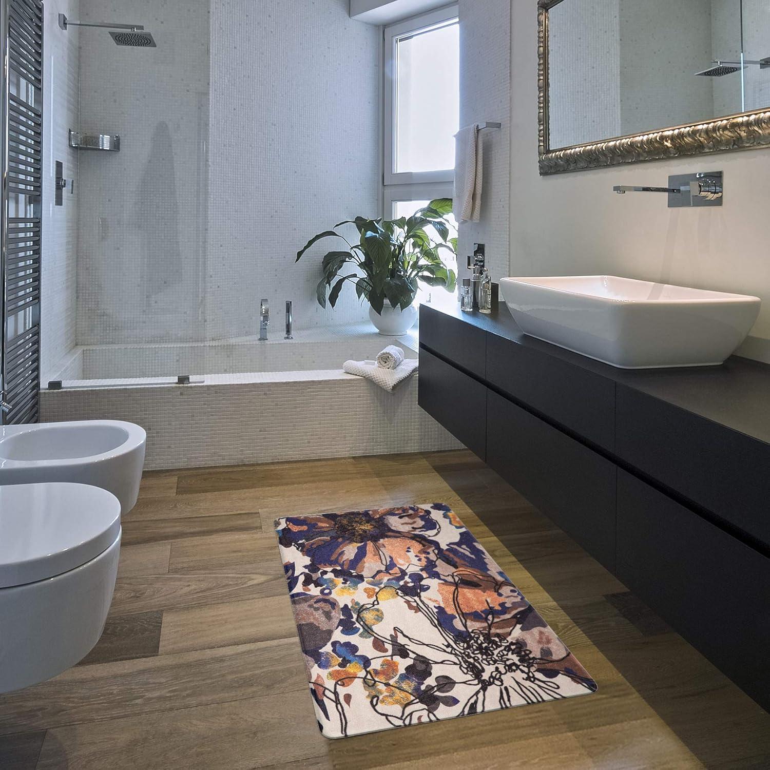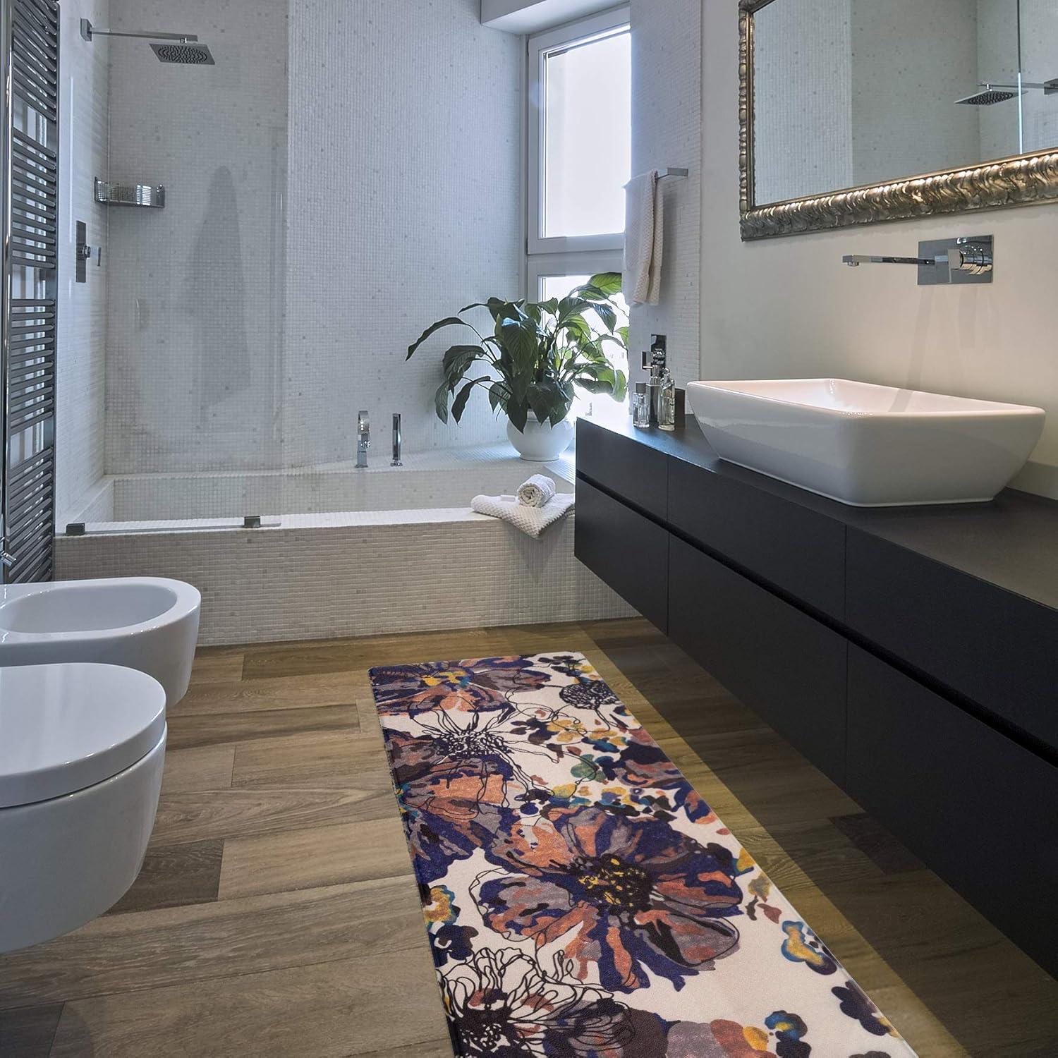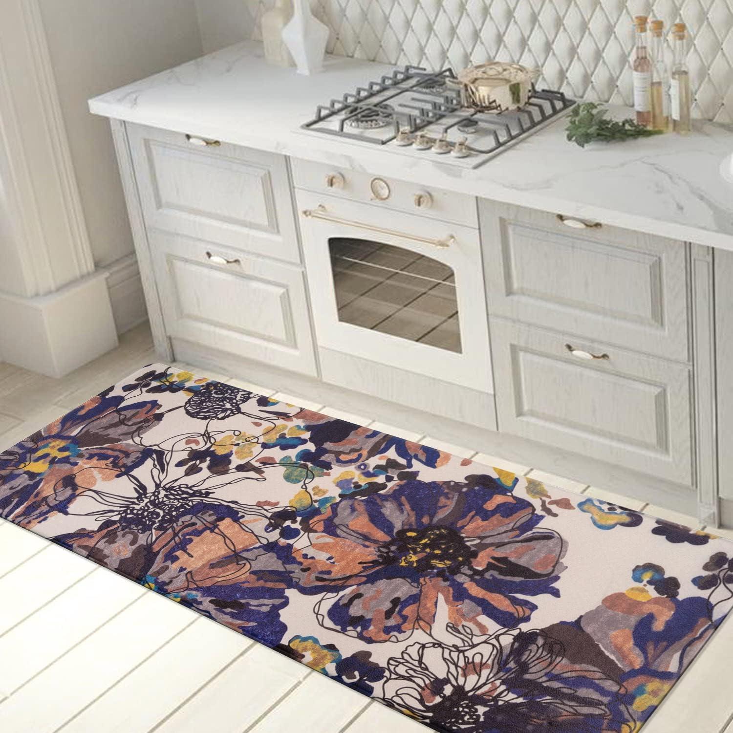 Rugshop Modern Bright Flowers Anti Fatigue Standing Mat 18″ x 47″ Multi(Cream)