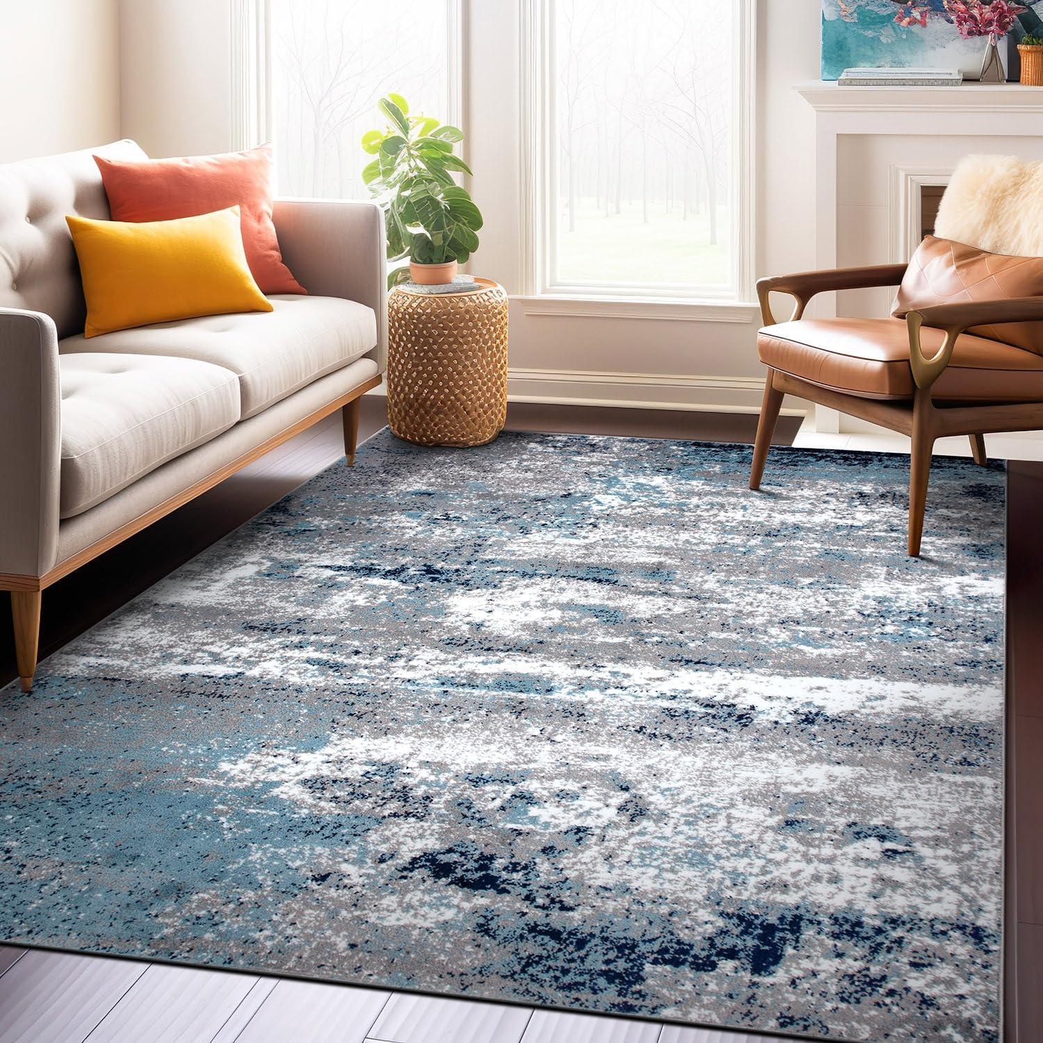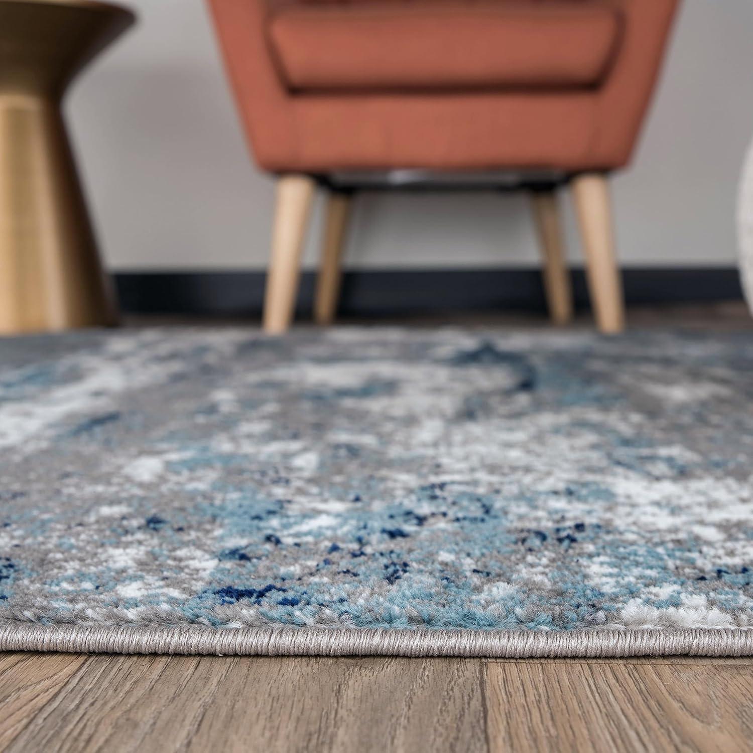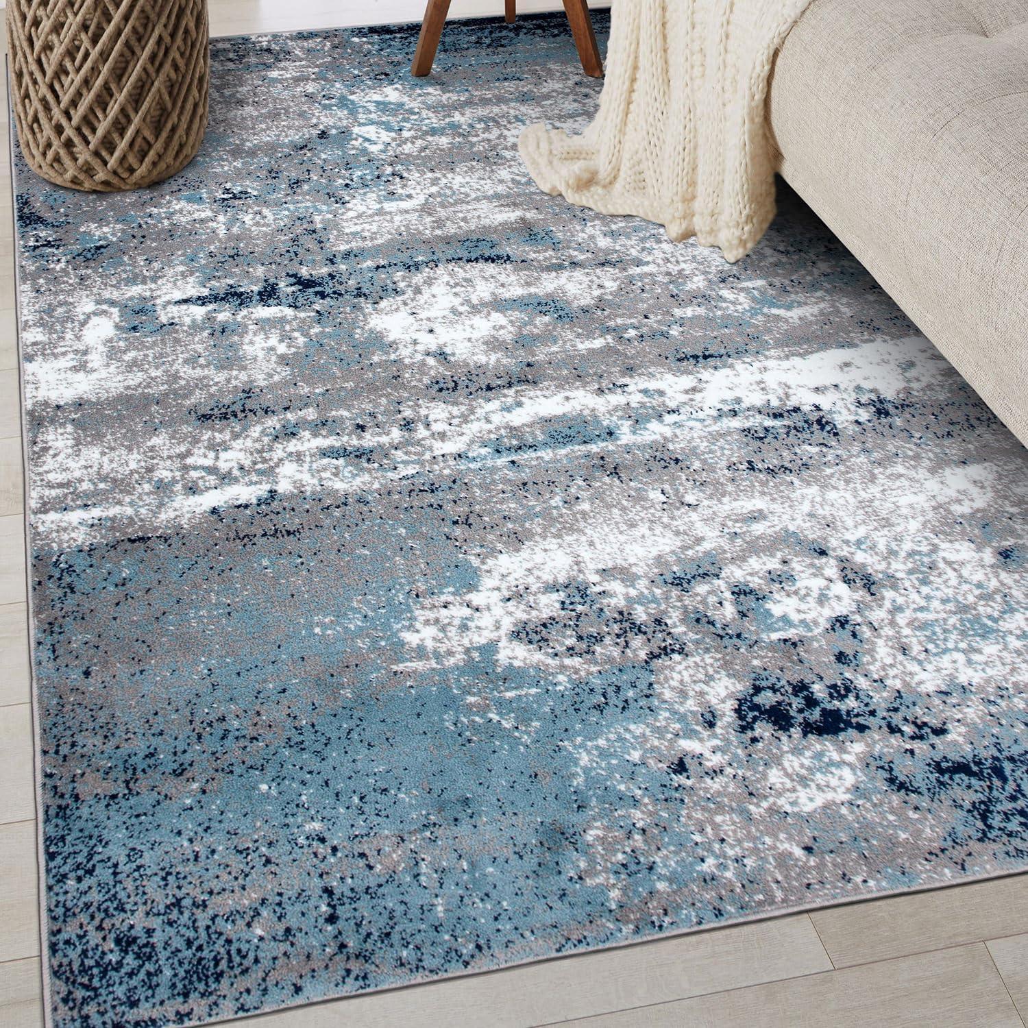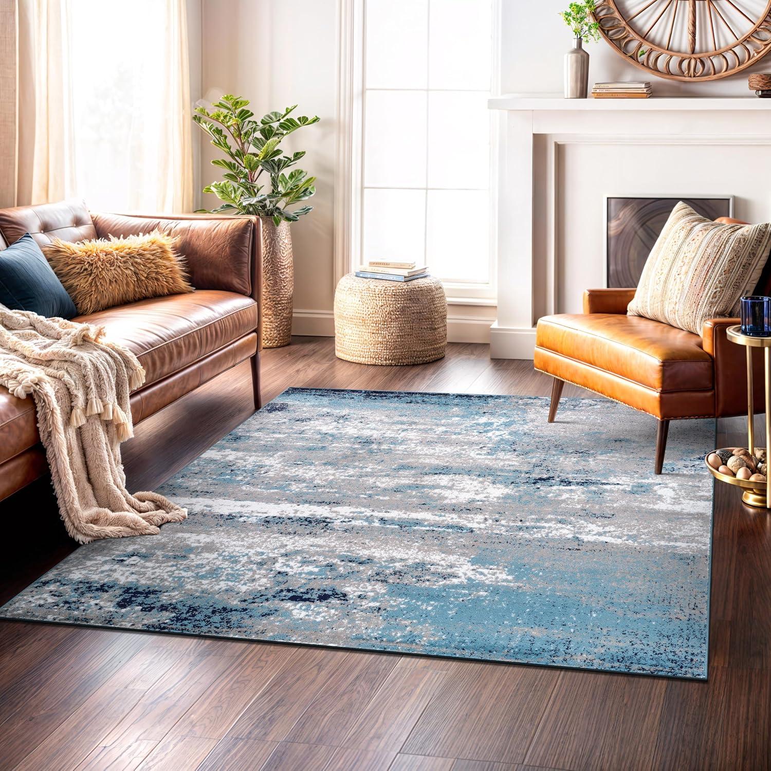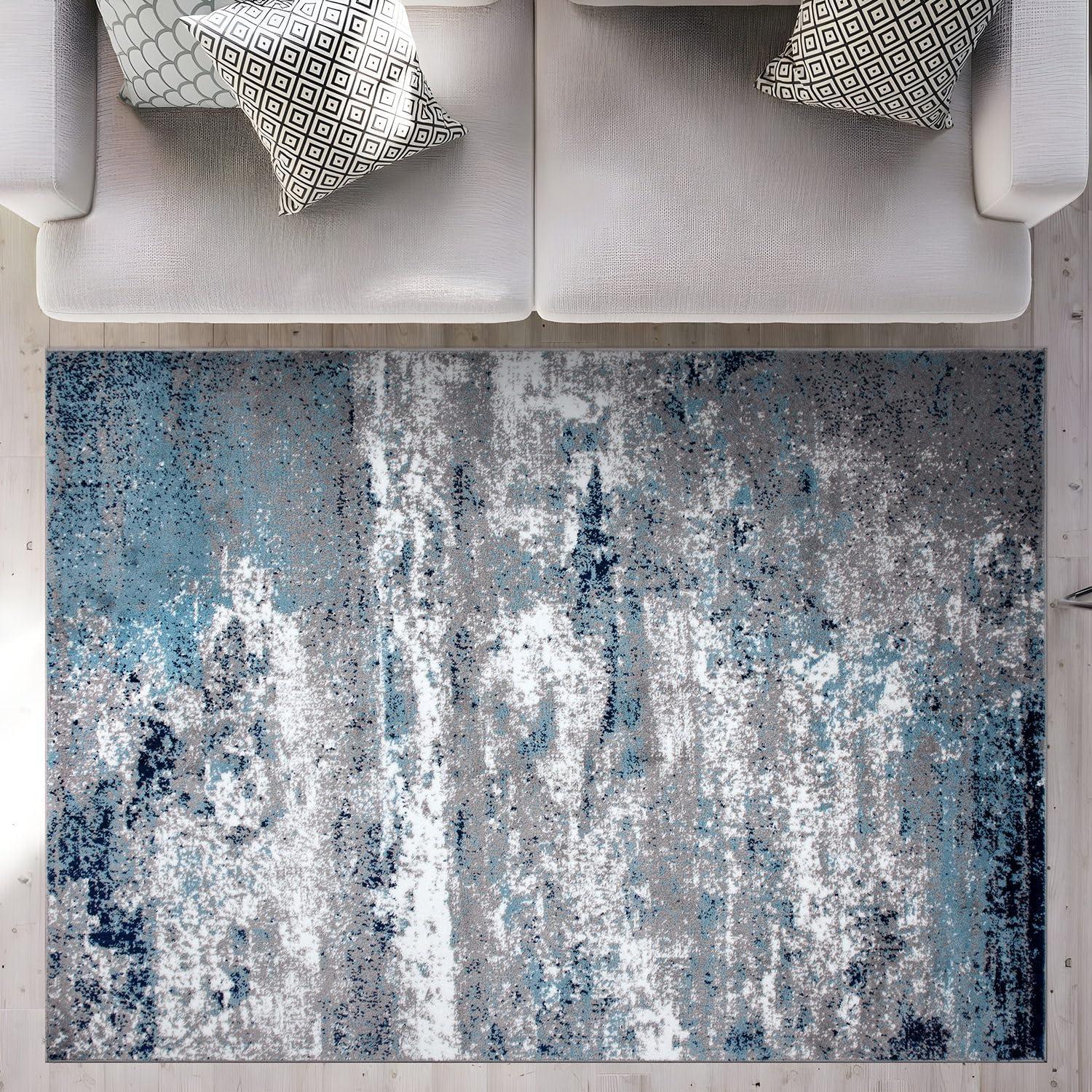Premium Quality – Crafted from 100% polypropylene with a sturdy jute backing for exceptional durability. This 5' X 7' Blue Distressed Abstract Area Rug rug is built to last, maintaining its texture and color even in busy households.