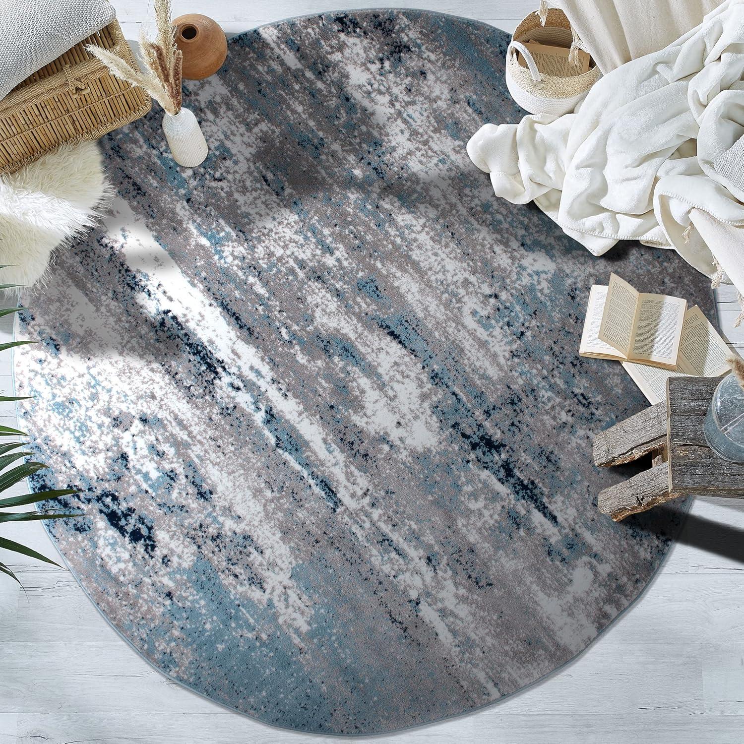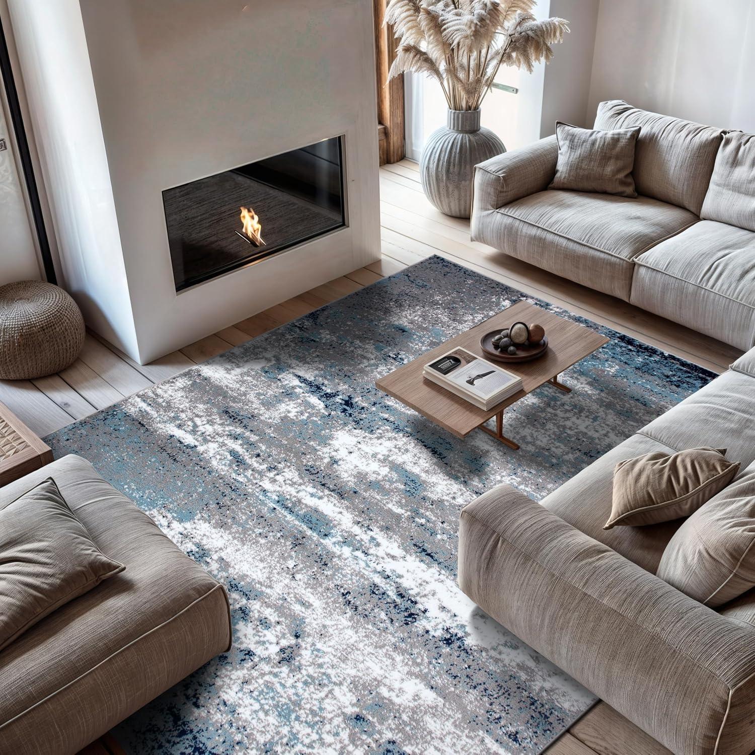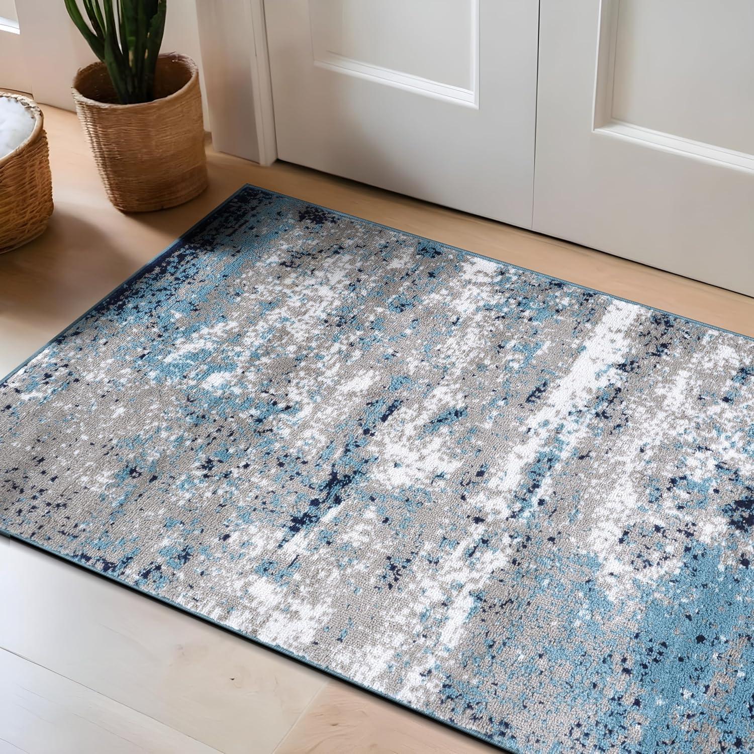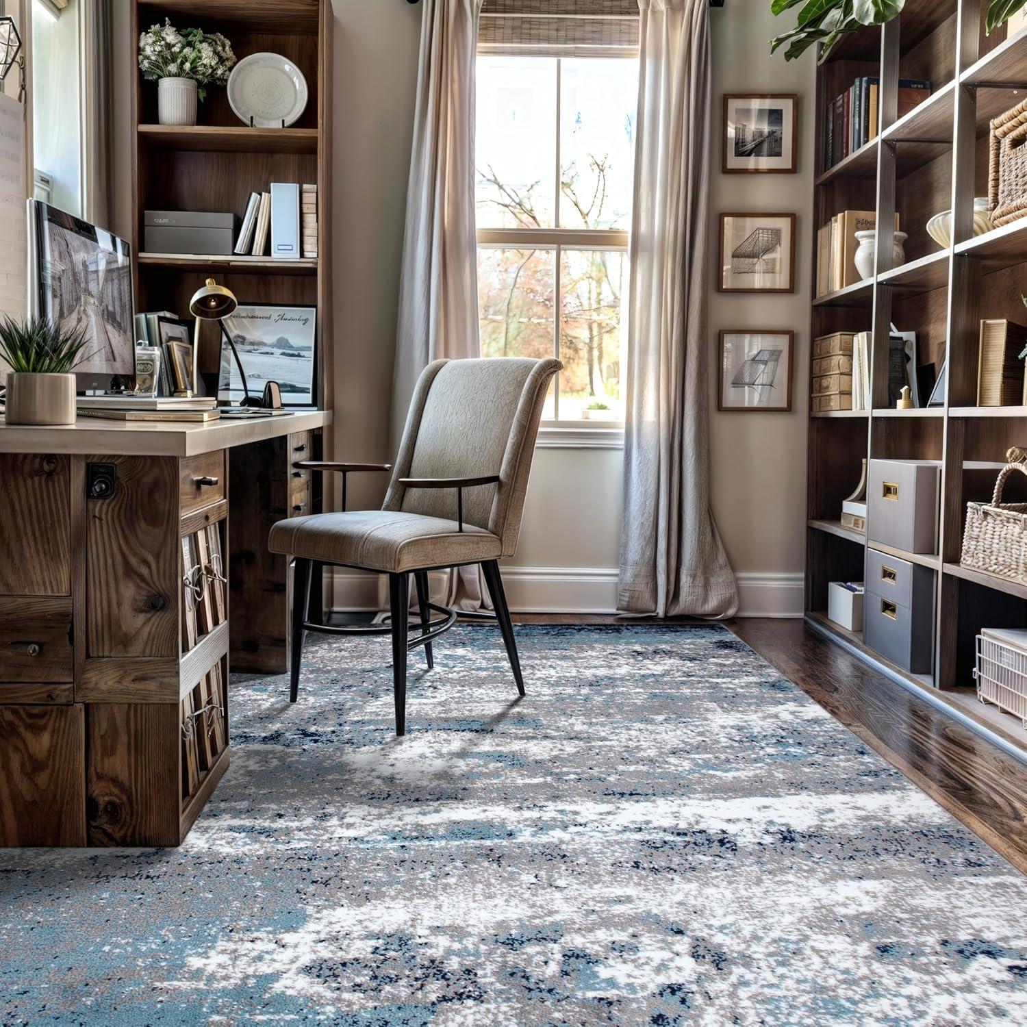 Premium Quality – Crafted from 100% polypropylene with a sturdy jute backing for exceptional durability. This 5' X 7' Blue Distressed Abstract Area Rug rug is built to last, maintaining its texture and color even in busy households.