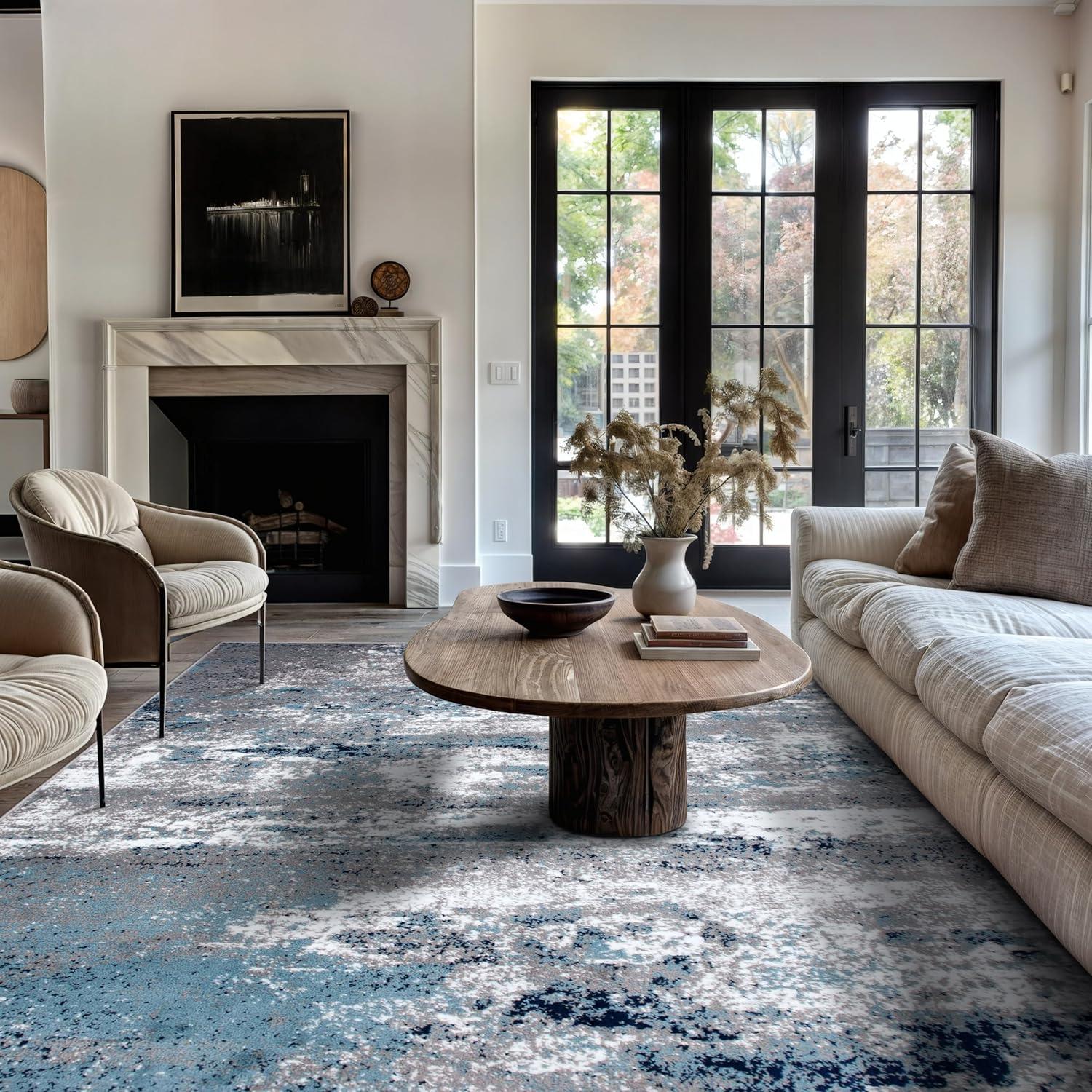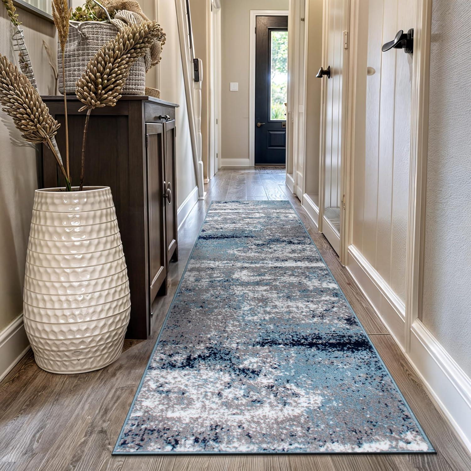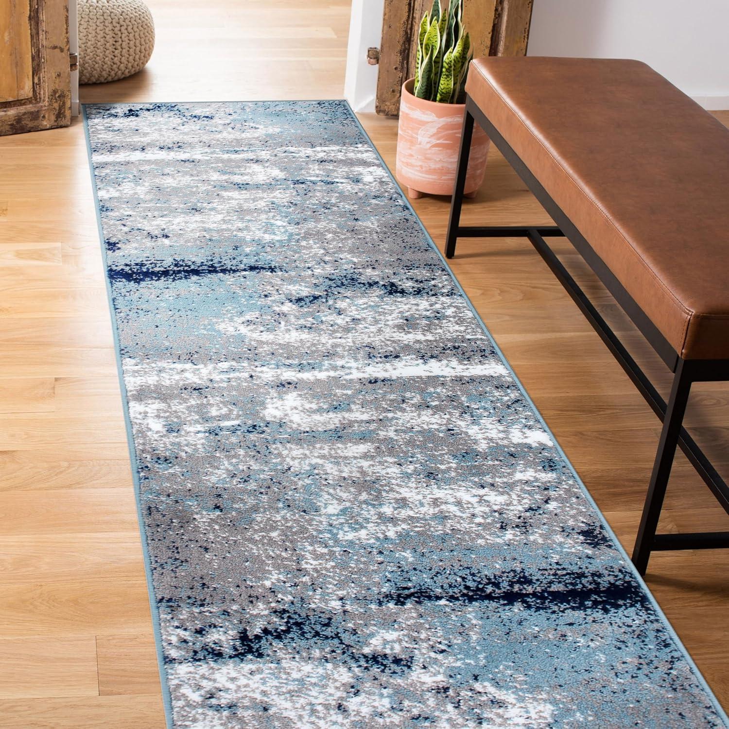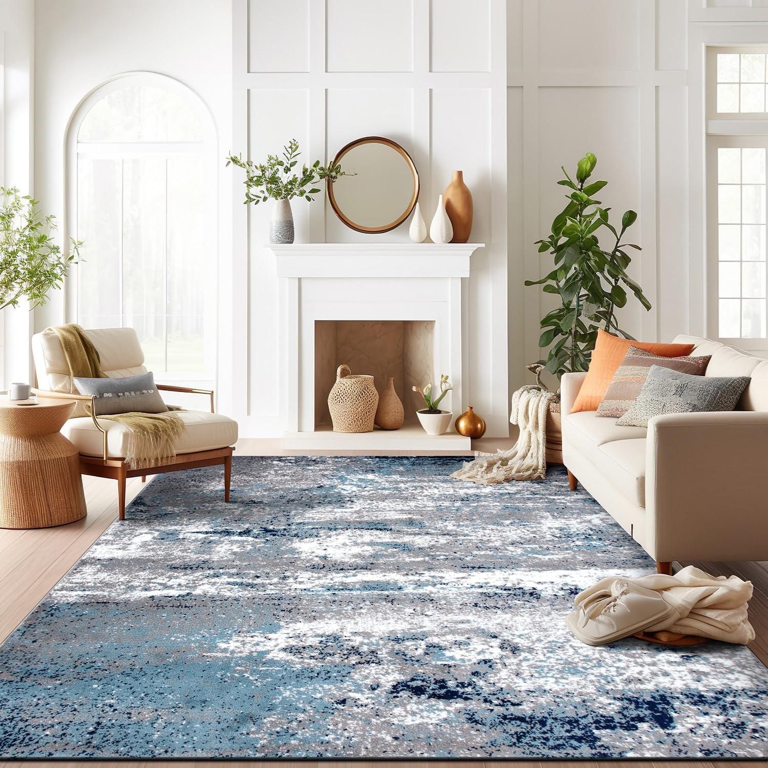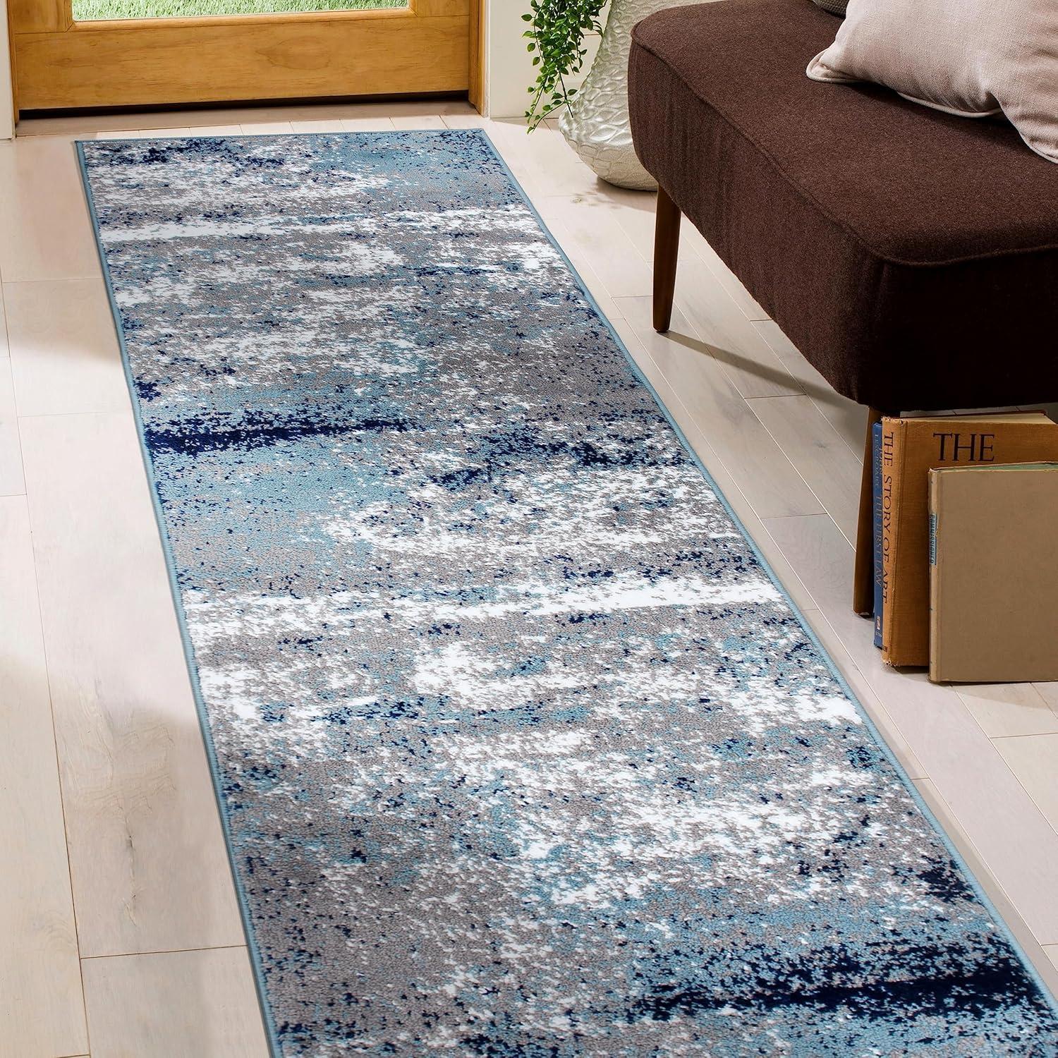 Premium Quality – Crafted from 100% polypropylene with a sturdy jute backing for exceptional durability. This 5' X 7' Blue Distressed Abstract Area Rug rug is built to last, maintaining its texture and color even in busy households.
