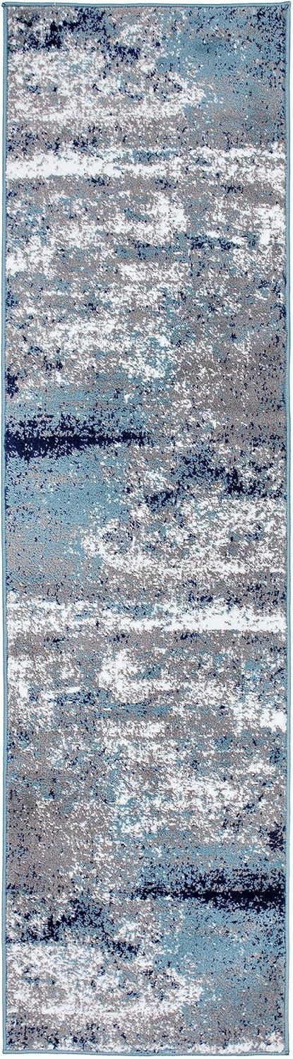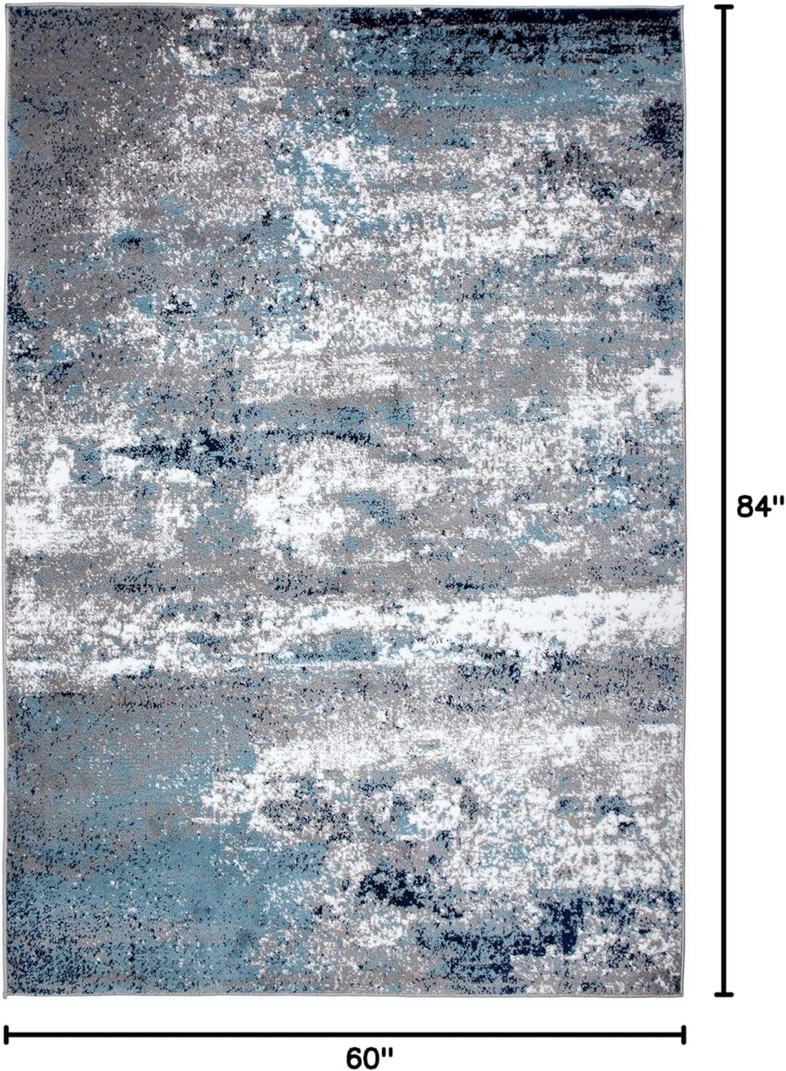 Rugshop Modern Distressed Blue Abstract Area Rug Bohemian Inspired Watercolor for Living Room, Bedroom and Dining Room 5′ x 7′(Blue)