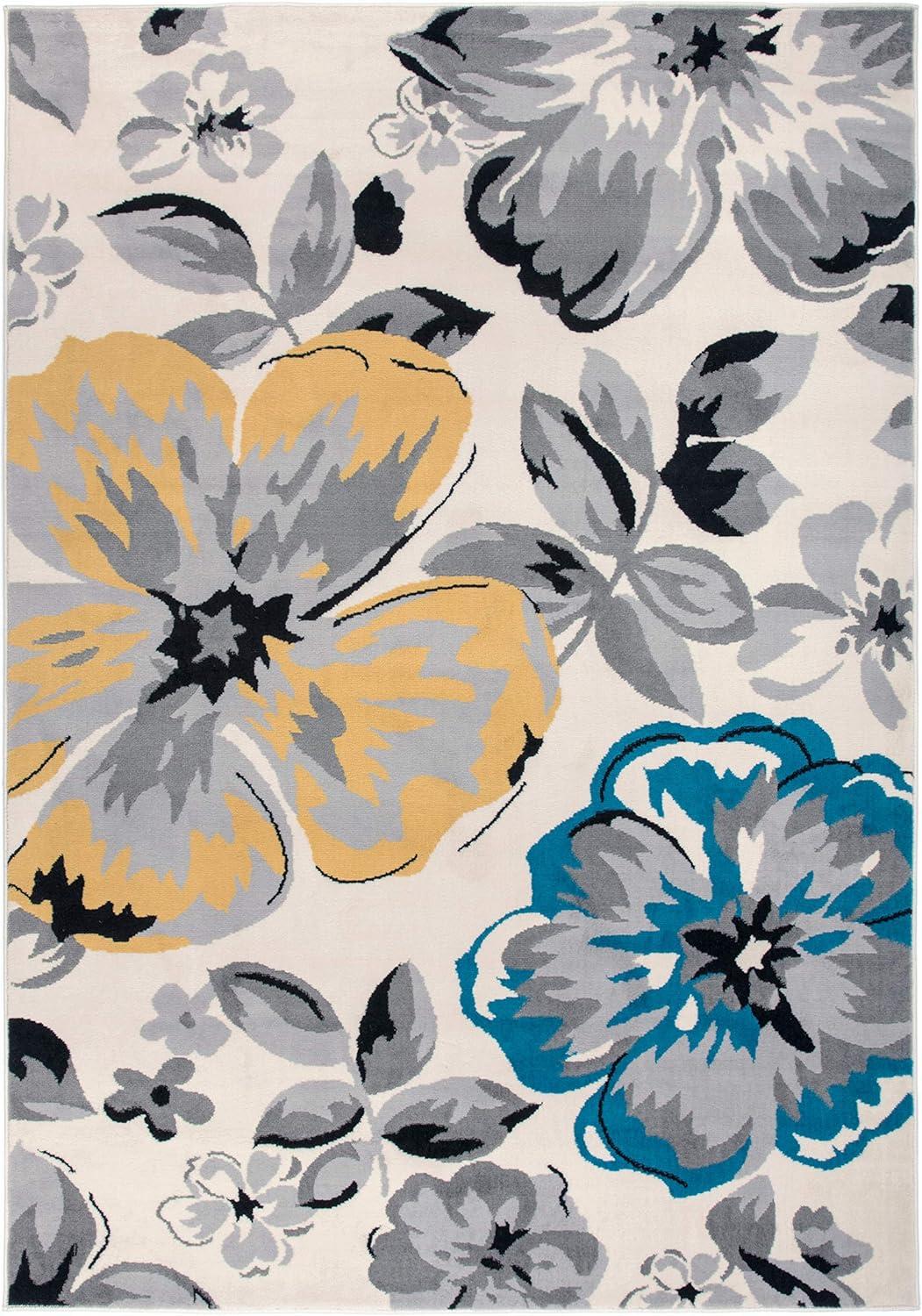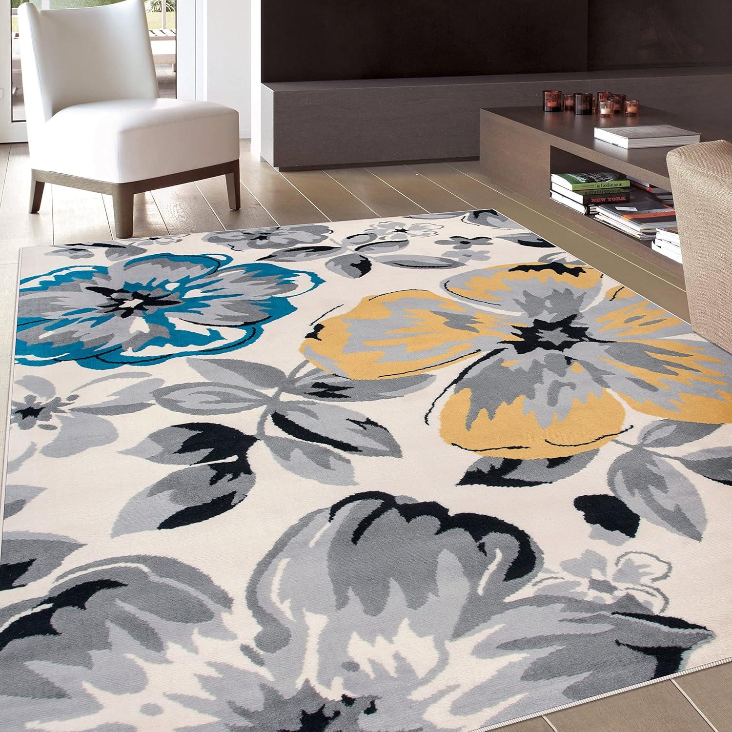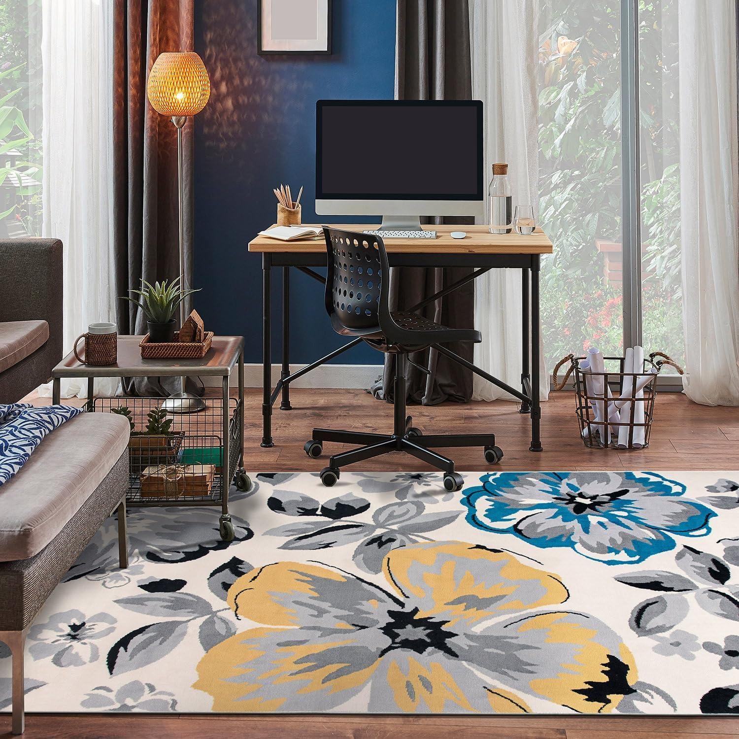 Rugshop Modern Floral Design for Living Room,Bedroom,Home Office,Kitchen Non Shedding Area Rug 5′ X 7′ Cream(Cream)