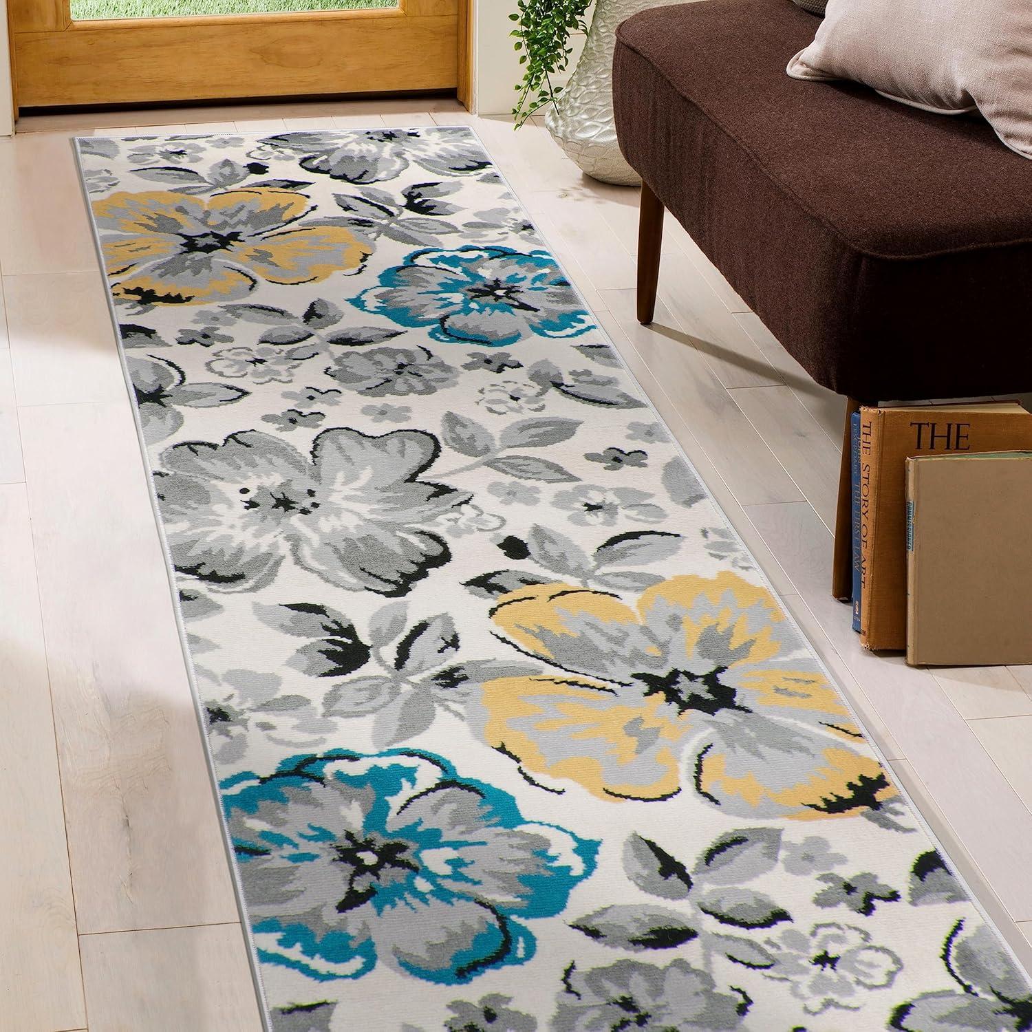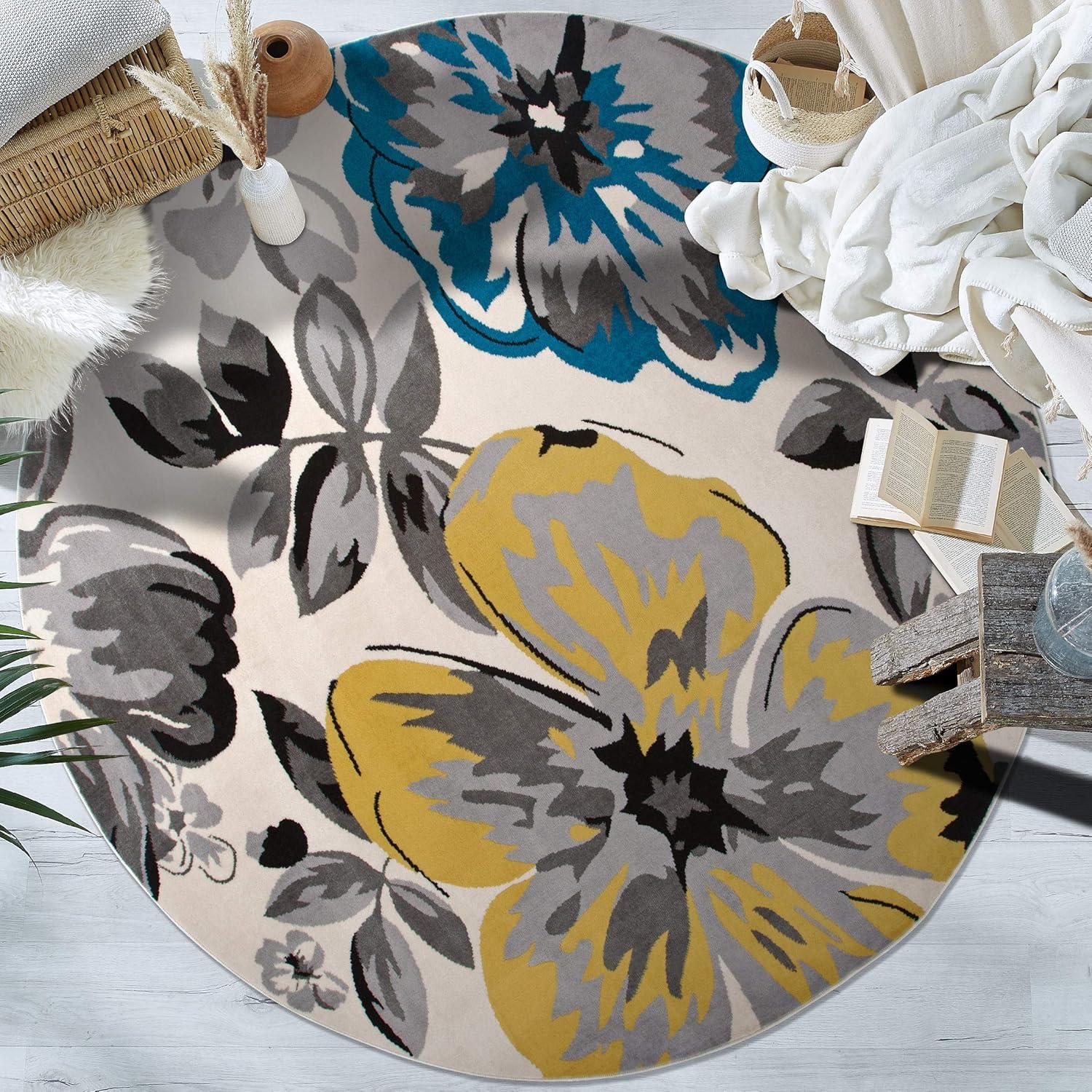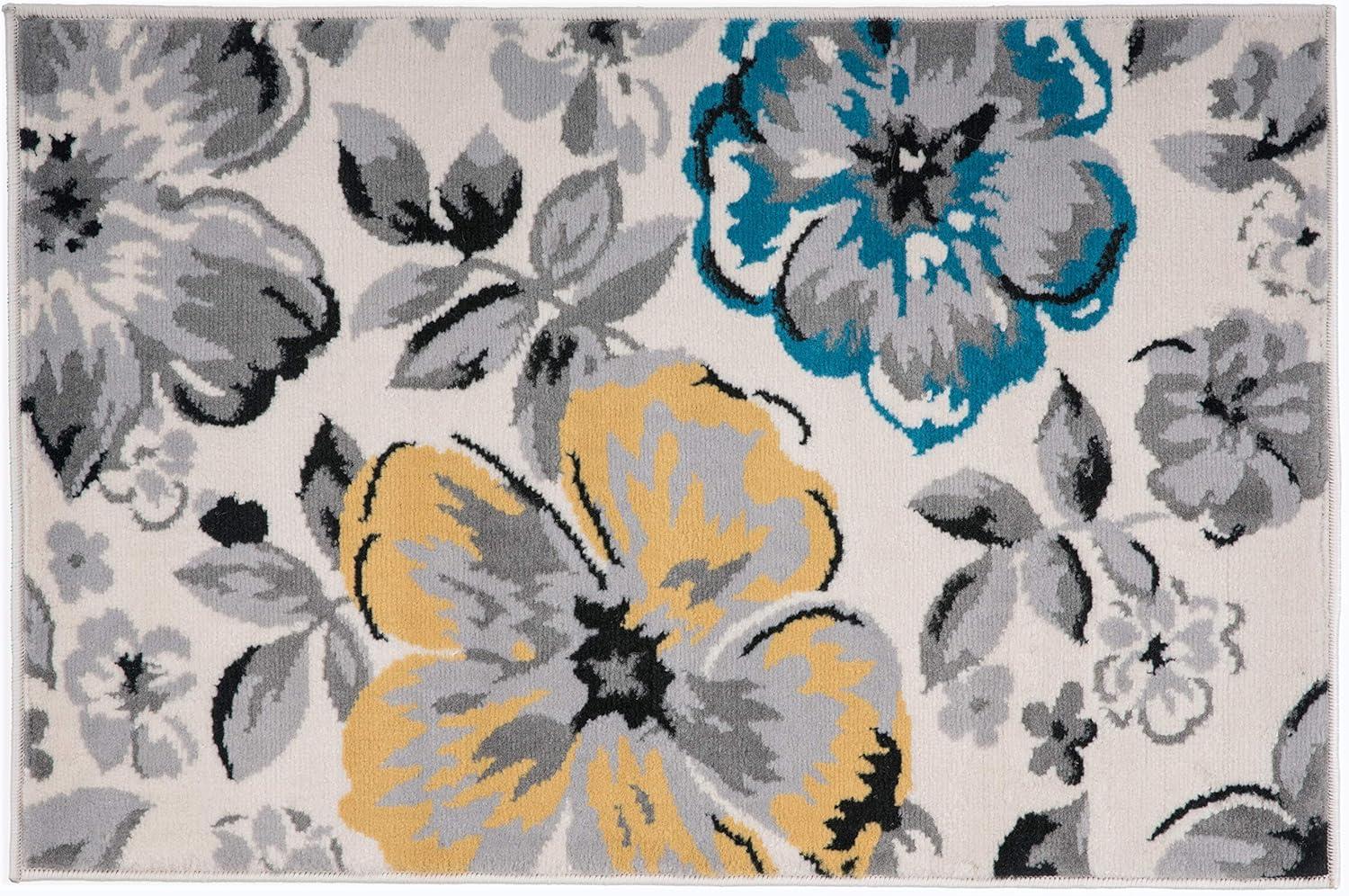 Rugshop Modern Floral Design for Living Room,Bedroom,Home Office,Kitchen Non Shedding Area Rug 5′ X 7′ Cream(Cream)