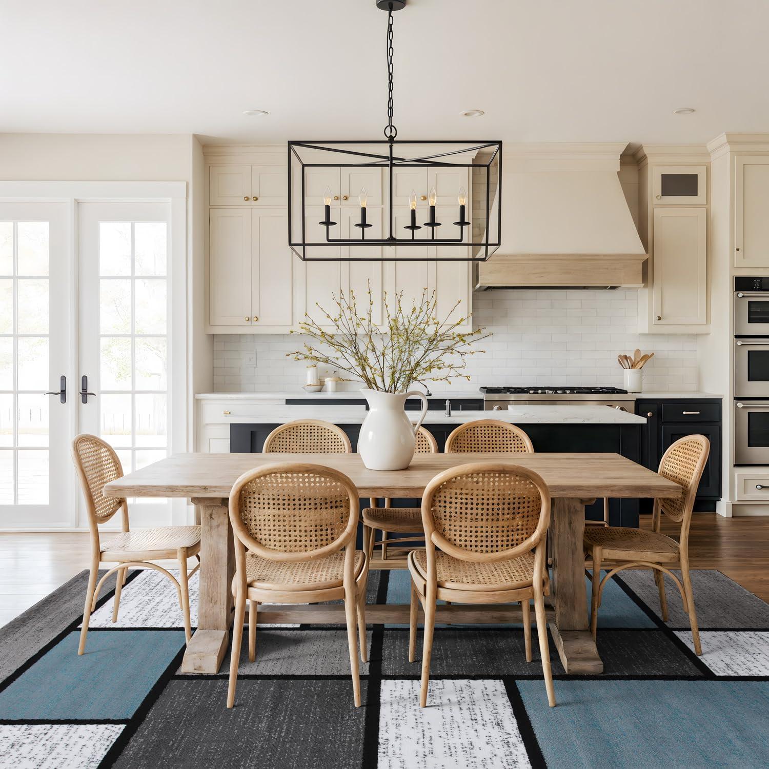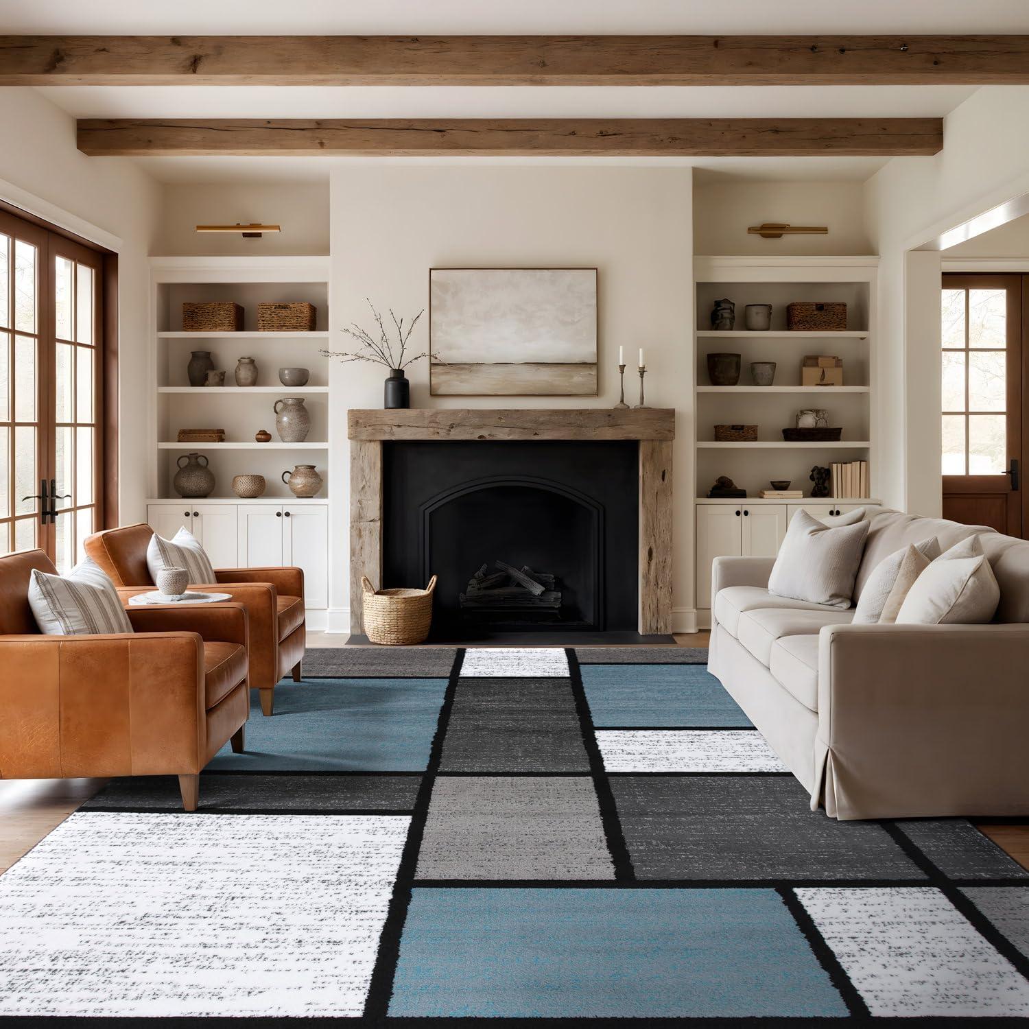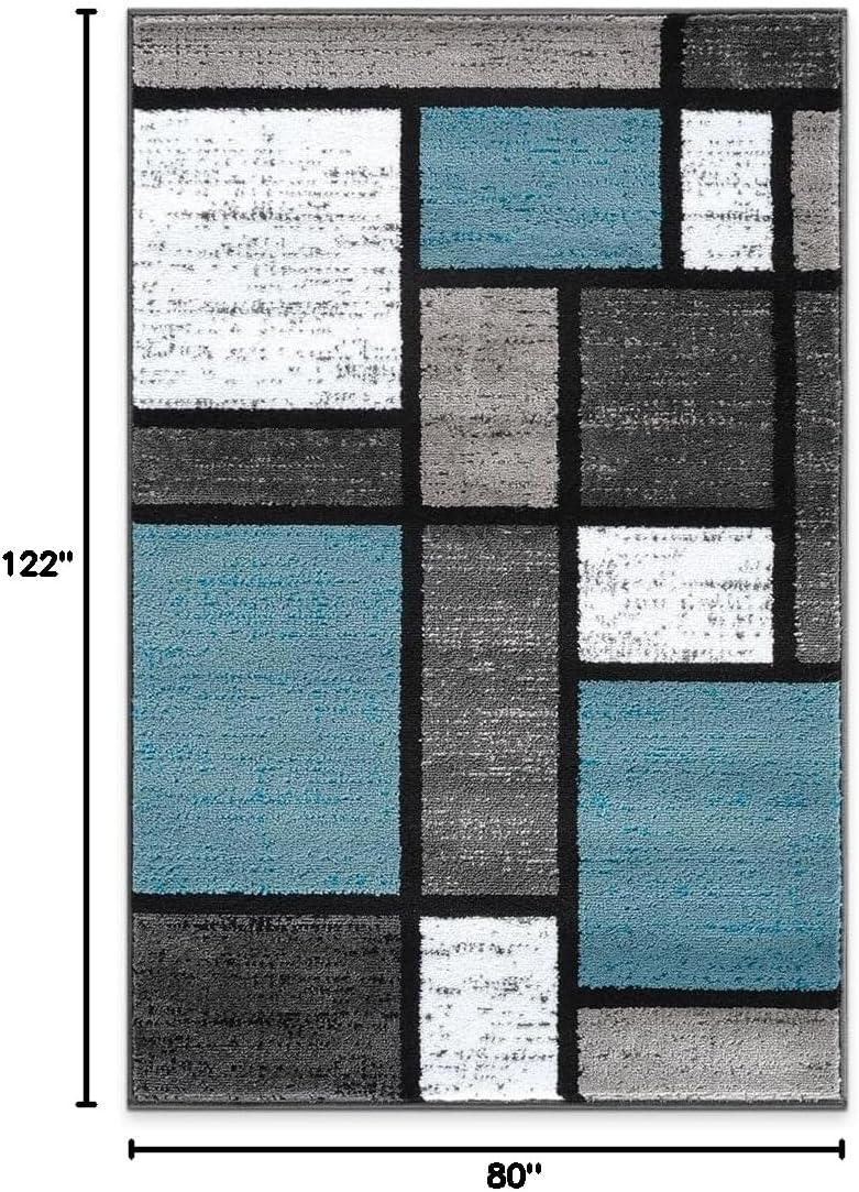 Rugshop Modern Geometric Boxes Blue Area Rug, Non-Shedding Carpet for Living Room,Kitchen, Bedroom, or Home Office, 5’3″ x 7’3″(Blue)