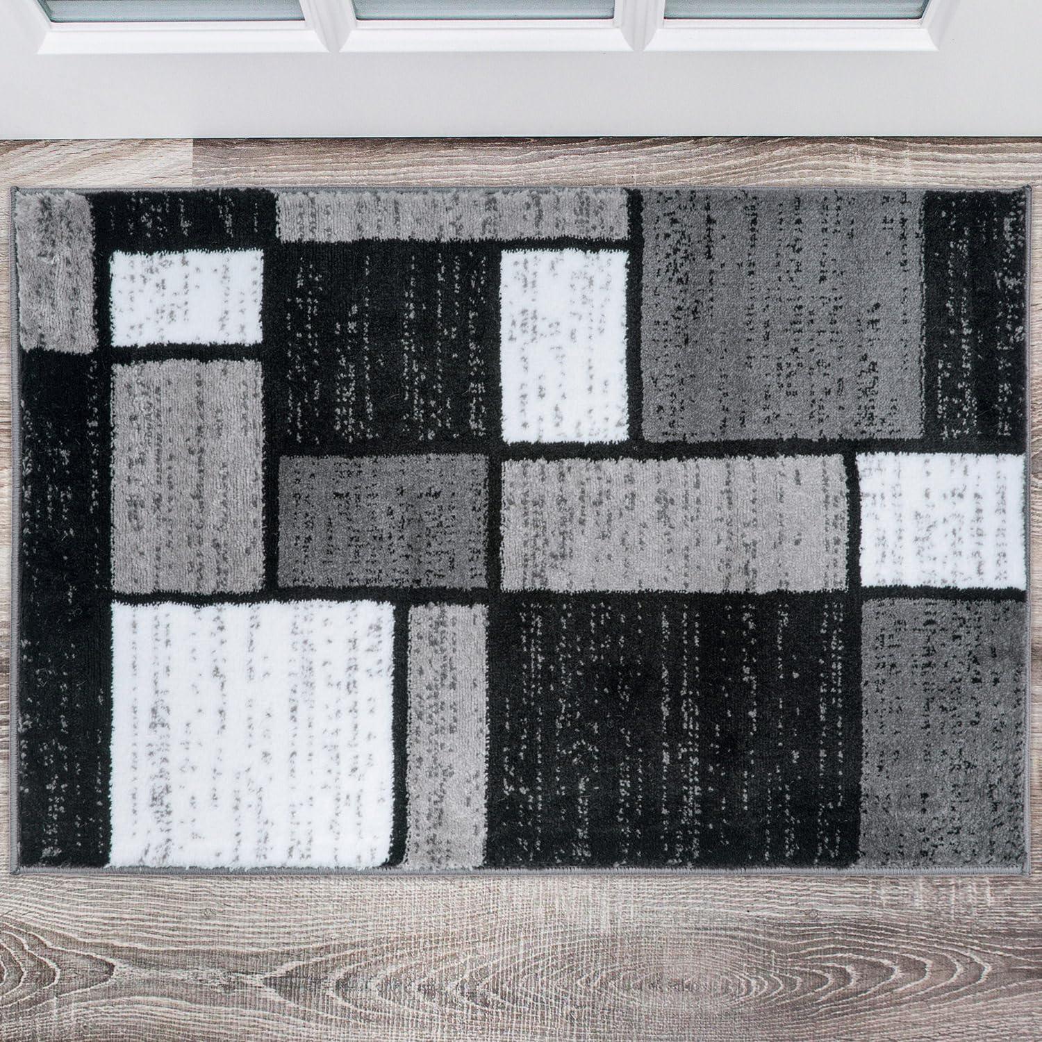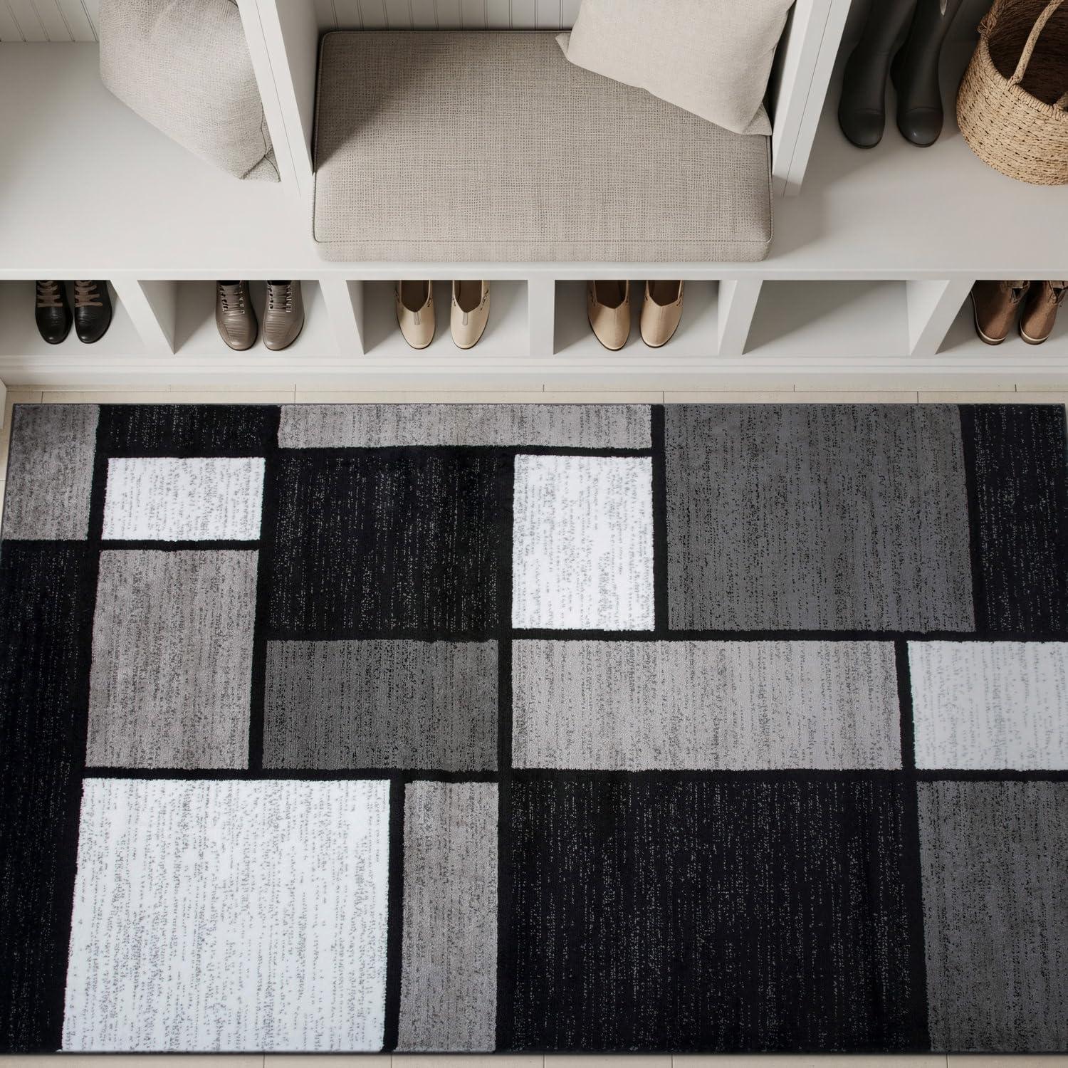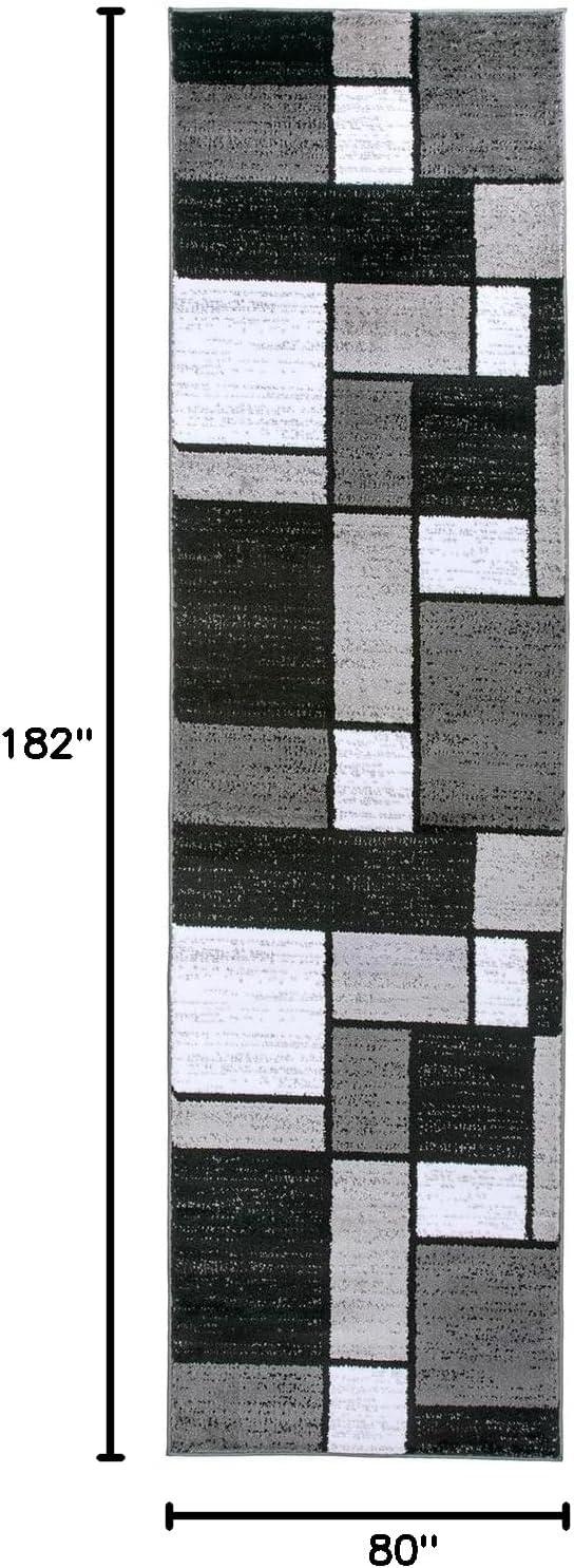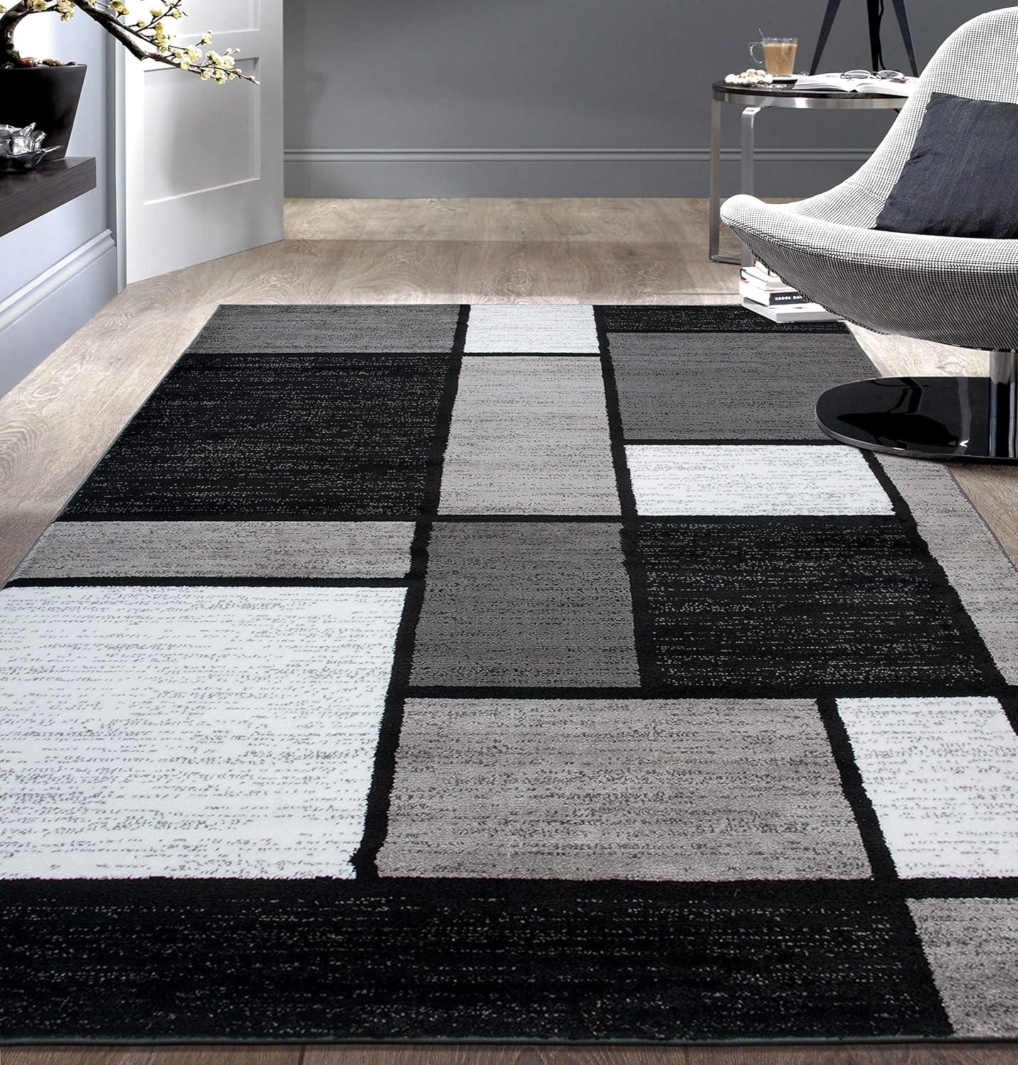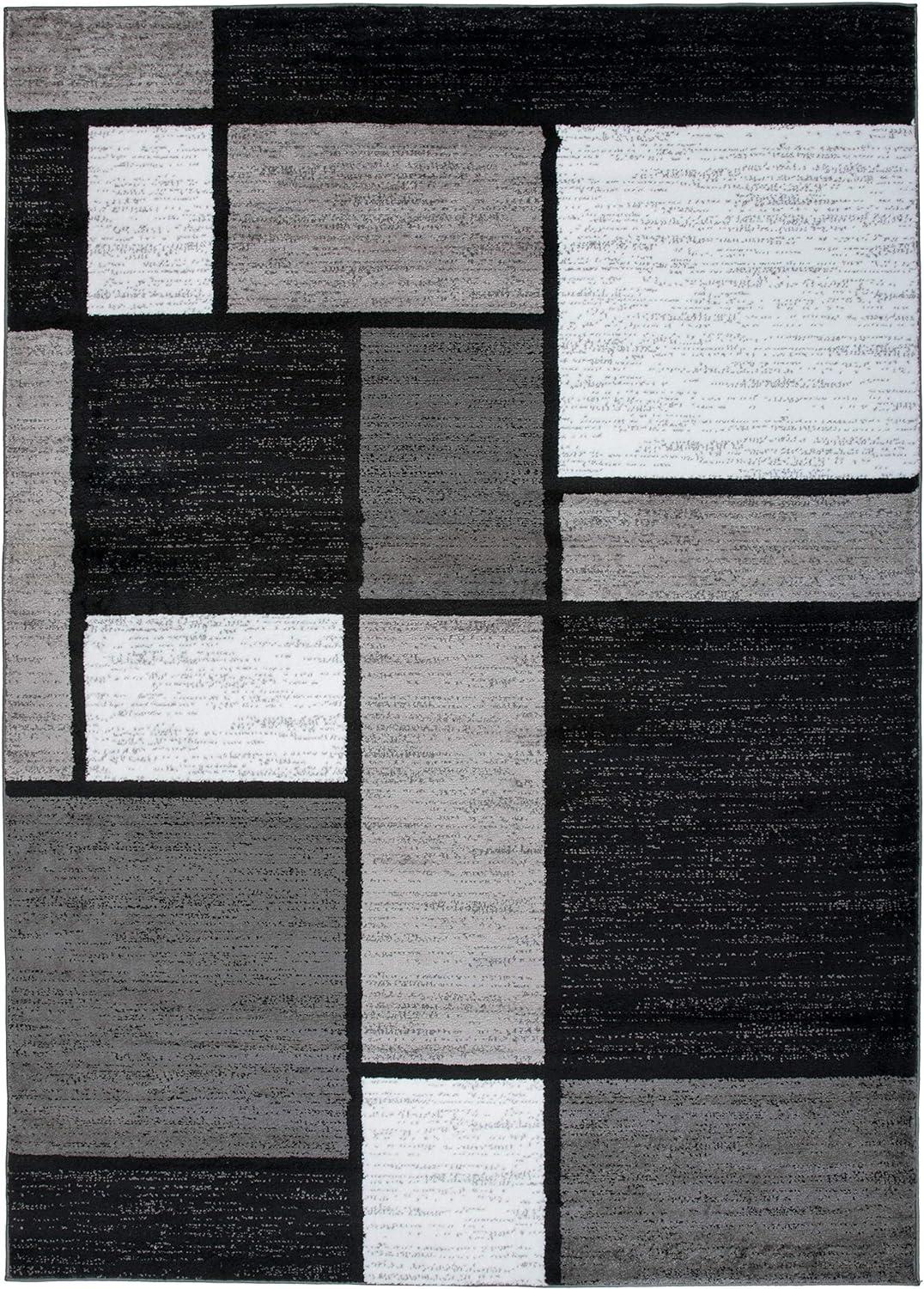 Rugshop Modern Geometric Boxes Blue Area Rug, Non-Shedding Carpet for Living Room,Kitchen, Bedroom, or Home Office, 5’3″ x 7’3″(Grey)