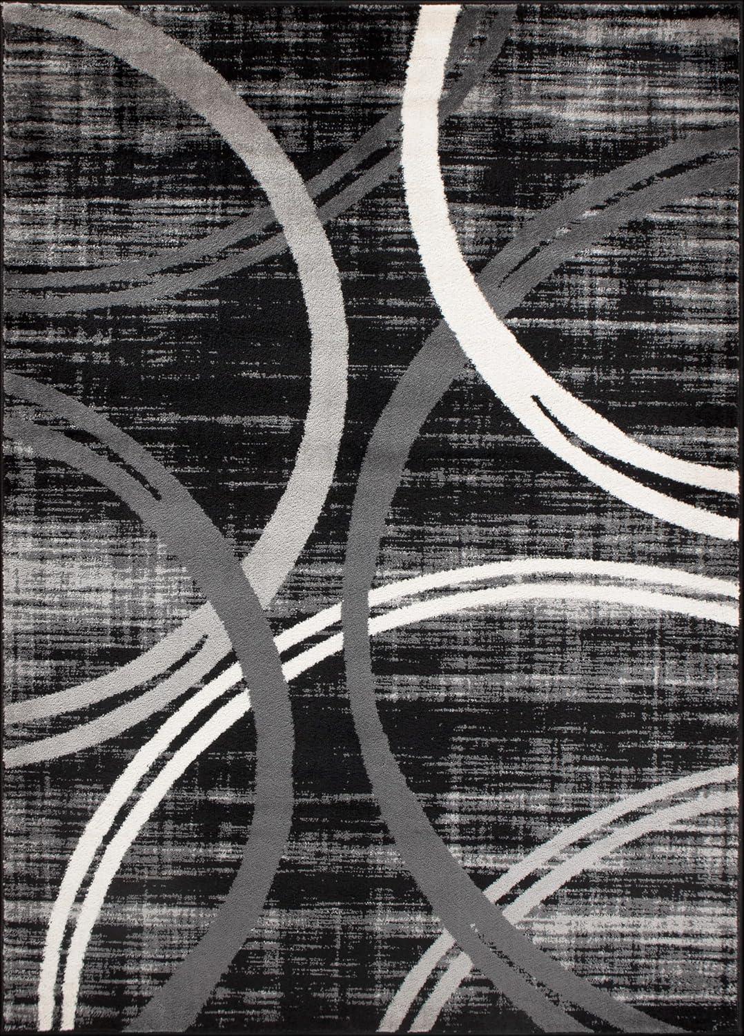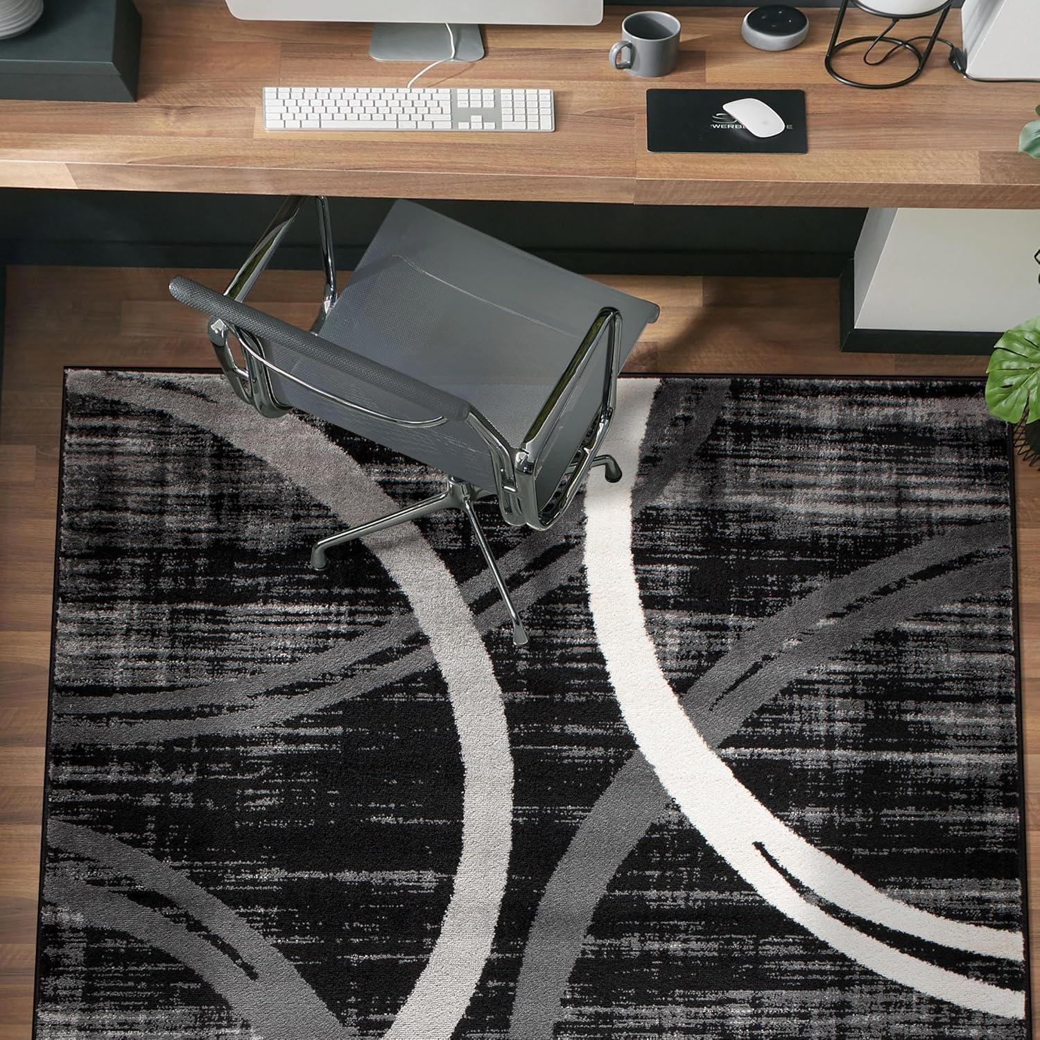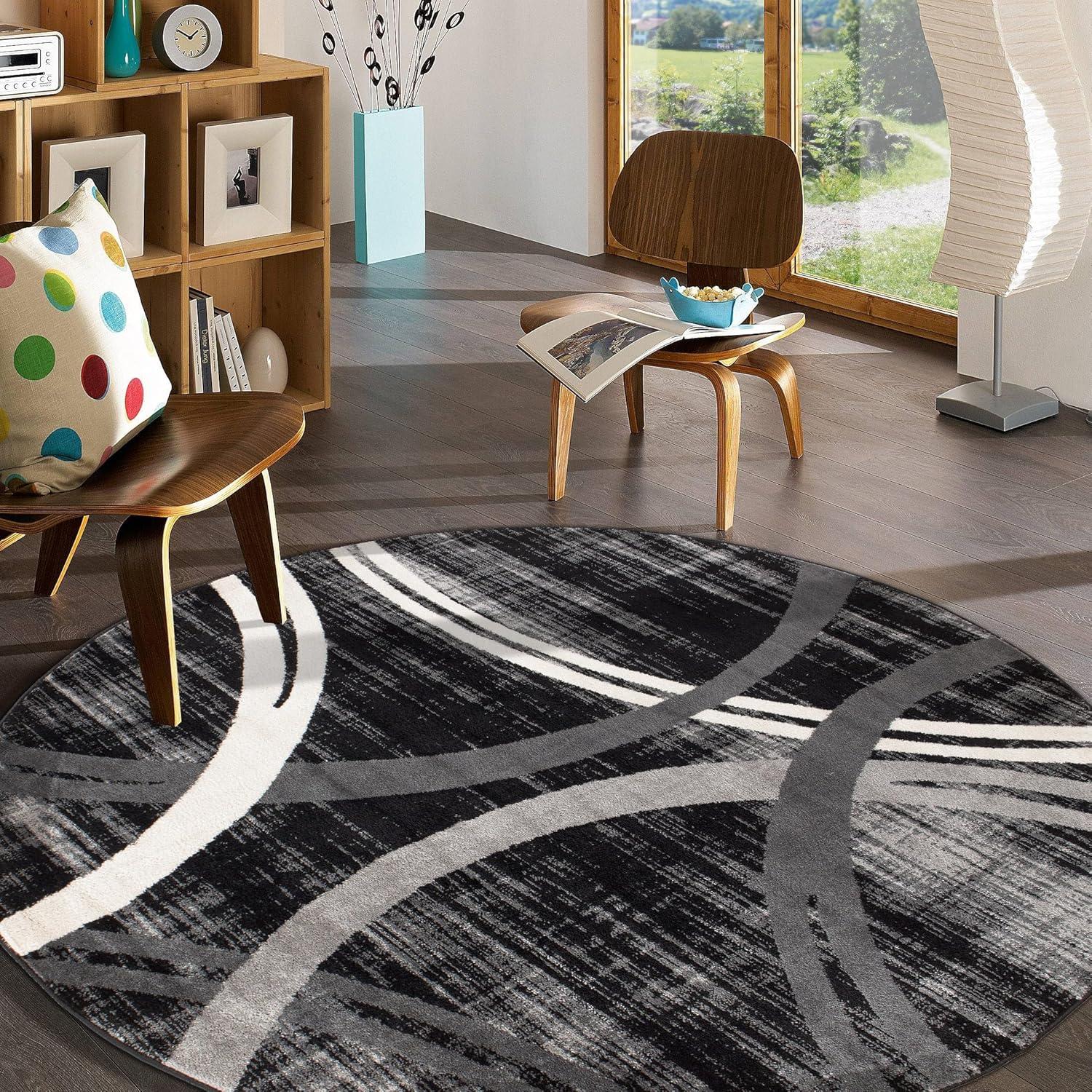 Rugshop Modern Wavy Circles Design Area Rug, Fade-Resistant Carpet for Living Room, Bedroom, or Dining Room, Blue, 5’3″ x 7’3″(Black)