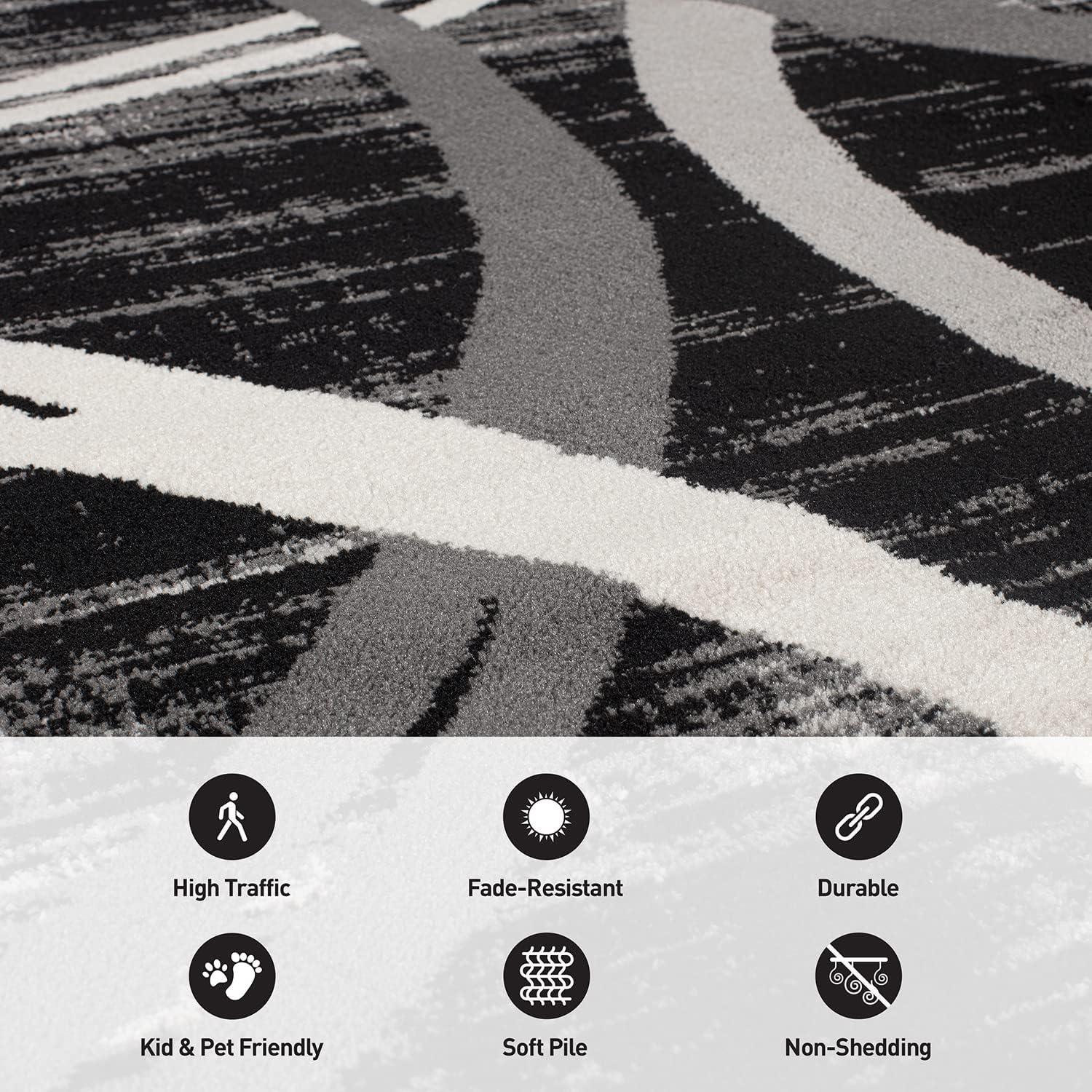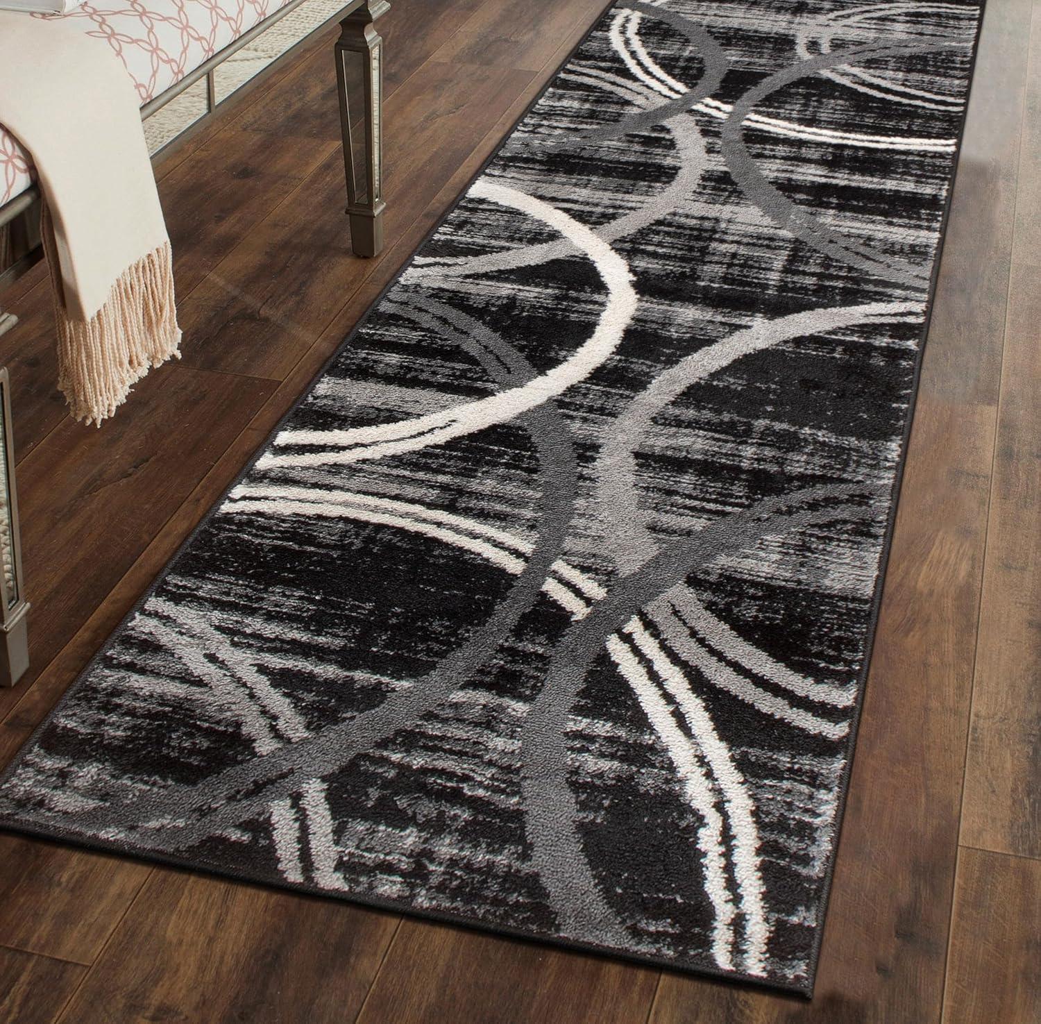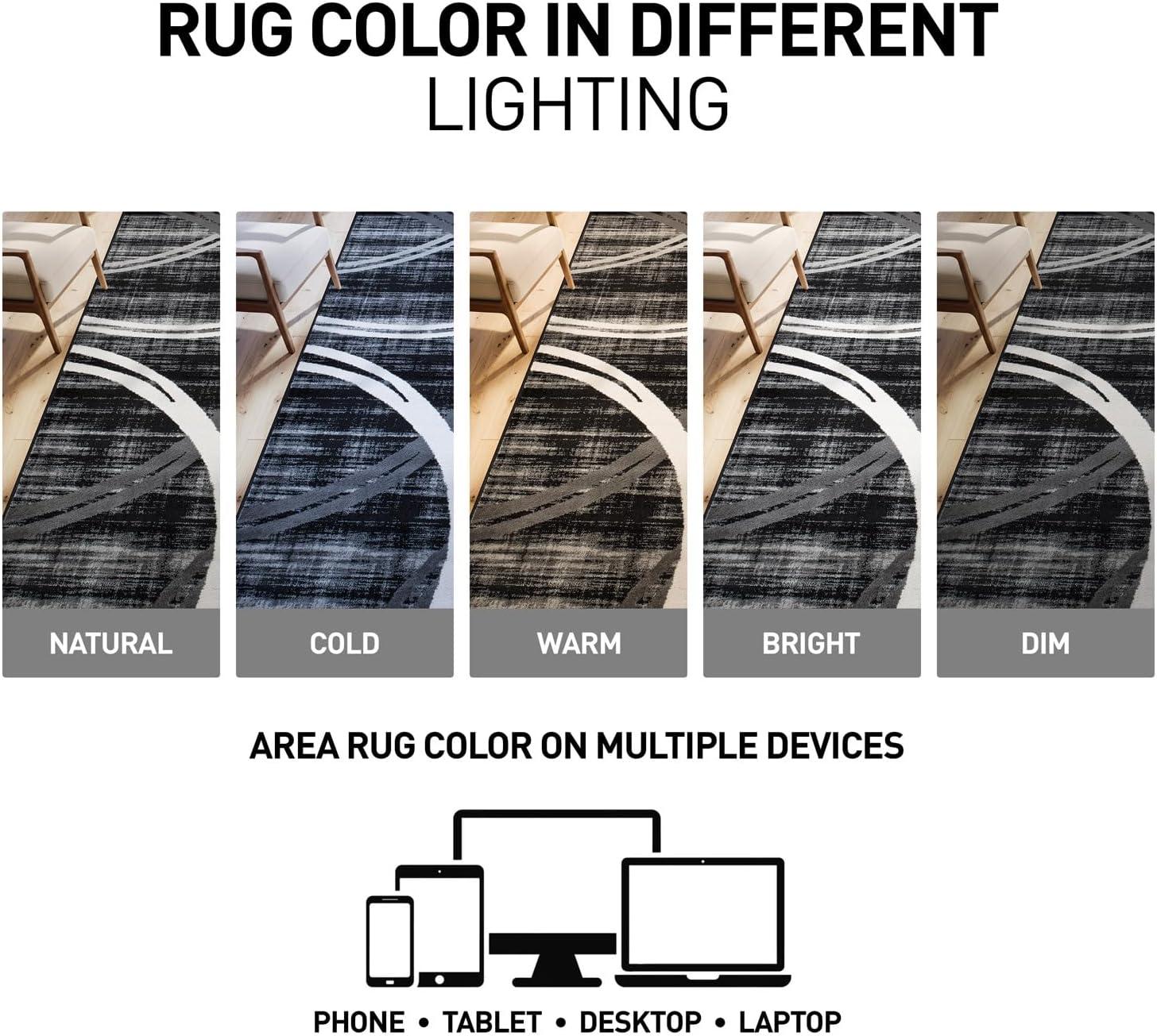 Rugshop Modern Wavy Circles Design Area Rug, Fade-Resistant Carpet for Living Room, Bedroom, or Dining Room, Blue, 5’3″ x 7’3″(Black)