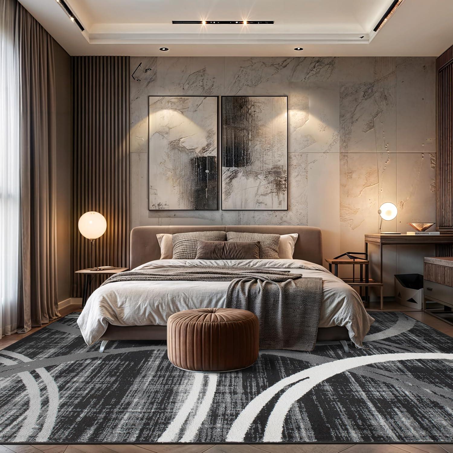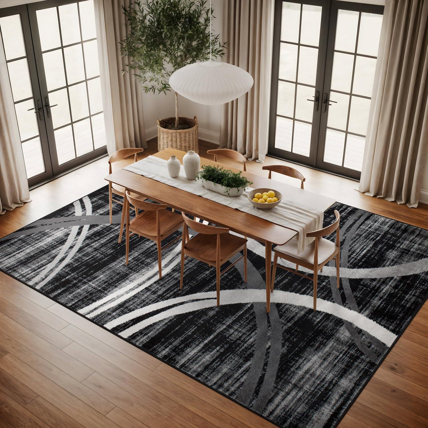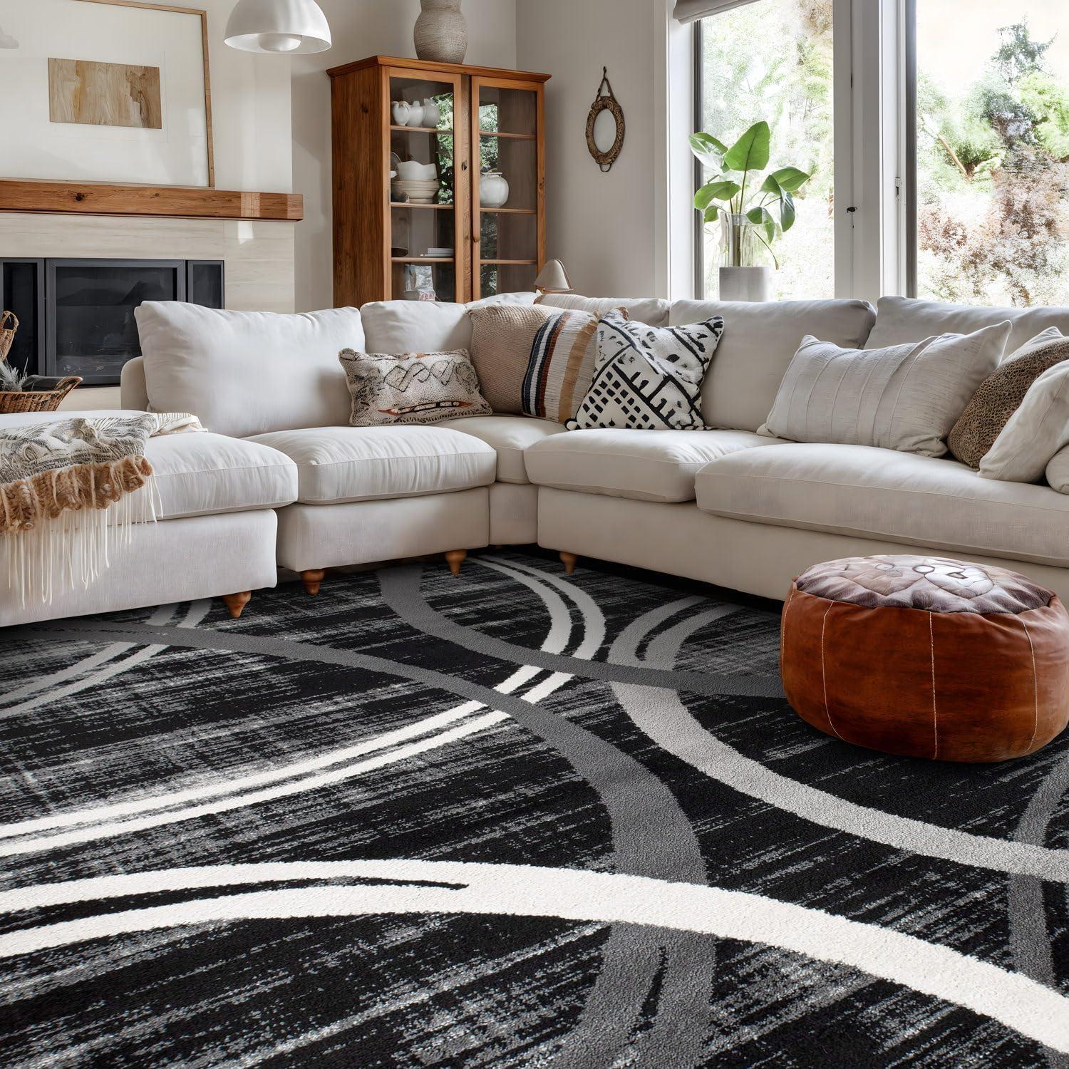 This rug features a bold and flowing wavy circle pattern that adds a striking artistic element to your space, serving as a visual centerpiece while complementing both modern and transitional interiors.