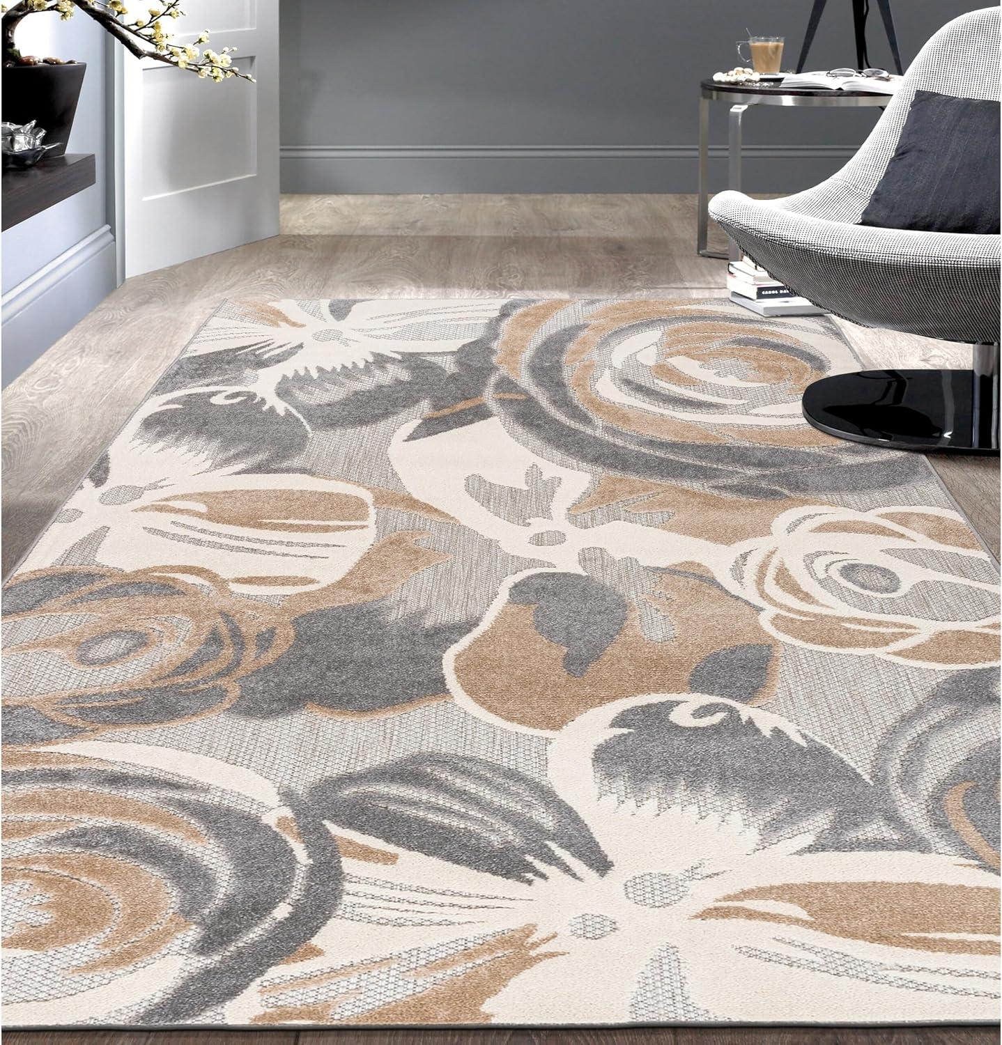 Rugshop Ravenna Modern Large Floral Flowers Indoor/Outdoor Area Rug 5′ x 7′ Multi(Grey)