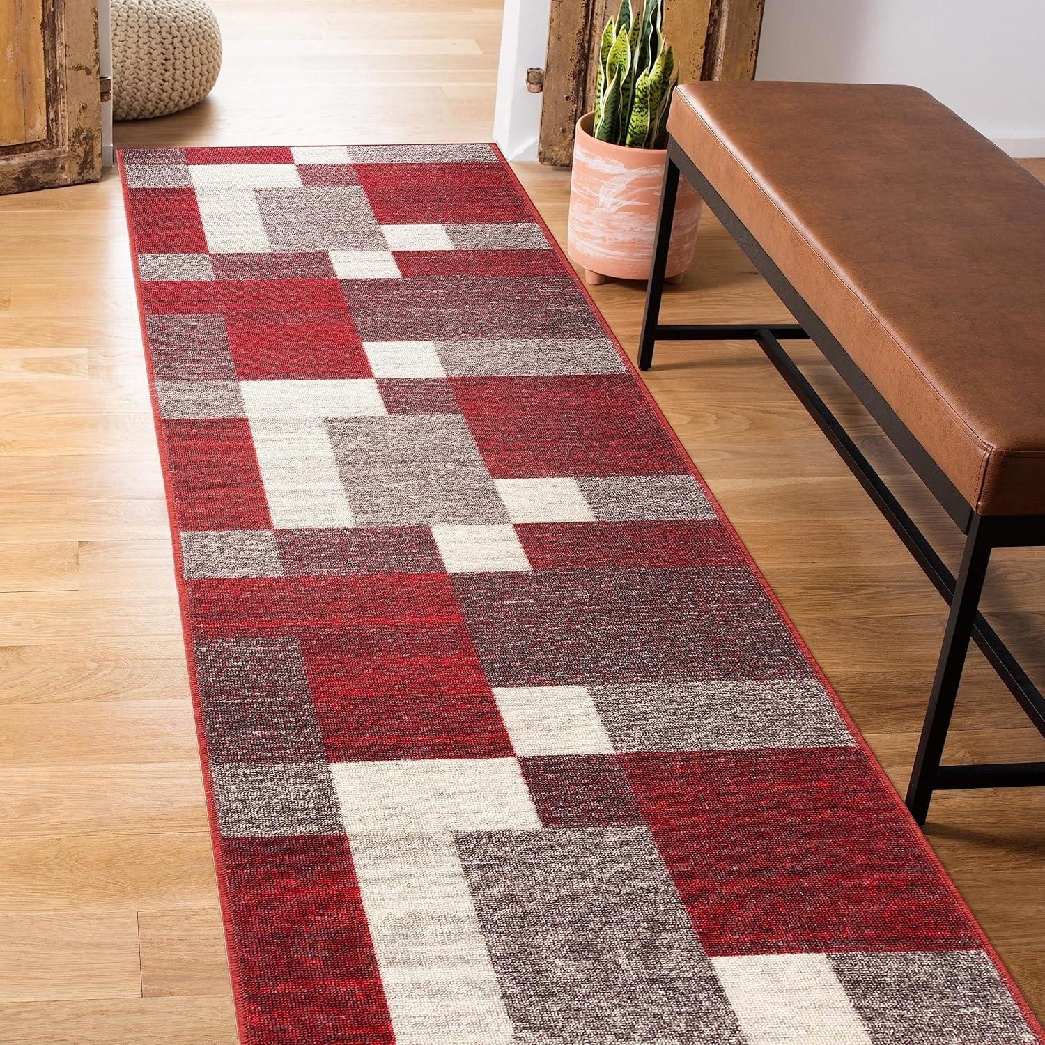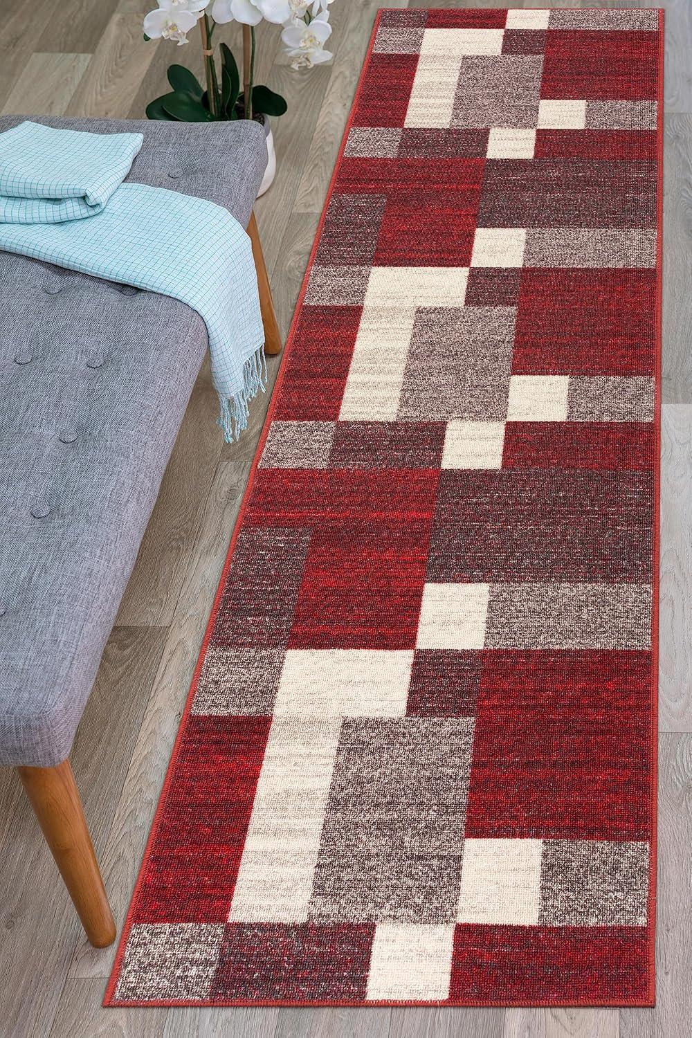 Rugshop Red Modern Geometric Boxes Non-Slip Area Rug Non-Shedding for Living Room, Bedroom and Dining Area, 5’3″ x 7’3″(Red)