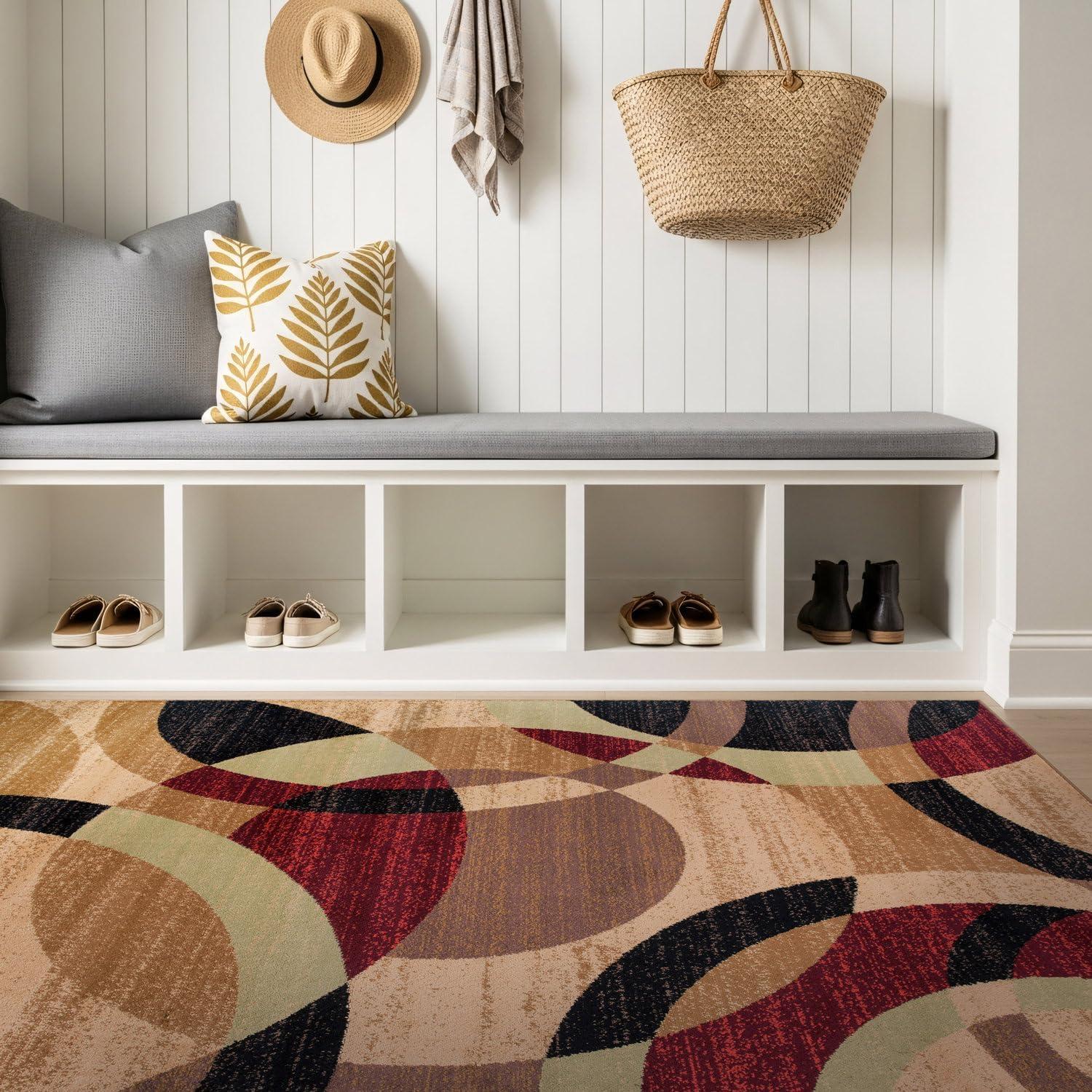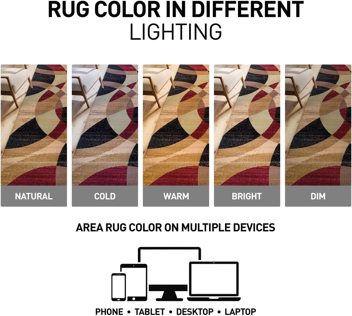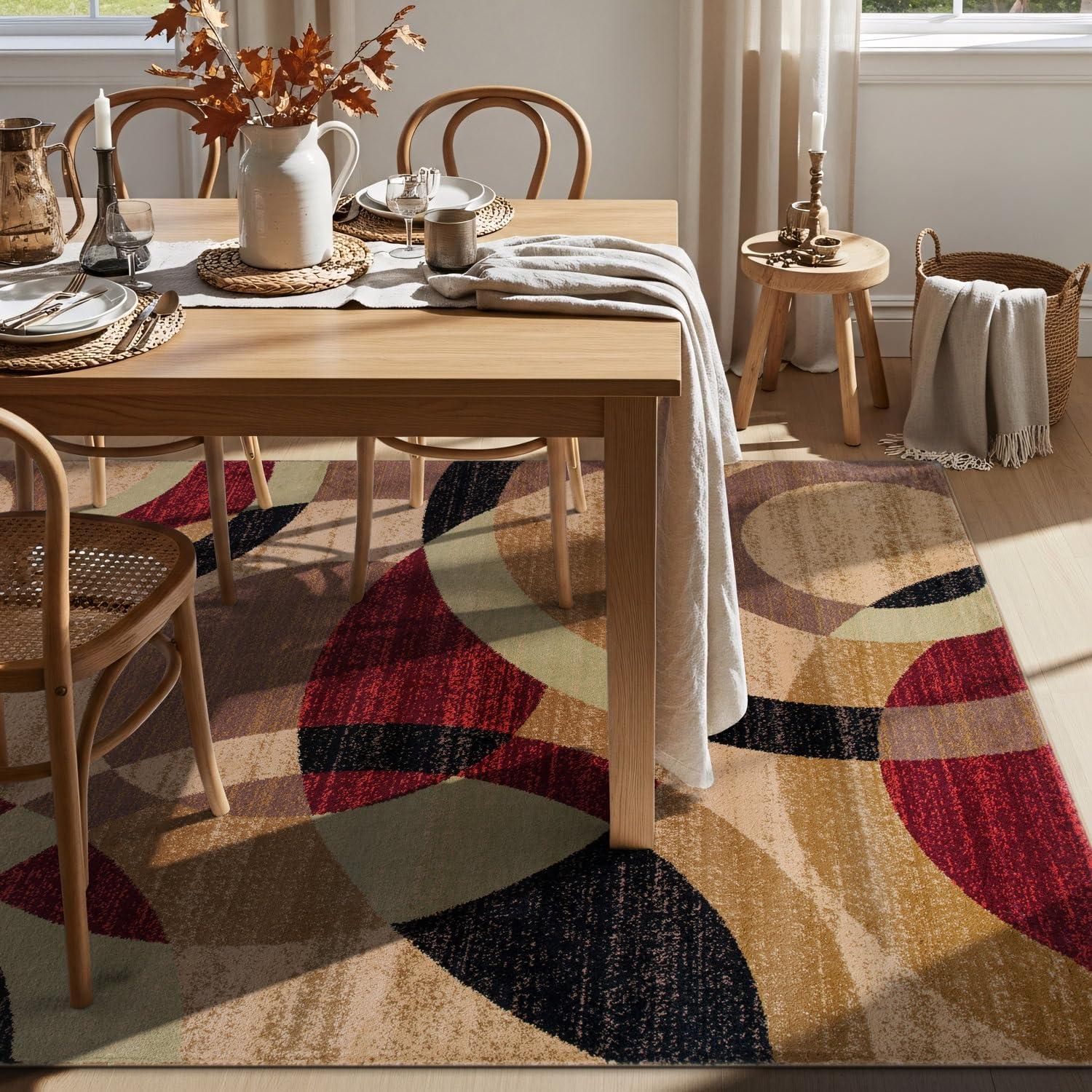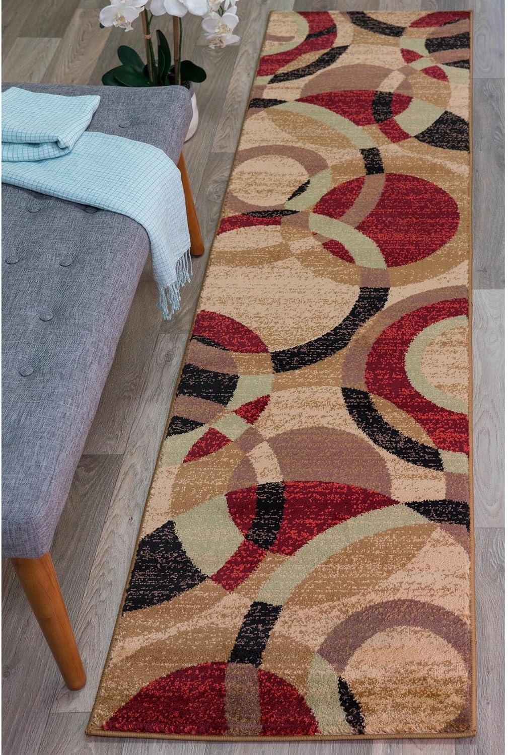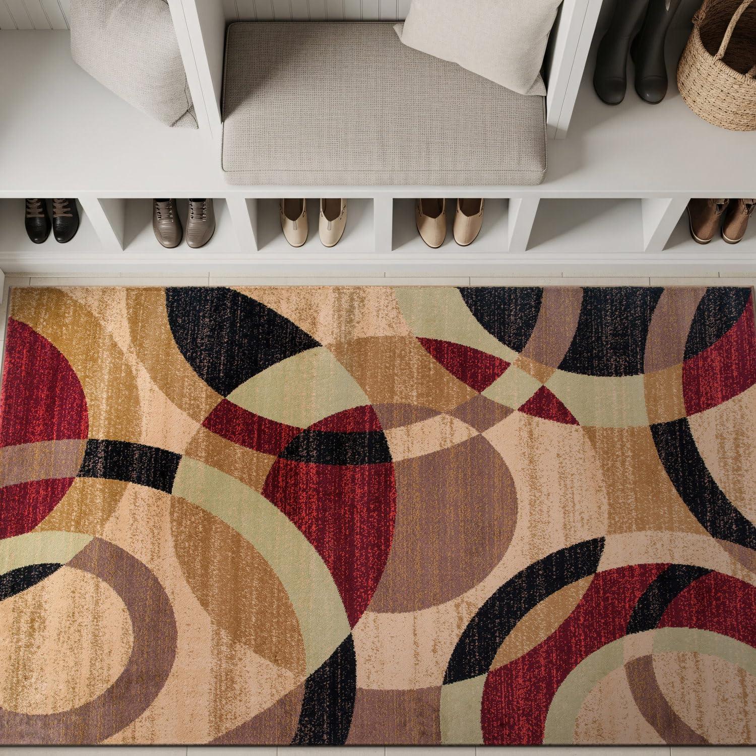 Rugshop Red Modern Geometric Indoor Area Rug, Overlapping Circle Pattern, Fade Resistant, Non-Shedding, for Living Room, Bedroom and Home Office, 5’3″ x 7’3″(Multi Color)