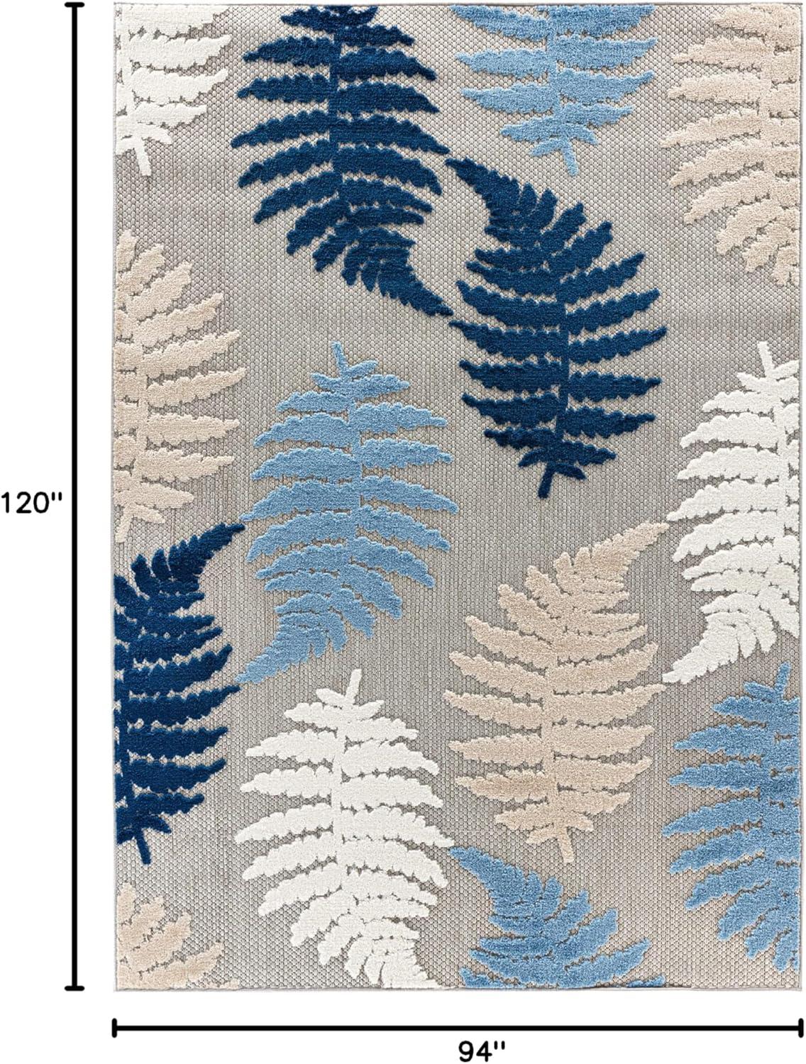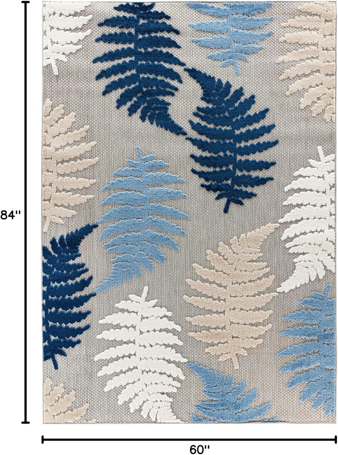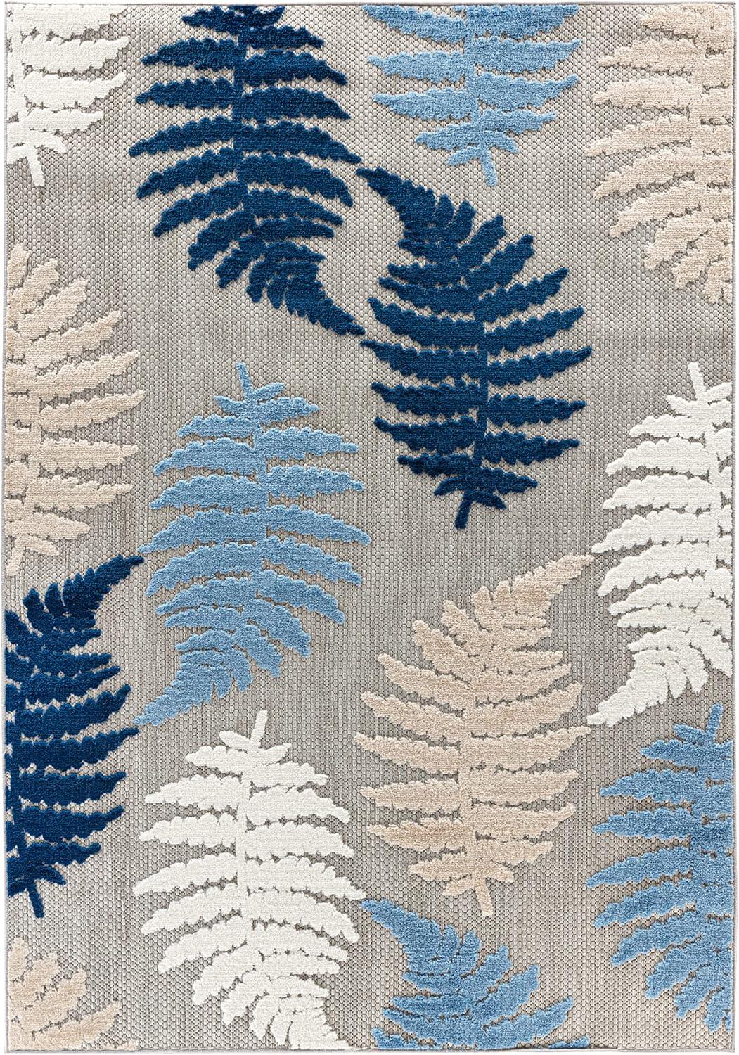 Rugshop Seville Floral Leaves Non-Shedding Patio Deck Backyard Indoor/Outdoor Area Rug 5′ x 7′ Blue(Blue)