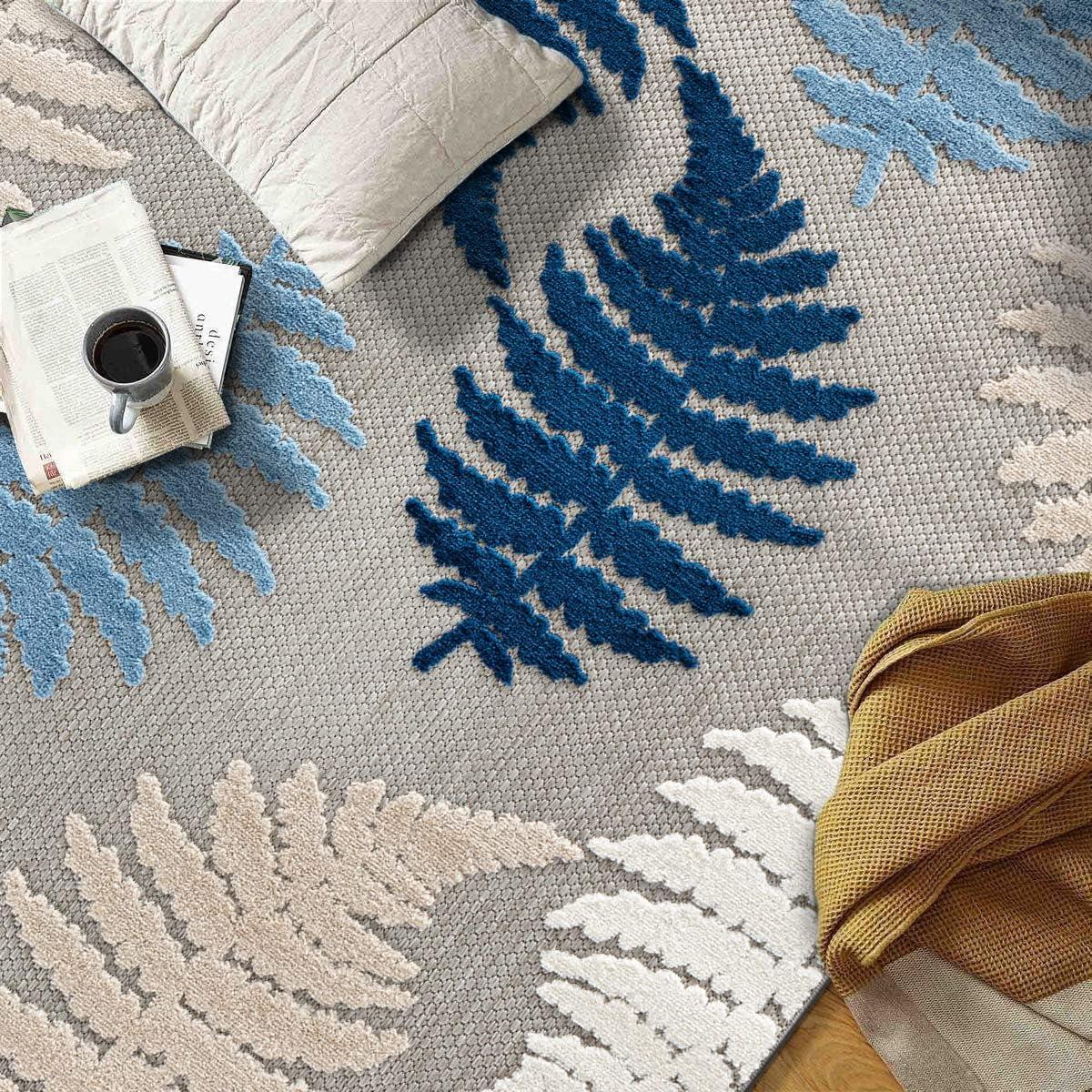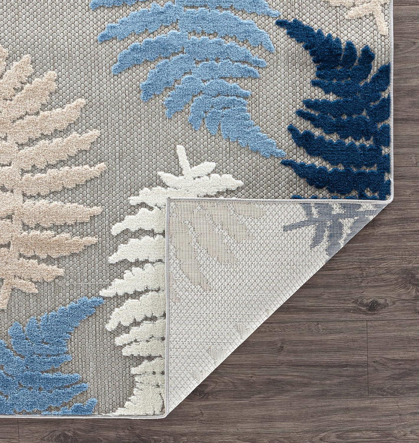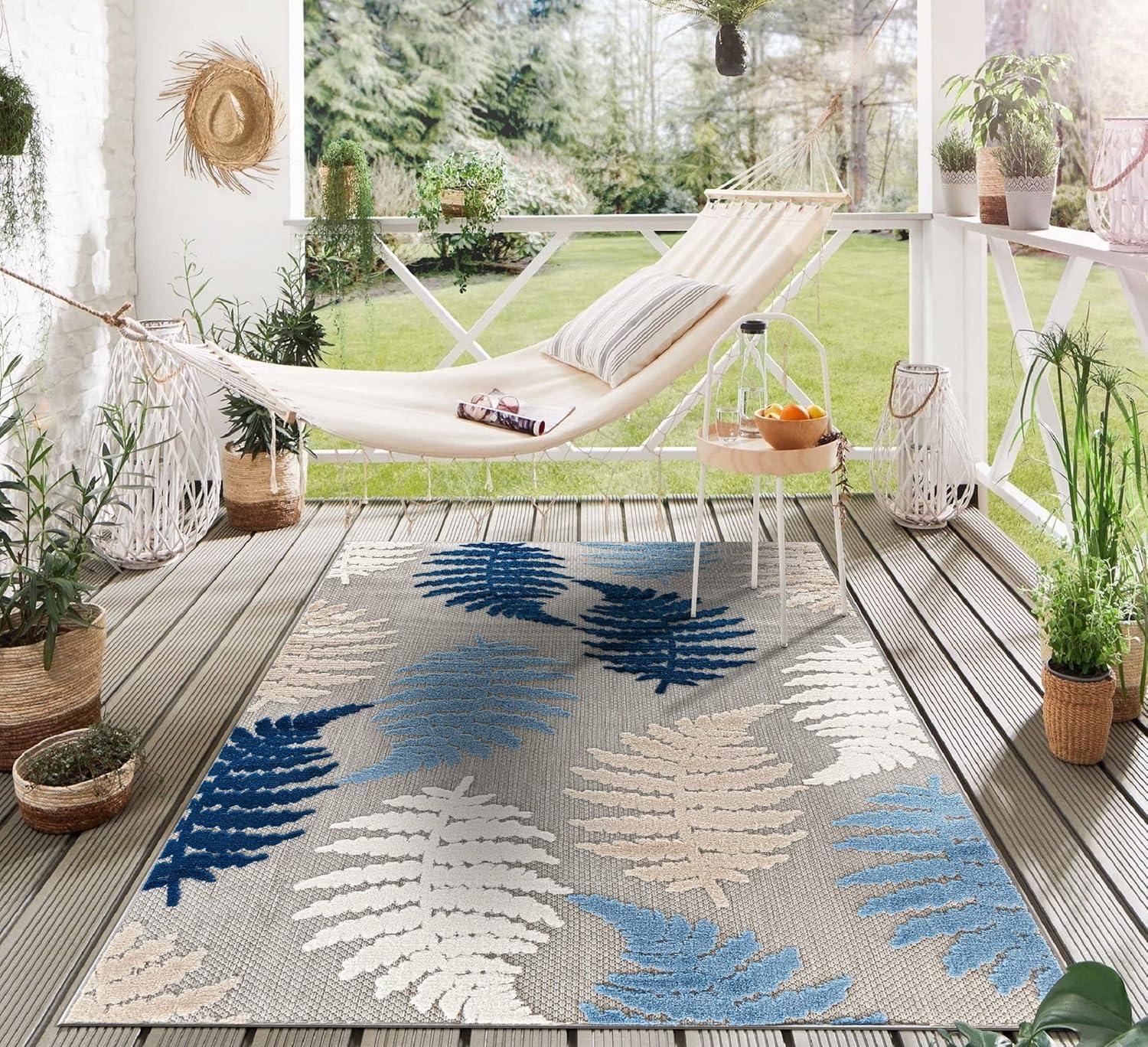 Rugshop Seville Floral Leaves Non-Shedding Patio Deck Backyard Indoor/Outdoor Area Rug 5′ x 7′ Blue(Blue)