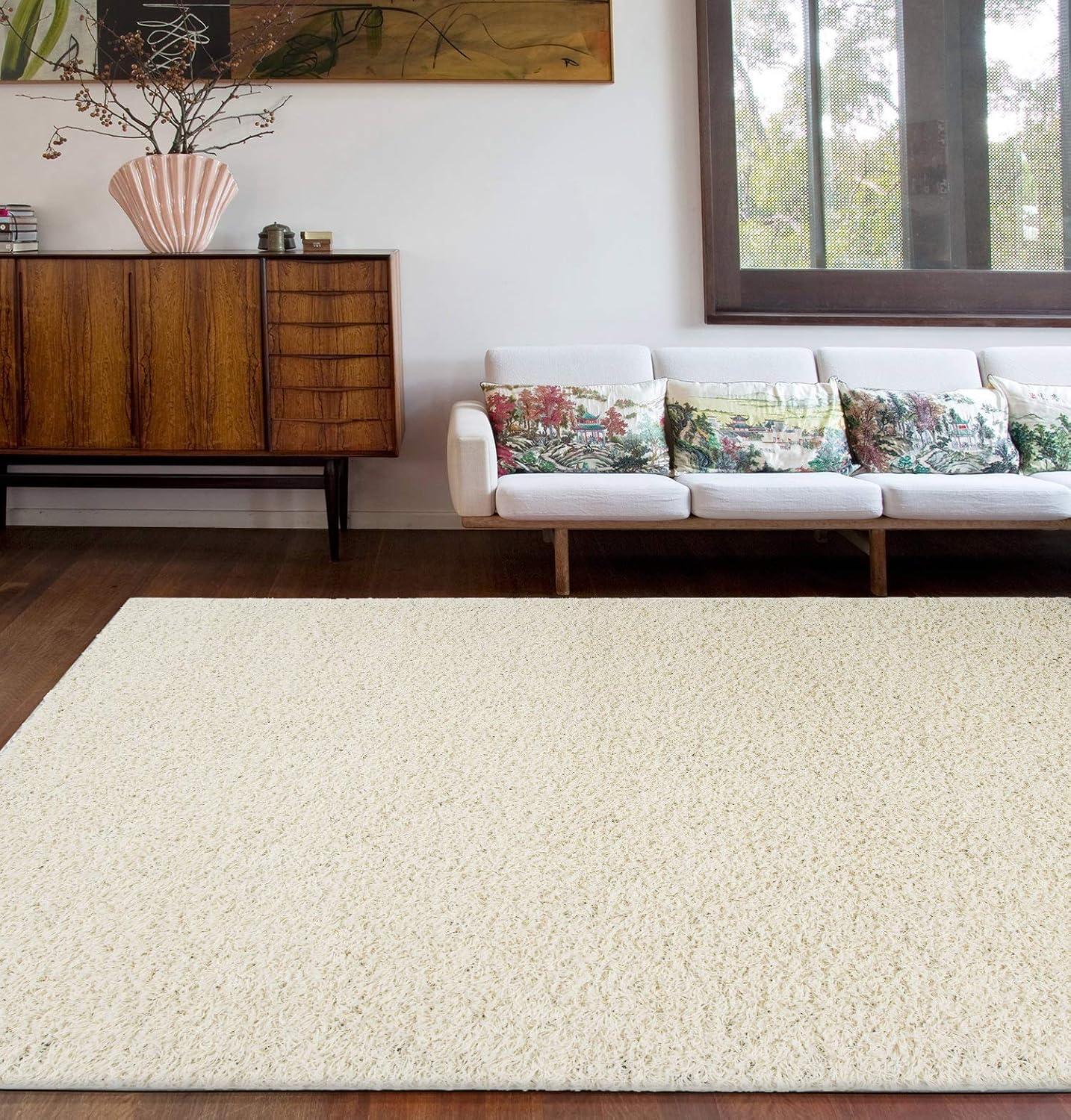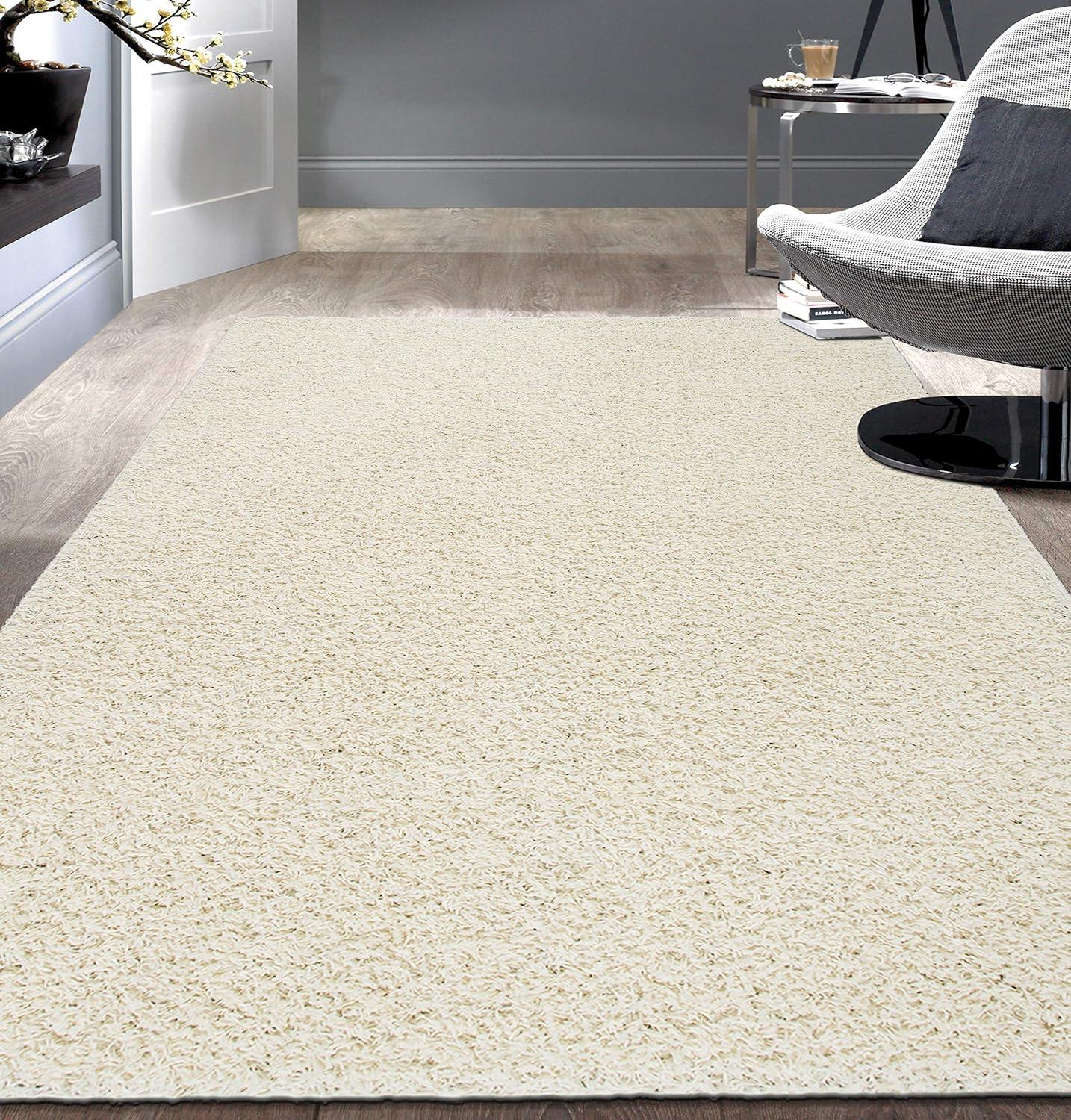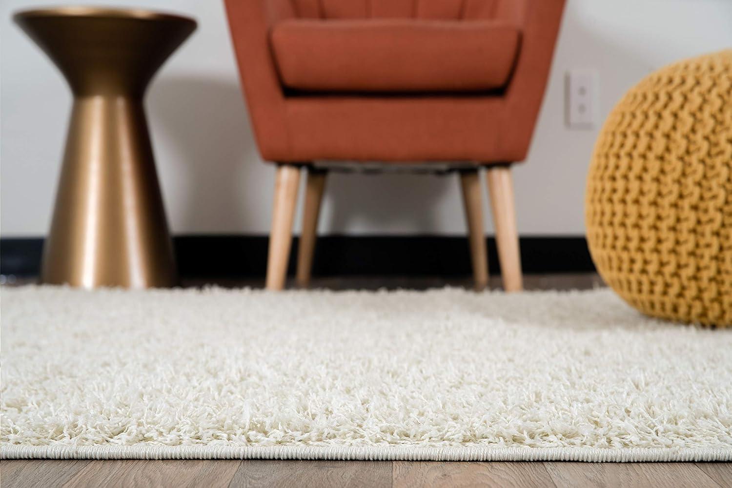 Rugshop Solid Cozy Plush Shag Area Rug 5′ x 7′ Ivory