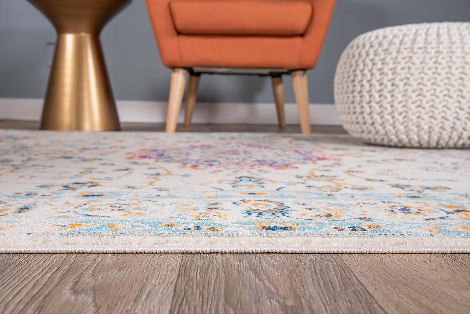 This beautiful rug is unique, stylish and ready to accent your decor with authentic elegance. This rug features bold colors and distressed traditional design. The power loomed construction adds durability to this rug, ensuring it will be a favorite for a long time. Tip: We recommend the use of a non-skid pad to keep the rug in place on smooth surfaces. All rug sizes are approximate. Please note: due to the difference of monitor colors, some rug colors may vary slightly. We try to represent all rug colors accurately.