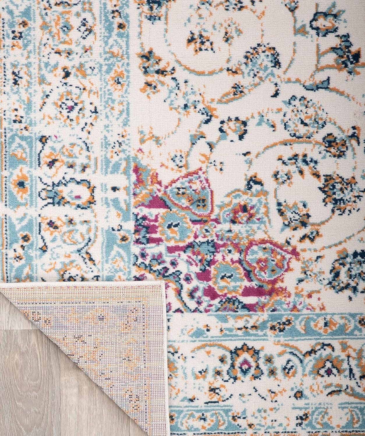 This beautiful rug is unique, stylish and ready TO accent your decor with authentic elegance. This rug features bold colors and distressed traditional design. The power loomed construction adds durability to this rug, ensuring it will be a favorite for a long time. Tip: We recommend the use of a non-skid pad to keep the rug in place on smooth surfaces. All rug sizes are approximate. Please note: due to the difference of monitor colors, some rug colors may vary slightly. We try to represent all rug colors accurately.