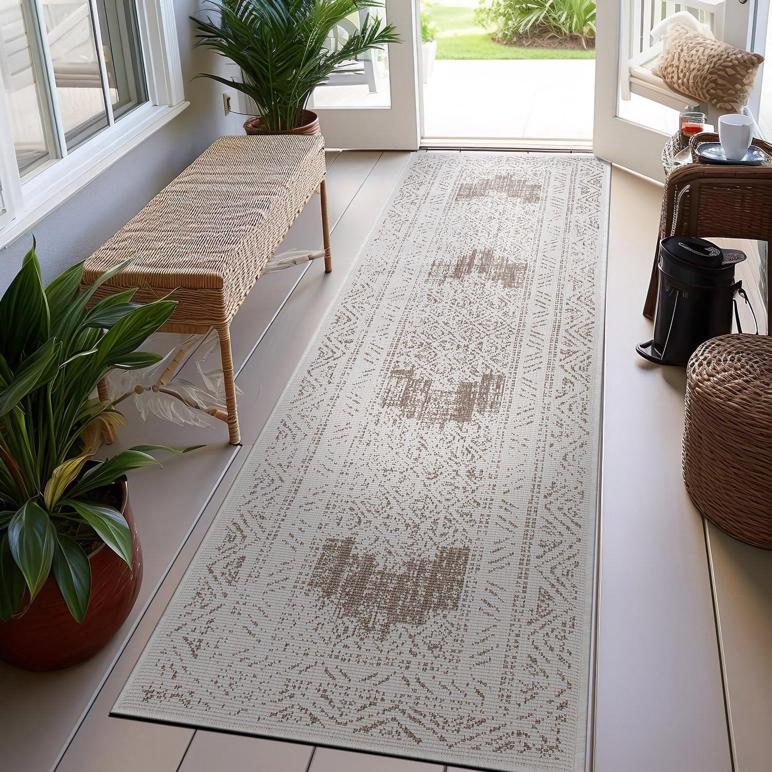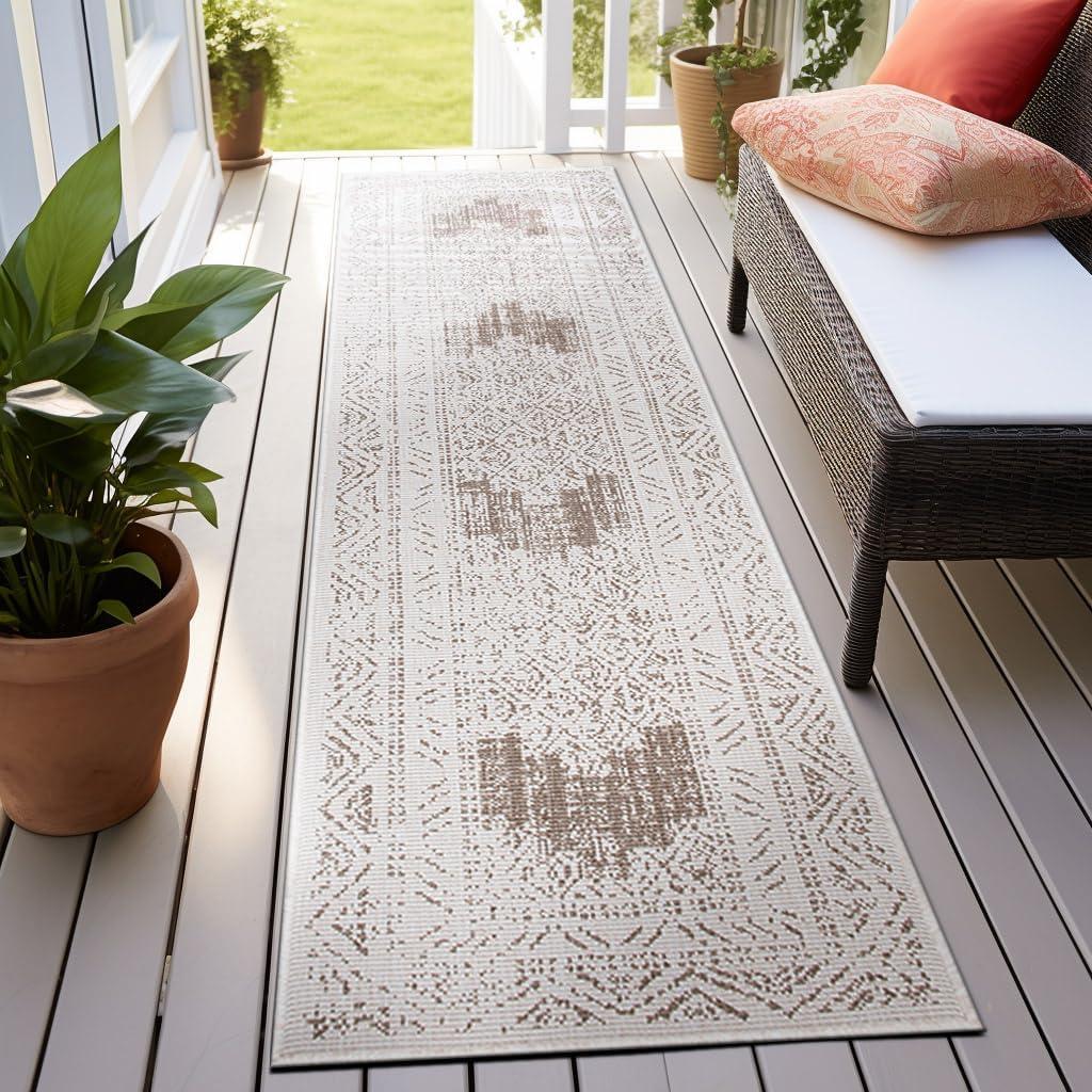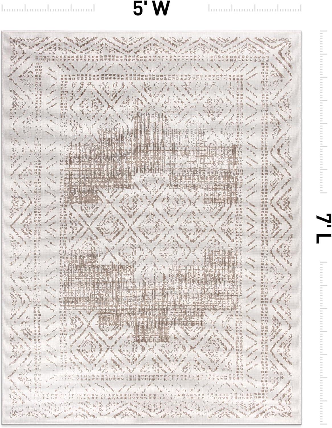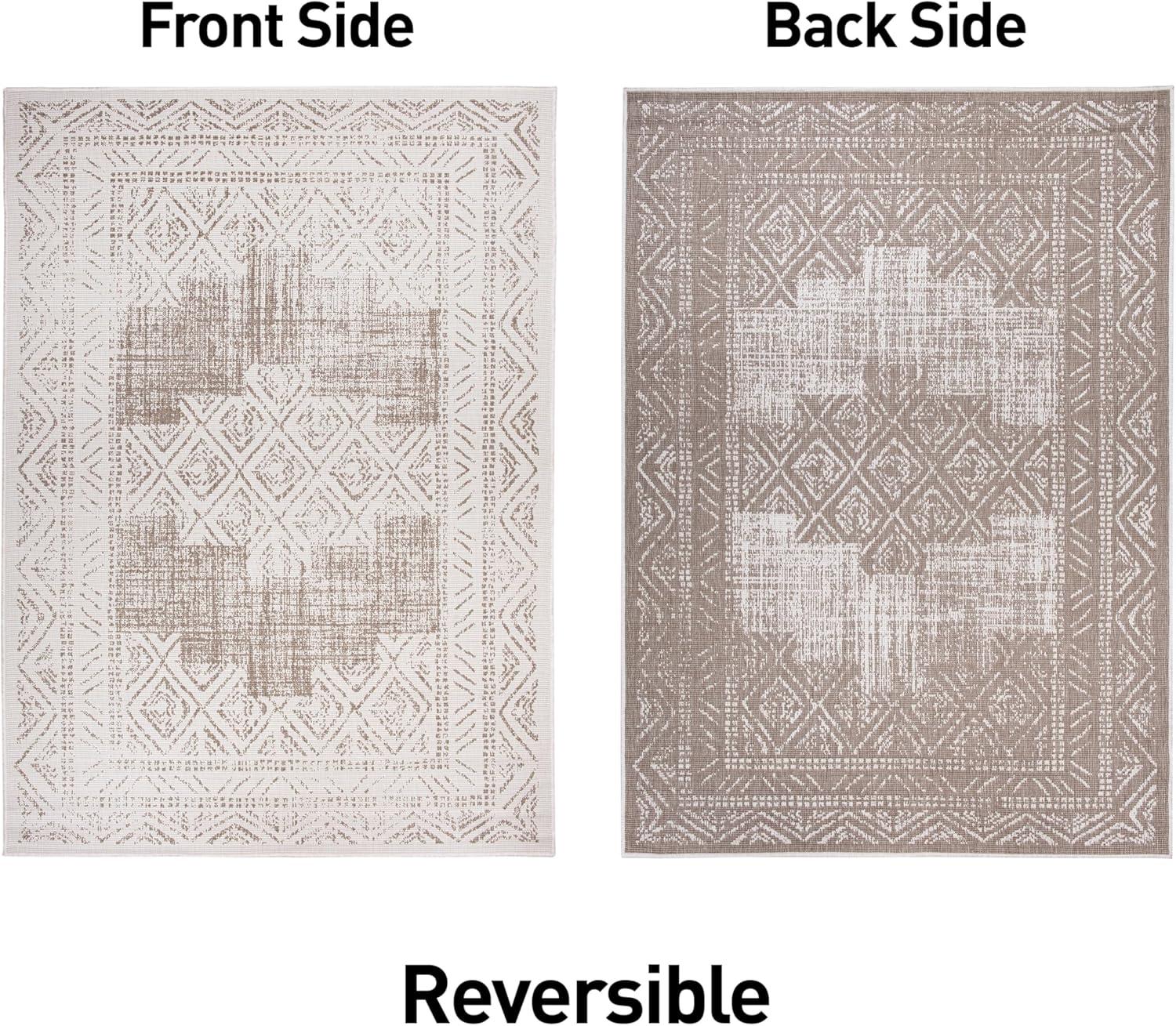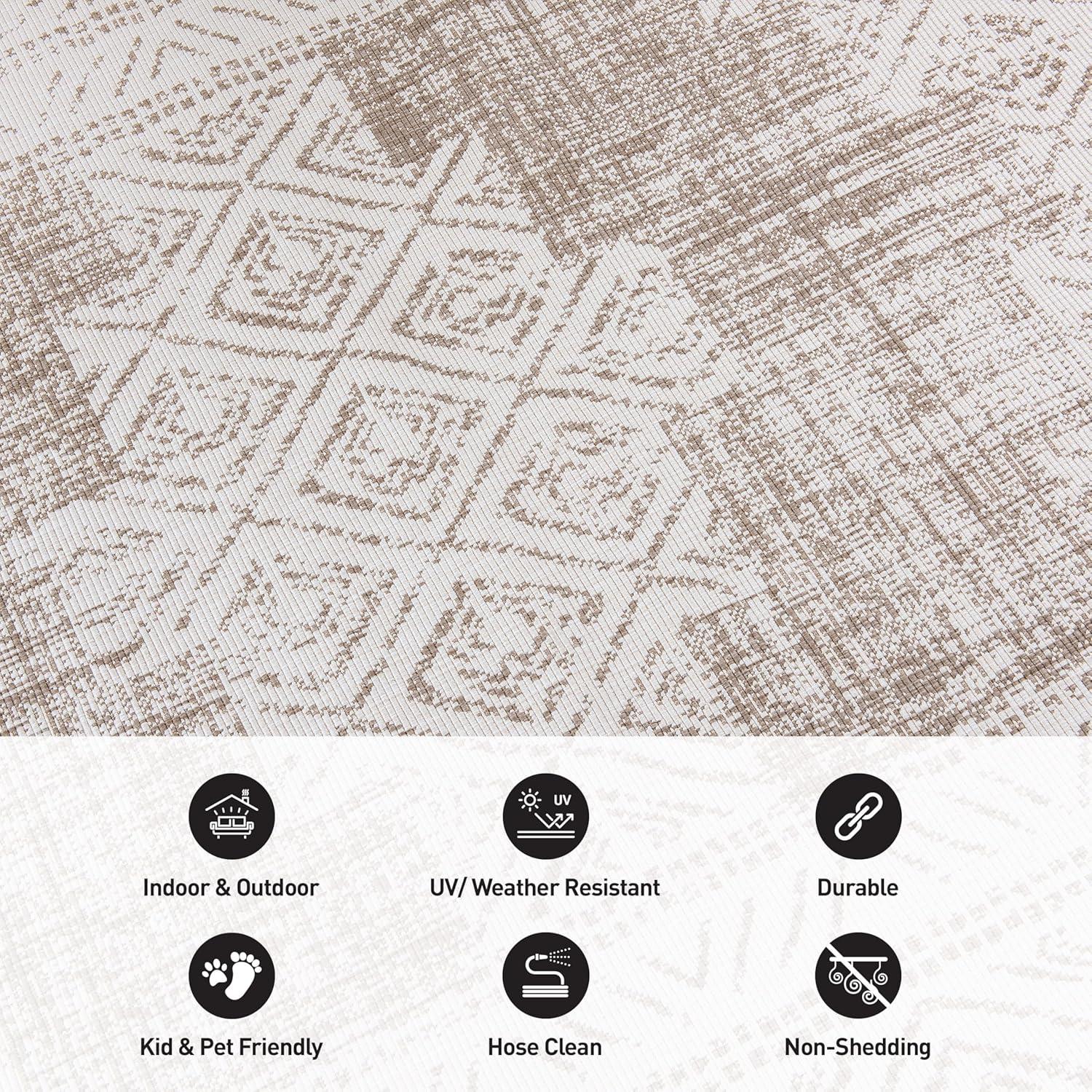 Elevate your home with the enchanting charm of this reversible rug, suitable for both indoor and outdoor use. The distressed traditional design gracefully blends with the sleek medallion pattern, creating an ambiance of timeless elegance. The durable pile height ensures effortless cleaning, making maintenance a breeze. Crafted with 100% polypropylene fibers, this rug embodies convenience, persistence, and irresistible allure. With its wide range of applications, it seamlessly fits into living rooms, kitchens, bedrooms, entryways, offices, dorms, dining rooms, patios, and outdoor areas, offering a versatile solution for all your indoor and outdoor needs.
