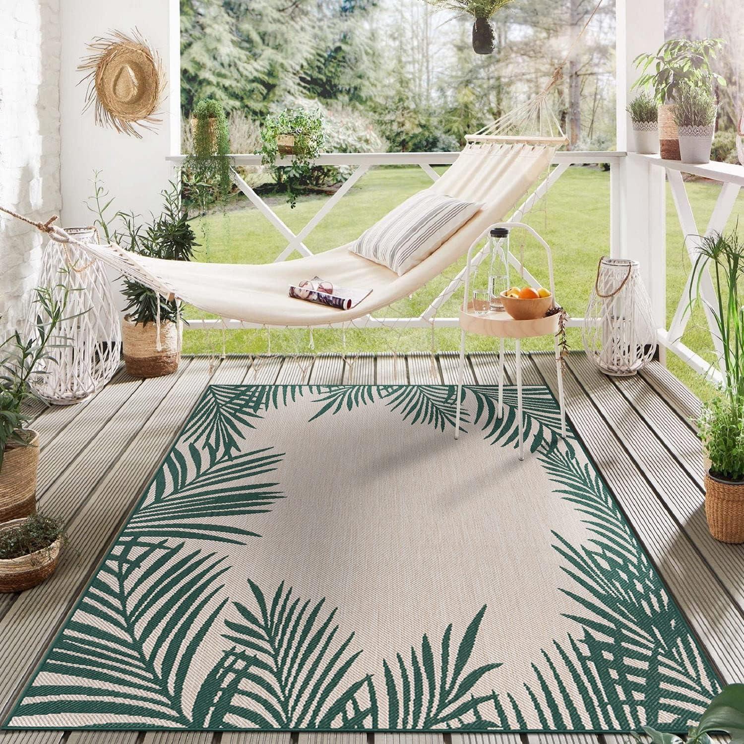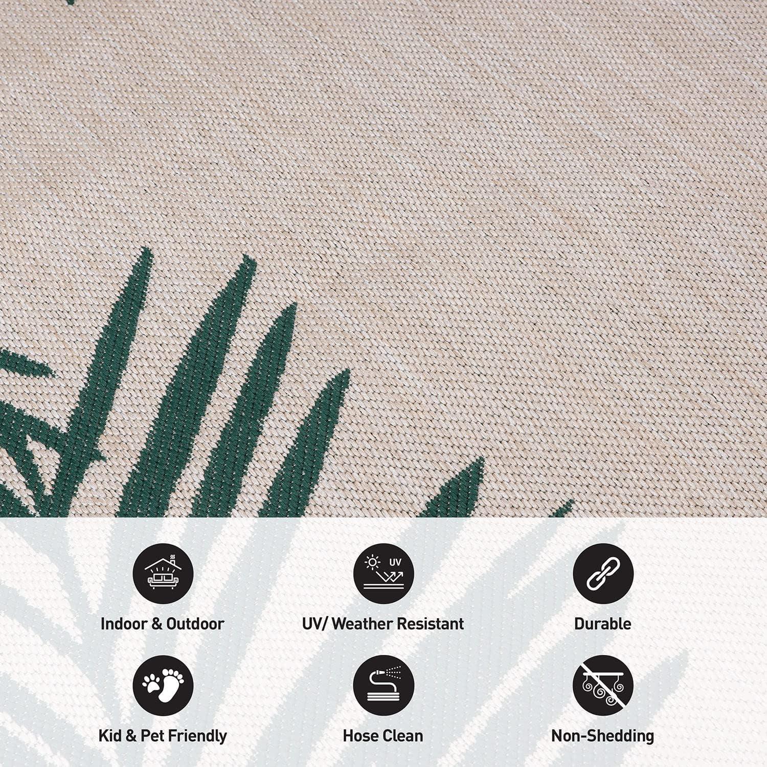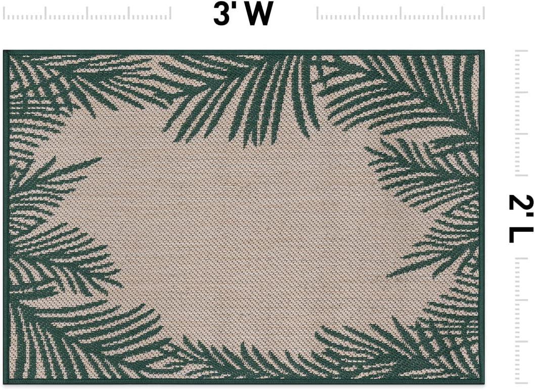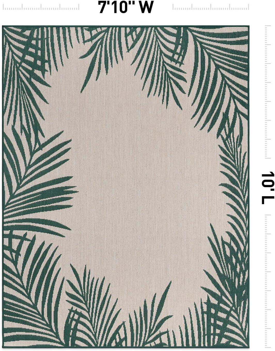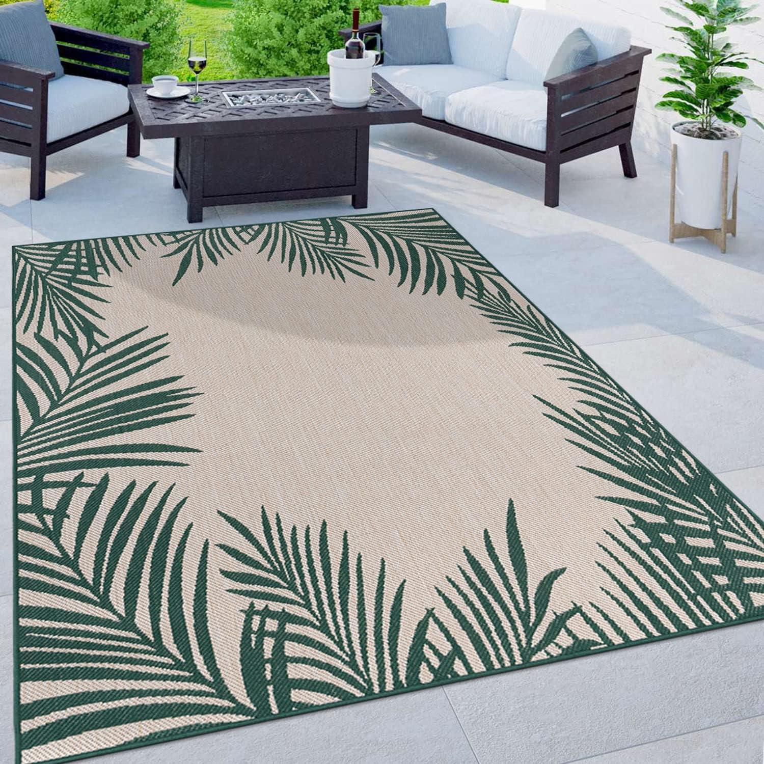 Rugshop Tropical Floral Palm Leaves Textured Flat Weave Easy Cleaning Outdoor Rugs for Deck,Patio,Backyard Indoor/Outdoor Area Rug 5′ x 7′ Green(Green)