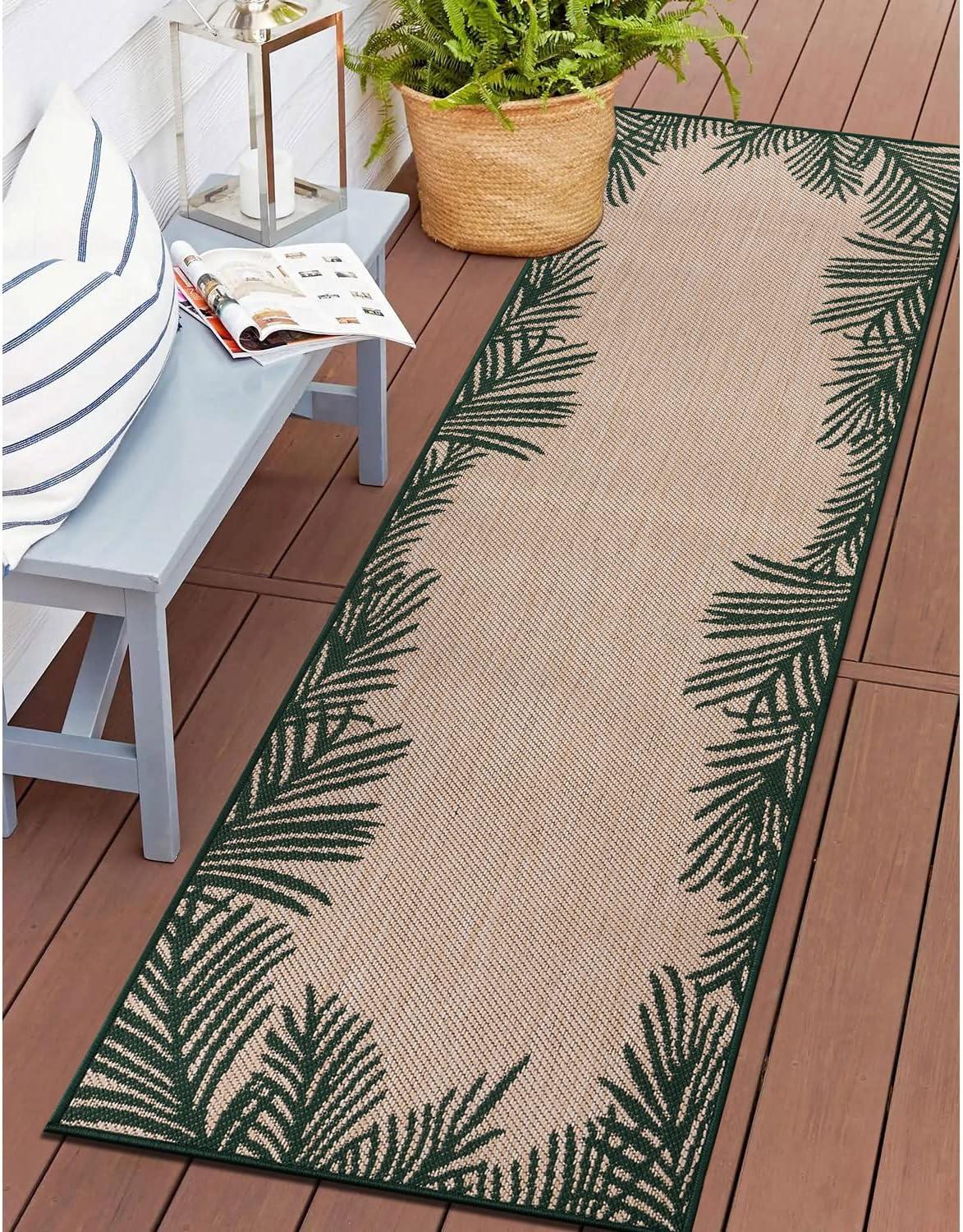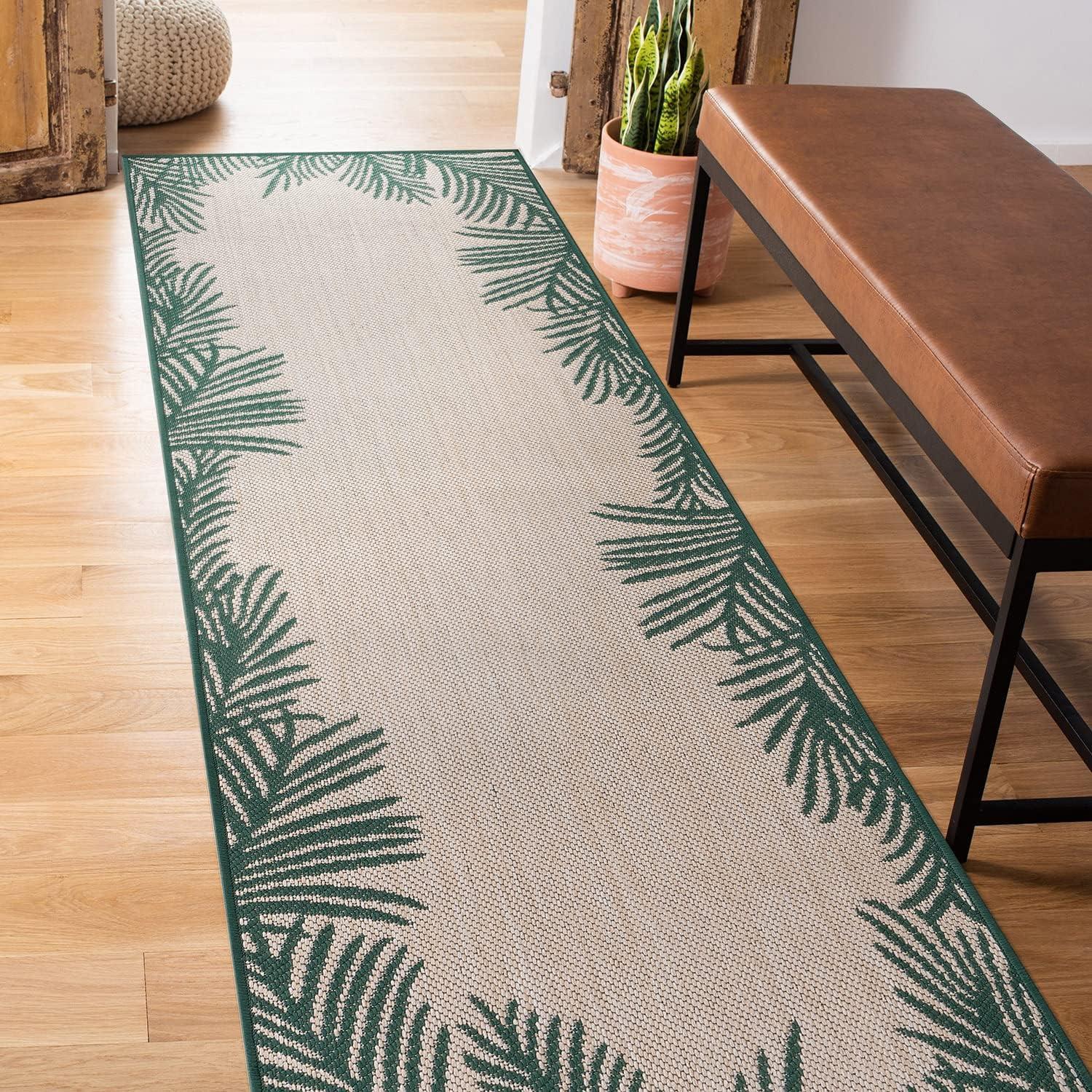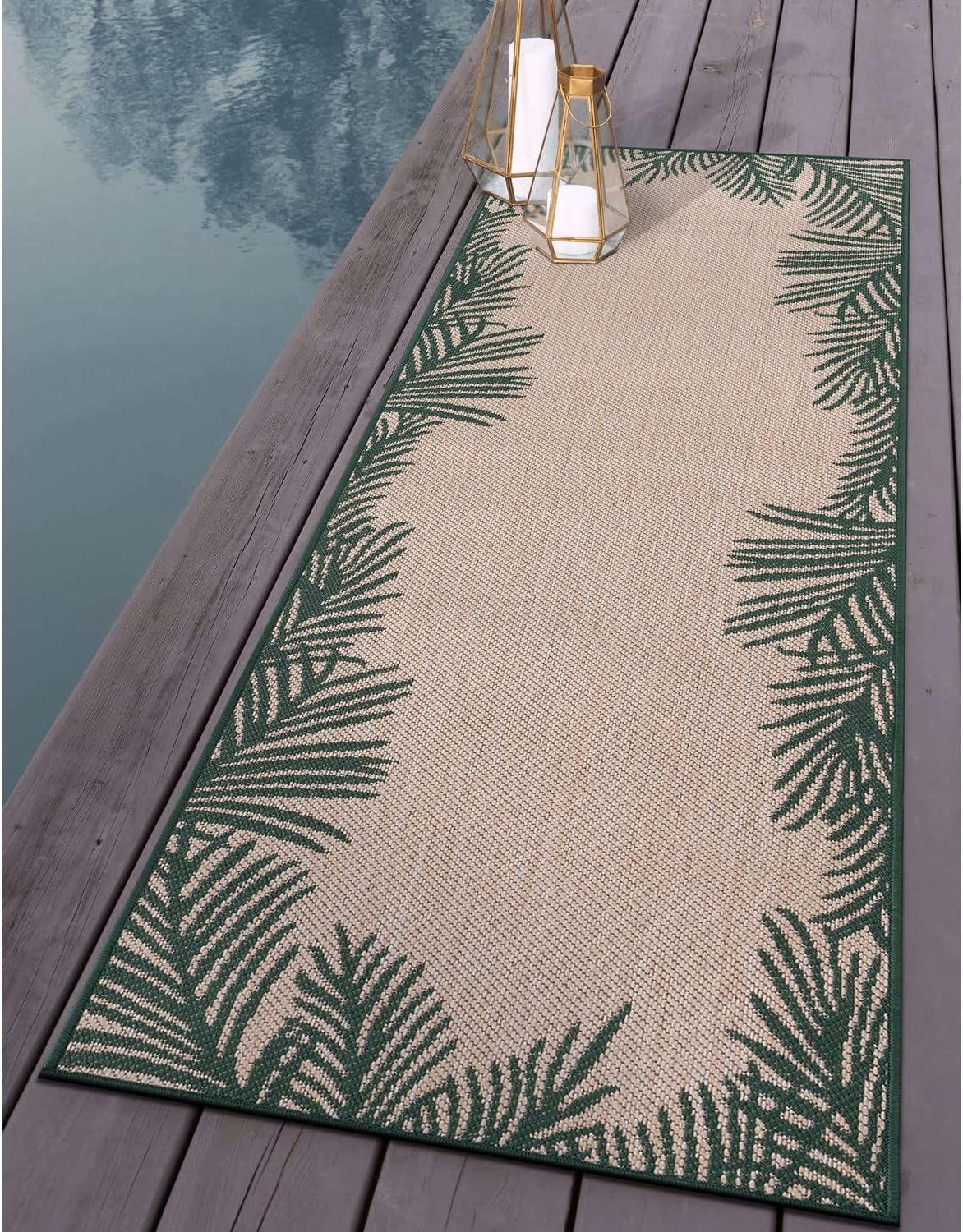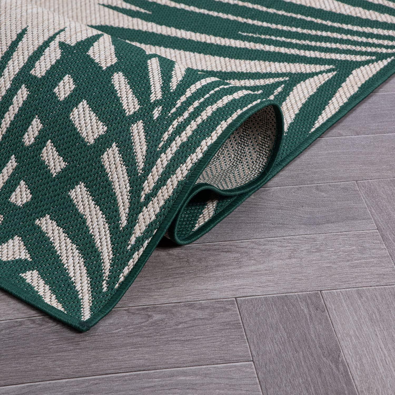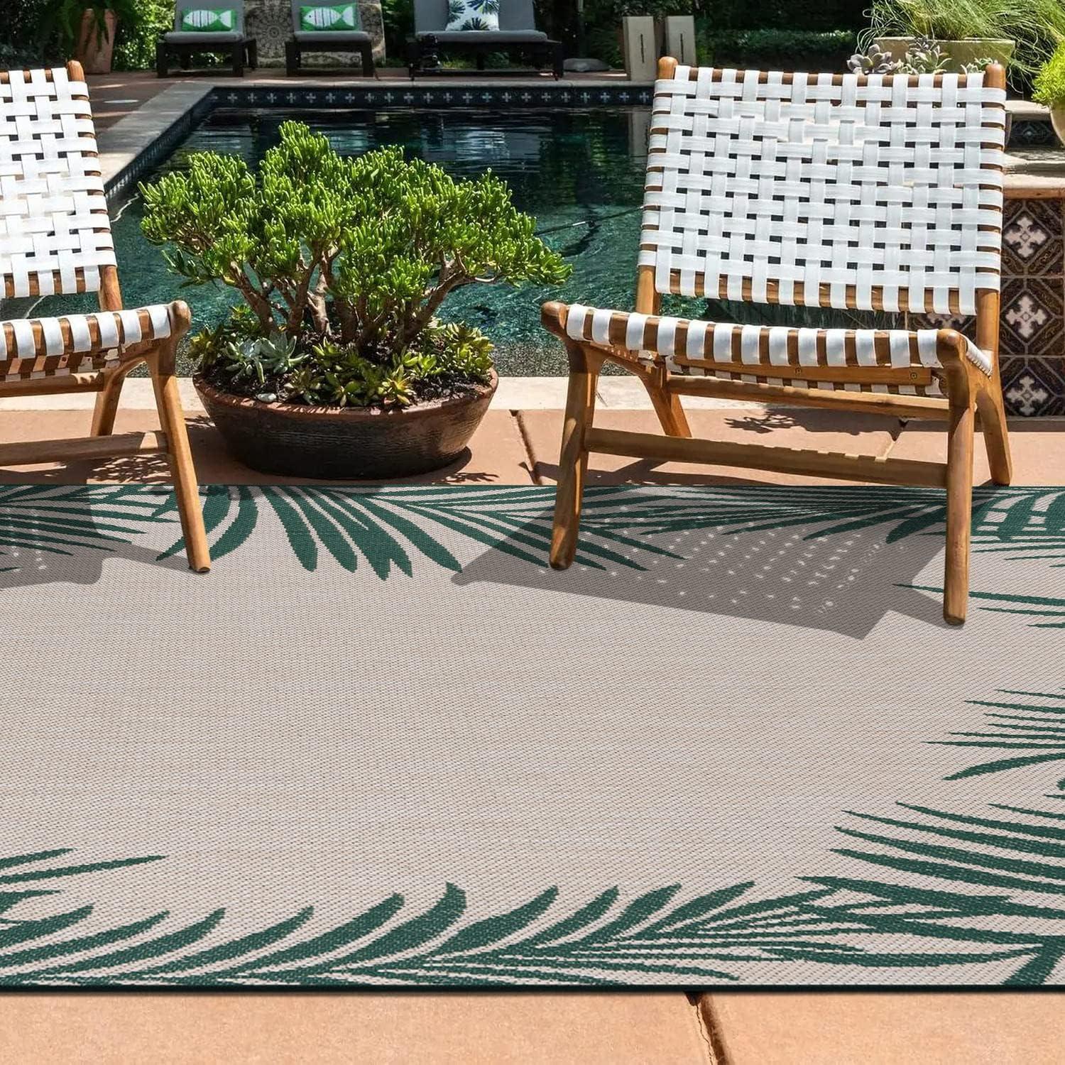 Rugshop Tropical Floral Palm Leaves Textured Flat Weave Easy Cleaning Outdoor Rugs for Deck,Patio,Backyard Indoor/Outdoor Area Rug 5′ x 7′ Green(Green)