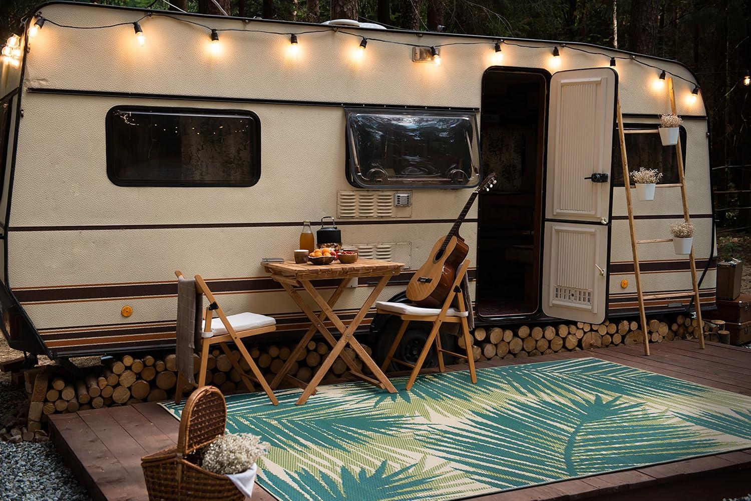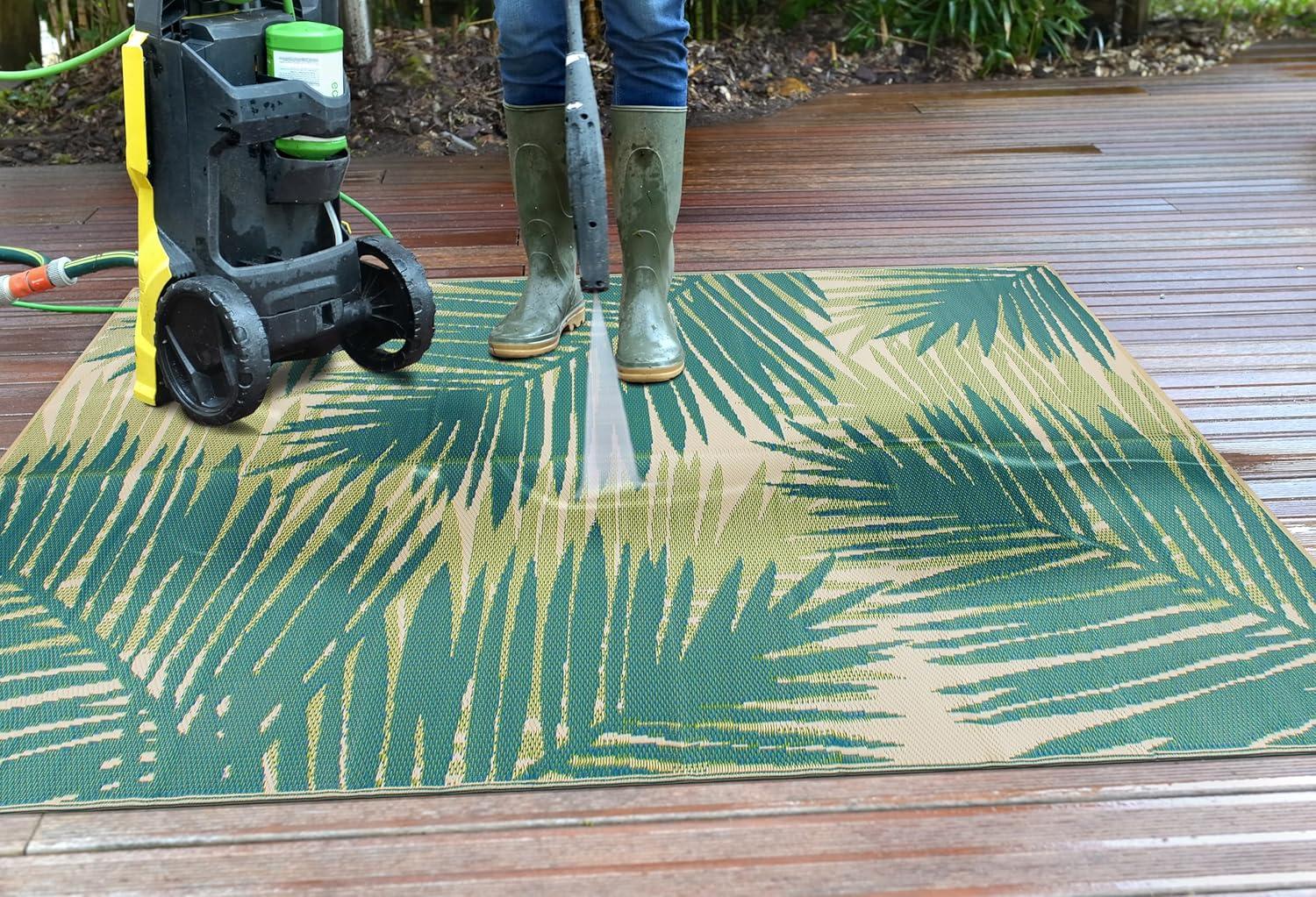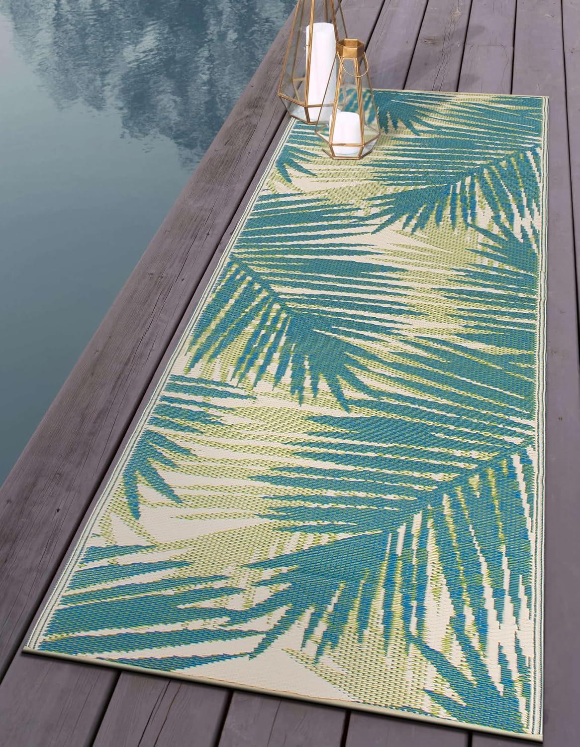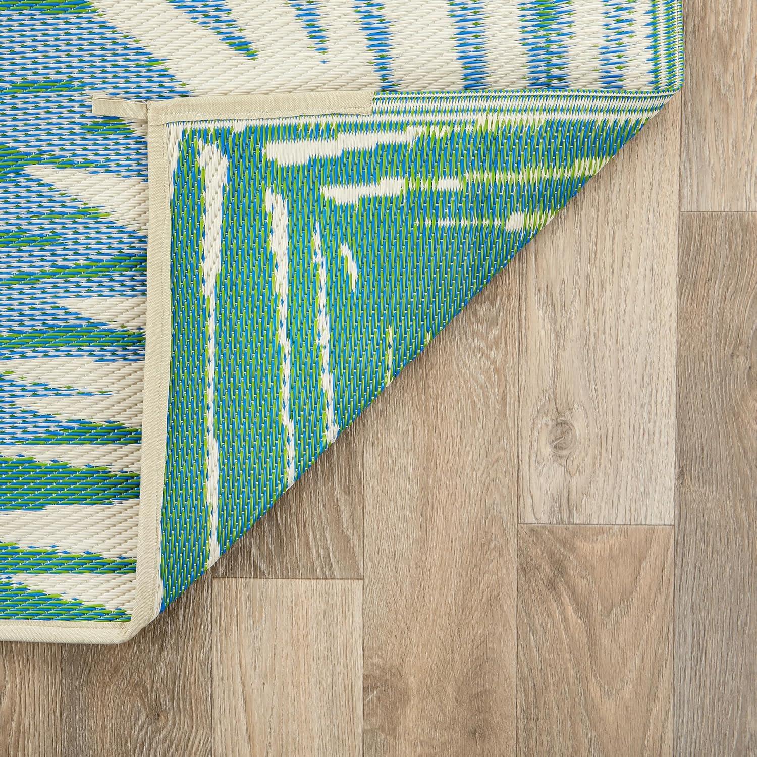 Rugshop Tropical Floral Reversible Crease-Free Waterproof Premium Recycled Plastic Outdoor Rugs for Patio,Backyard,RV,Deck,Picnic,Trailer,Beach,Camping Blue 5′ x 7′(Green)