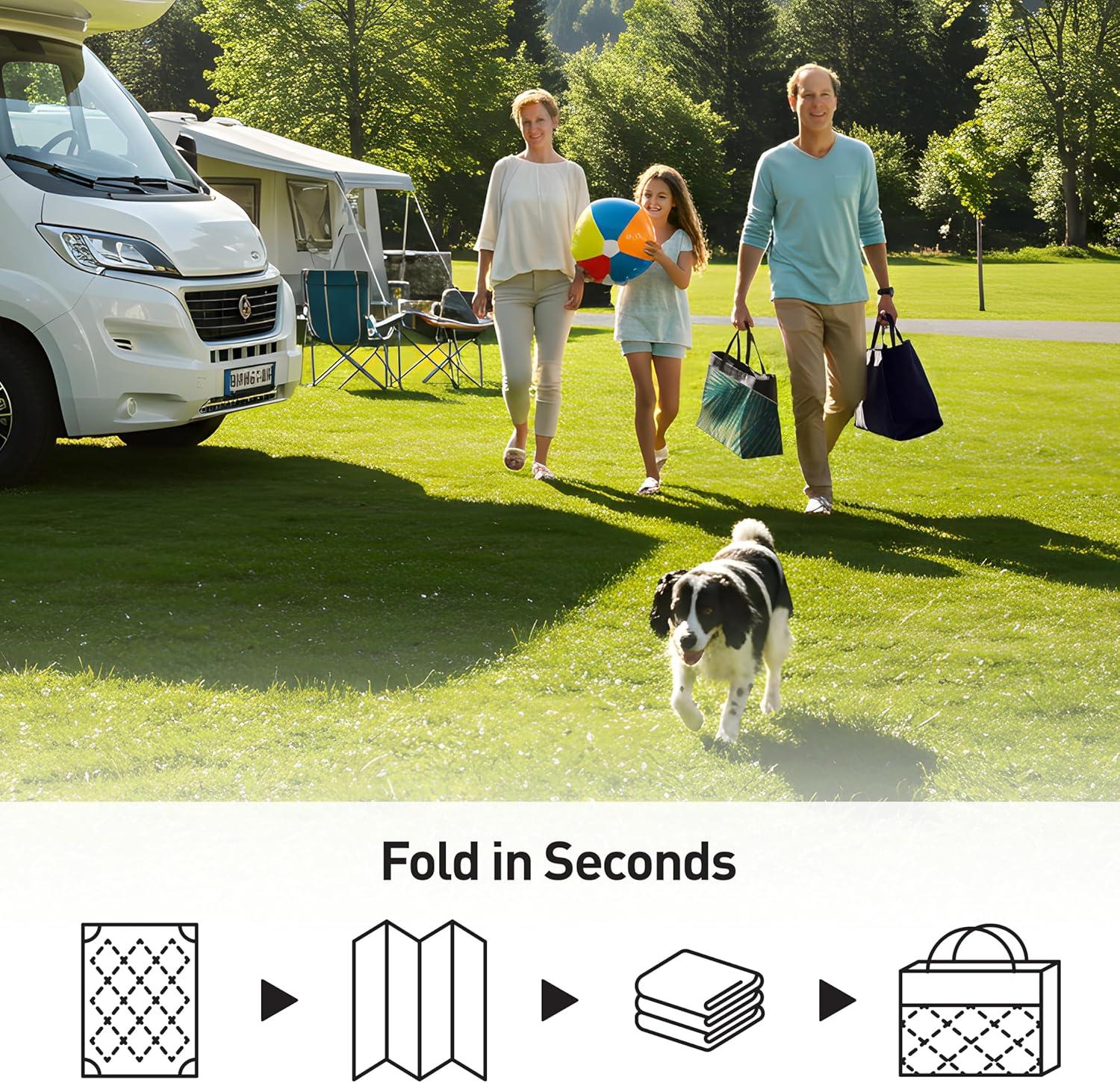 Reversible Rugs: Indoor/Outdoor plastic straw rugs designed with resilience against everyday wear-and-tear, this rug is kid and pet friendly and perfect for high traffic areas of your home such as patio,backyard,RV,deck,picnic,trailer,camping,pool area,backyard,grass,sunroom, pet mats, kid’s mats, traveling, picnics, casual hikes, beach trips and more.