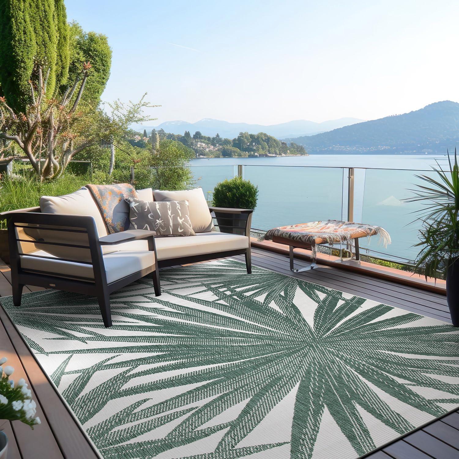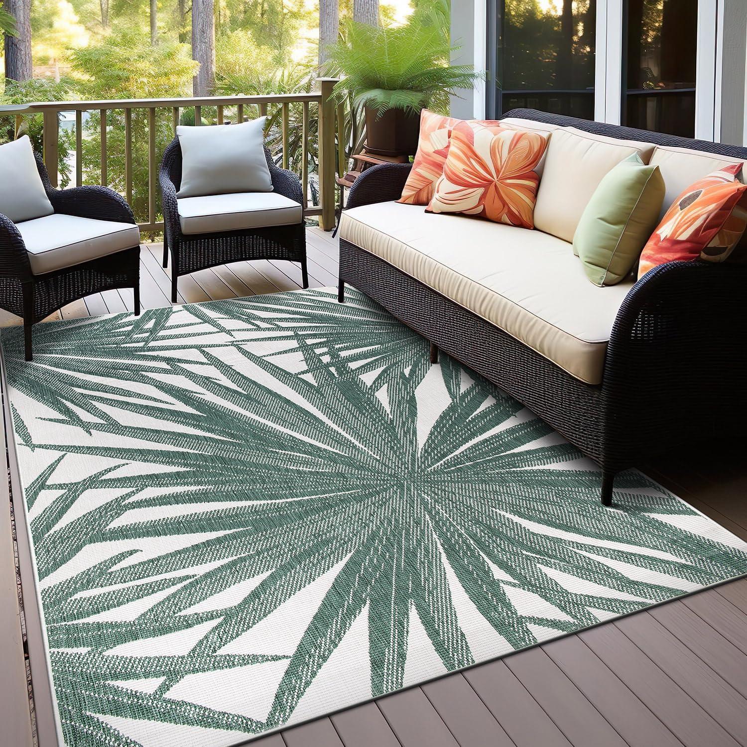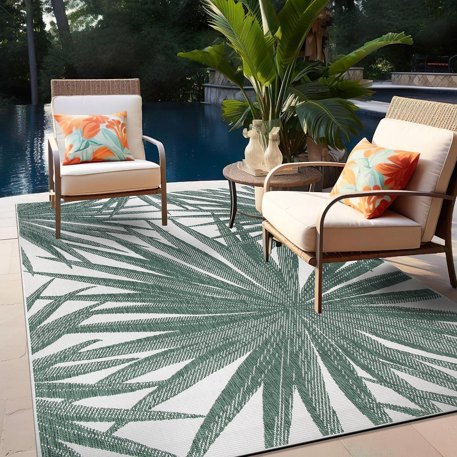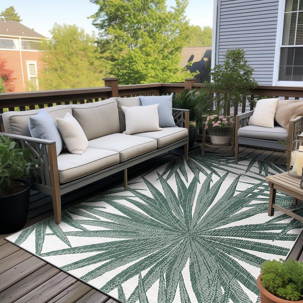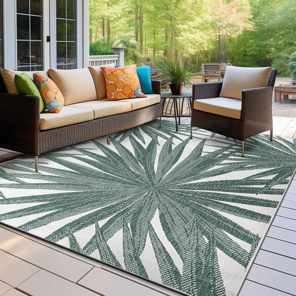 Rugshop Tropical Leaves Nature Inspired Indoor/Outdoor Area Rug 5′ x 7′ Green(Green)