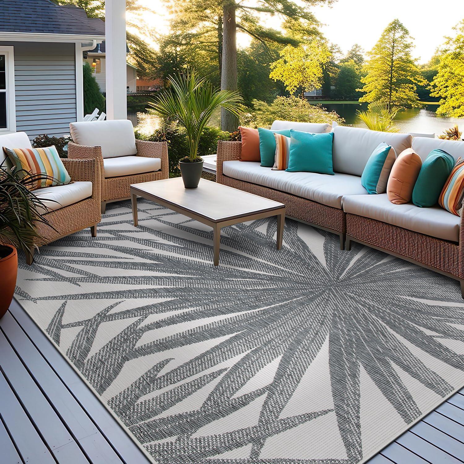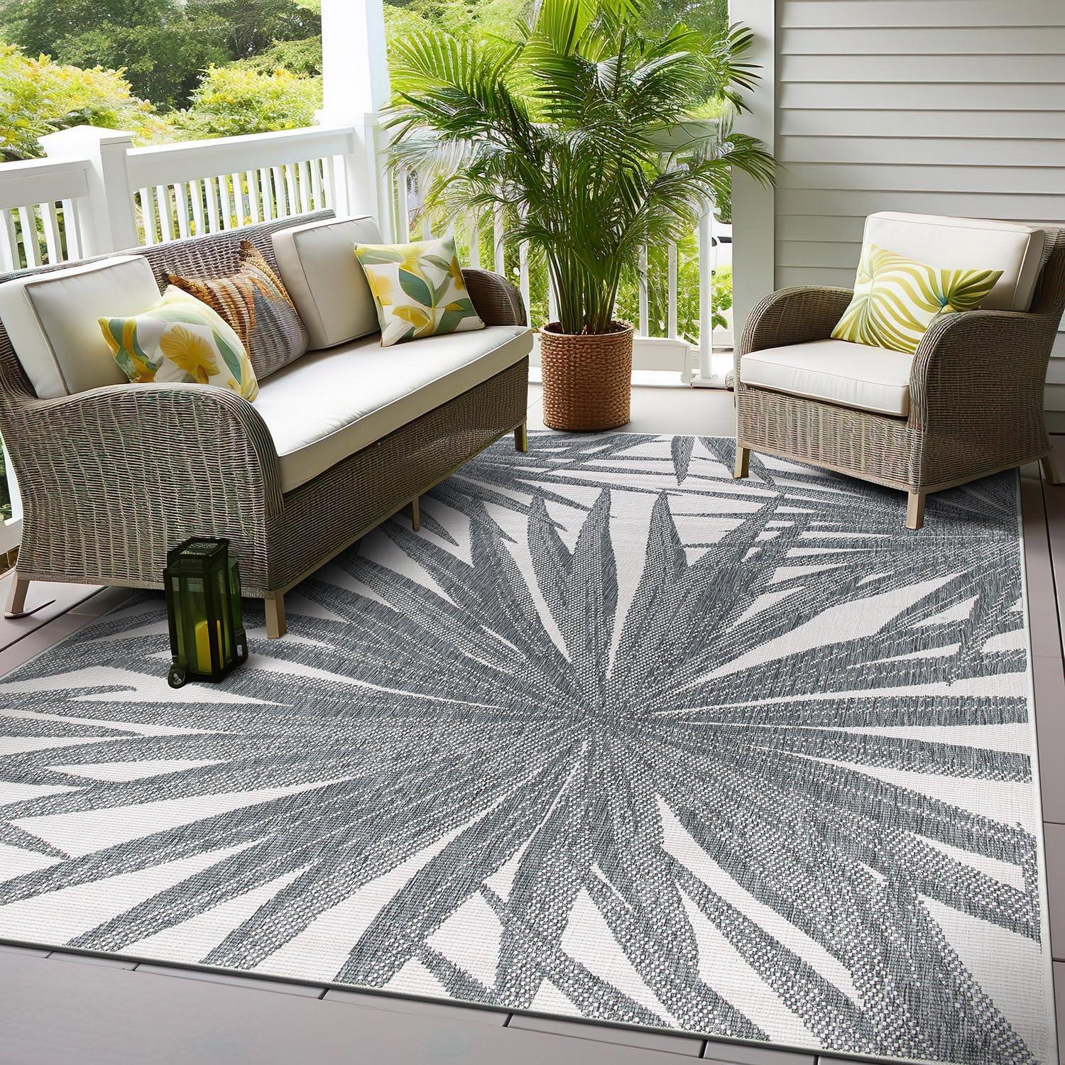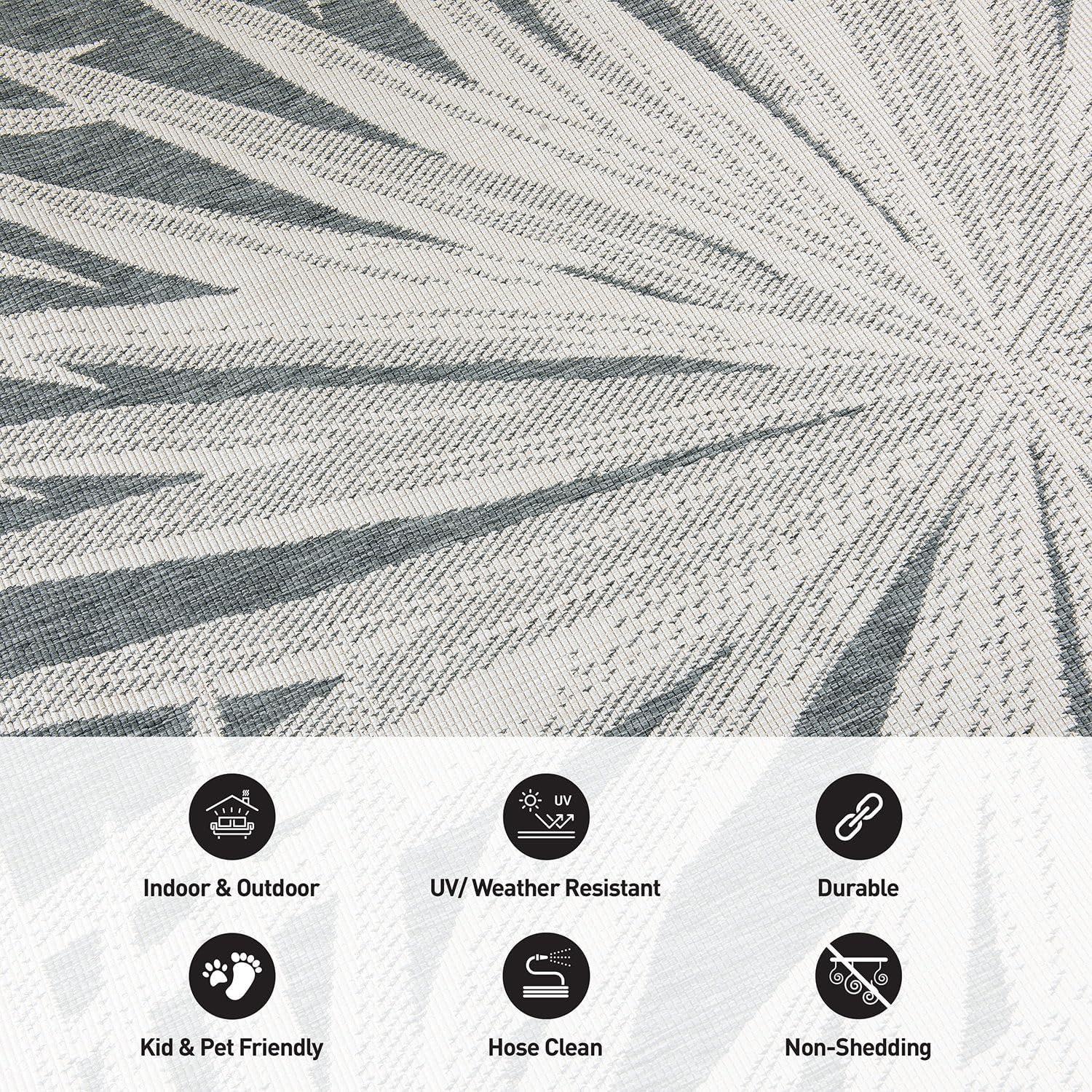 Rugshop Tropical Leaves Nature Inspired Indoor/Outdoor Area Rug 5′ x 7′ Green(Grey)