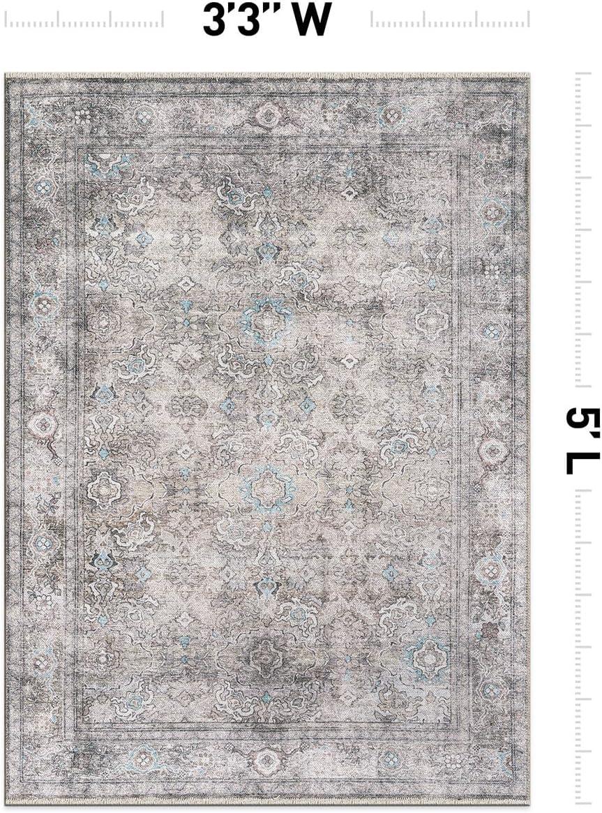 Rugshop Vintage Transitional Boho Distressed Medallion Oriental Machine Washable Area Rug – Living Room, Bedroom, Dining Room, Entryway, Office – 5′ x 7′(Olive)